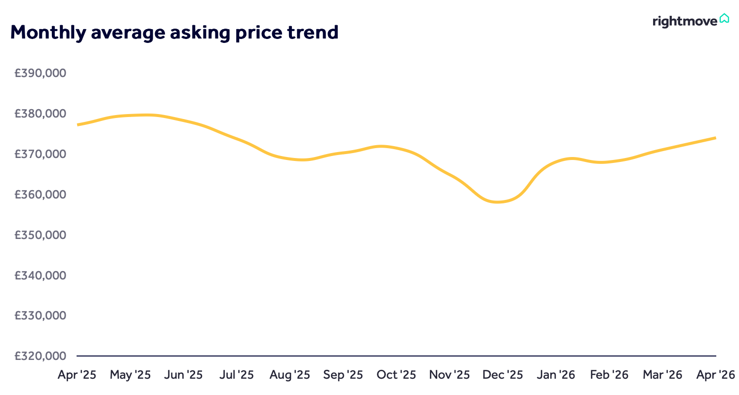 Average asking prices increased by 0.8% (+£2,929) in April, bringing the national average to £373,971.