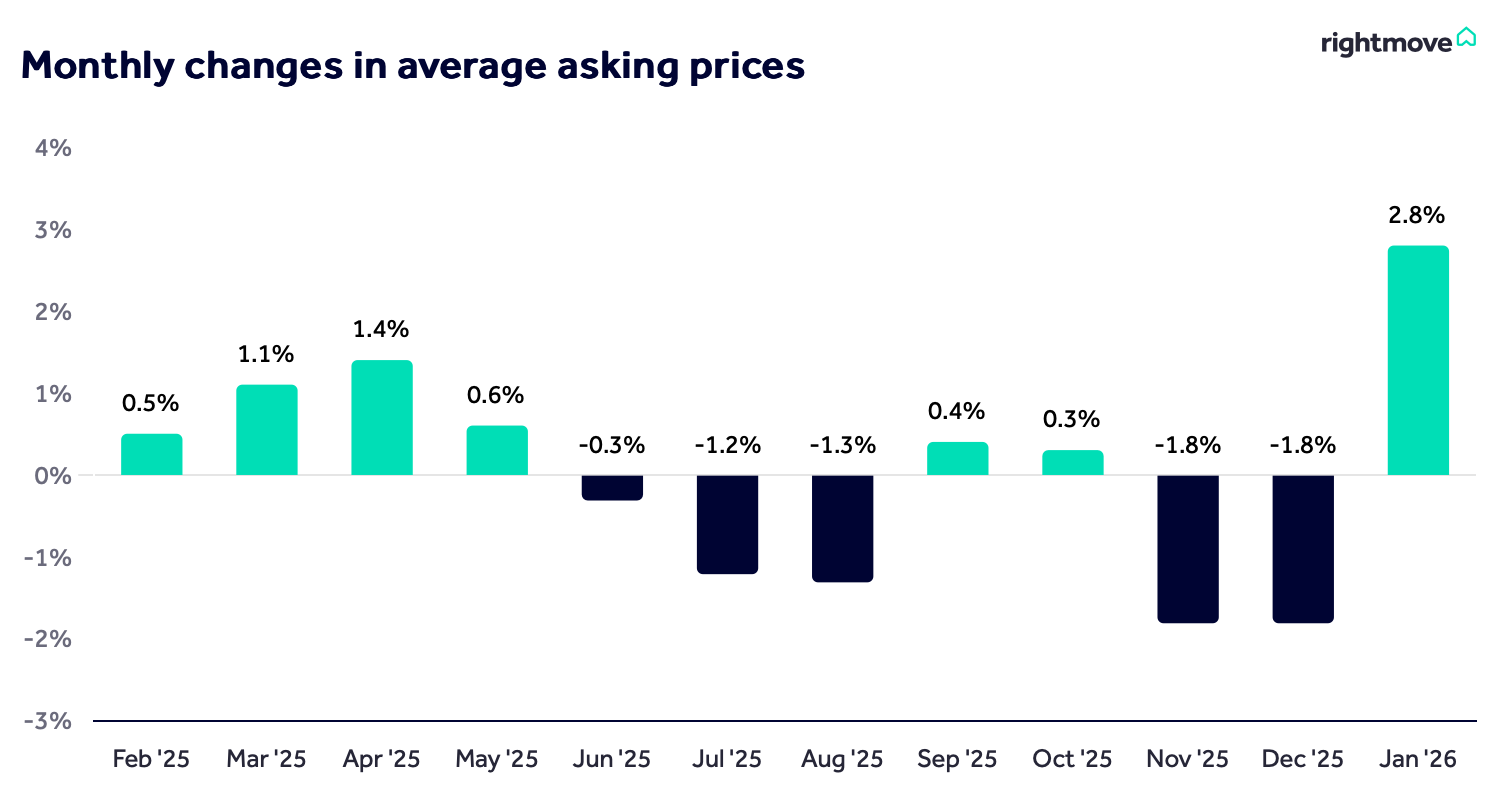 The UK property market has started 2026 on a notably positive footing, with new data showing a sharp rise in asking prices, stronger buyer activity and improving affordability.
