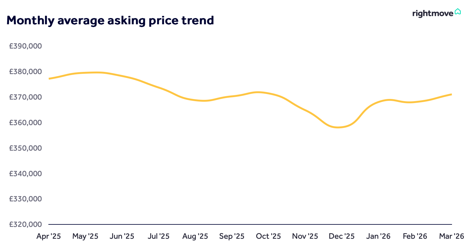 March has delivered what we would normally expect at this time of year: a modest increase in house prices. The average asking price has risen by 0.8% to £371,042, following a flat February.