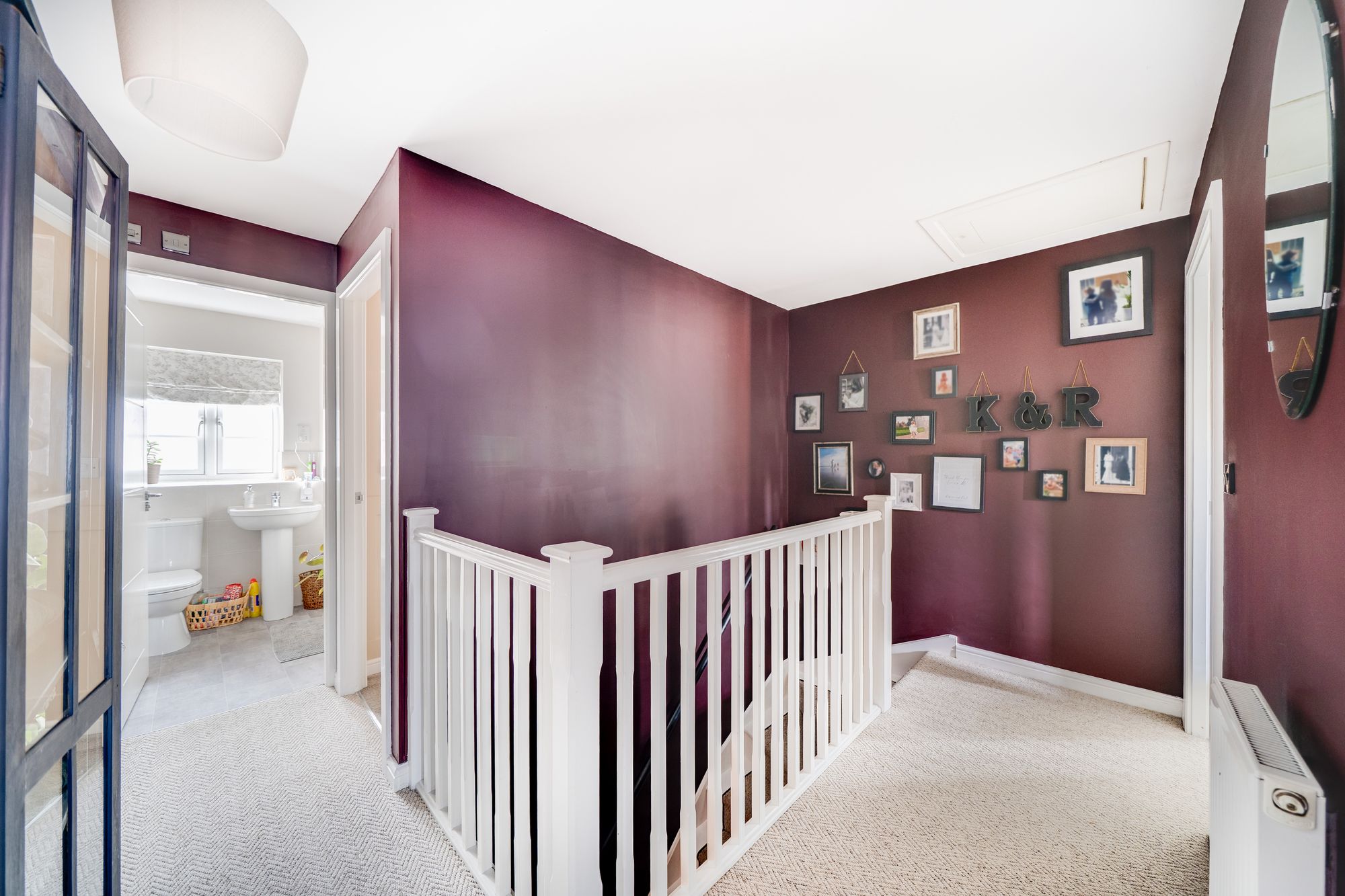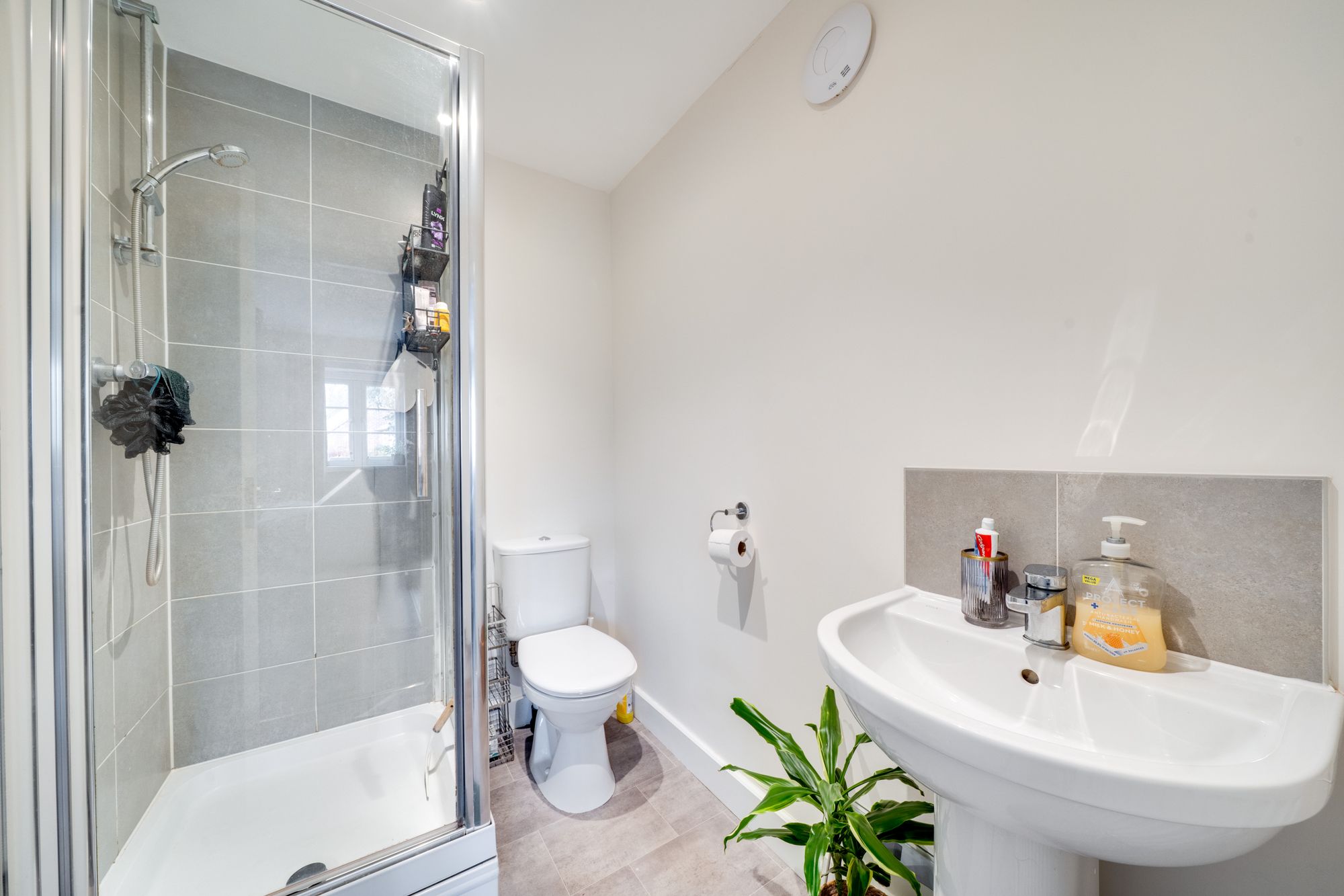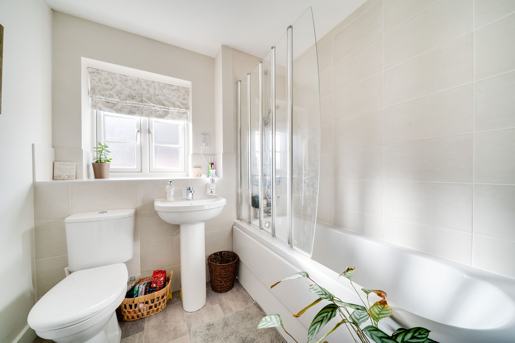 To the first floor, the principal bedroom benefits from its own en-suite shower room, while two further bedrooms are served by a modern family bathroom fitted with a bath and shower over, wash basin and WC.