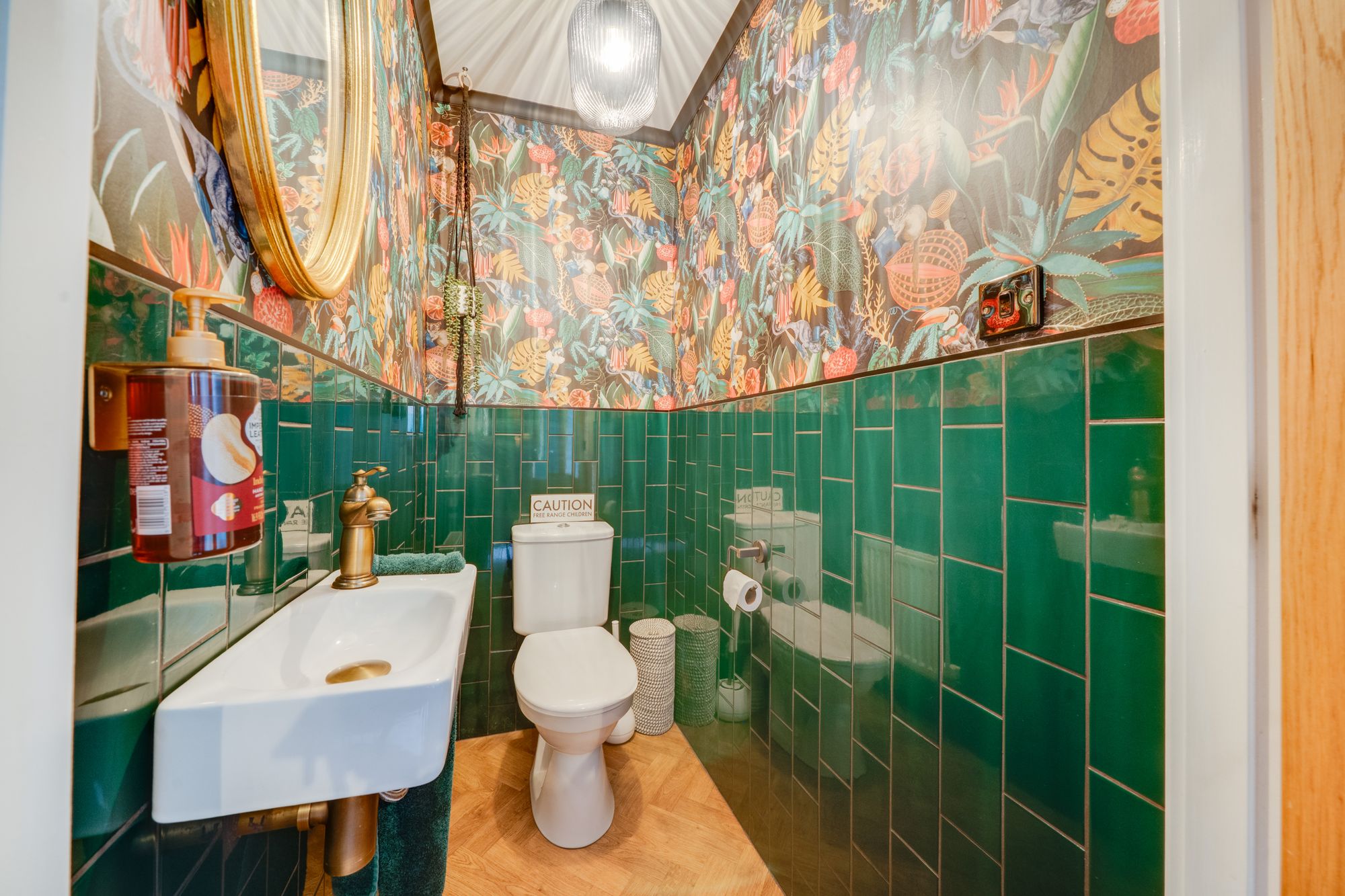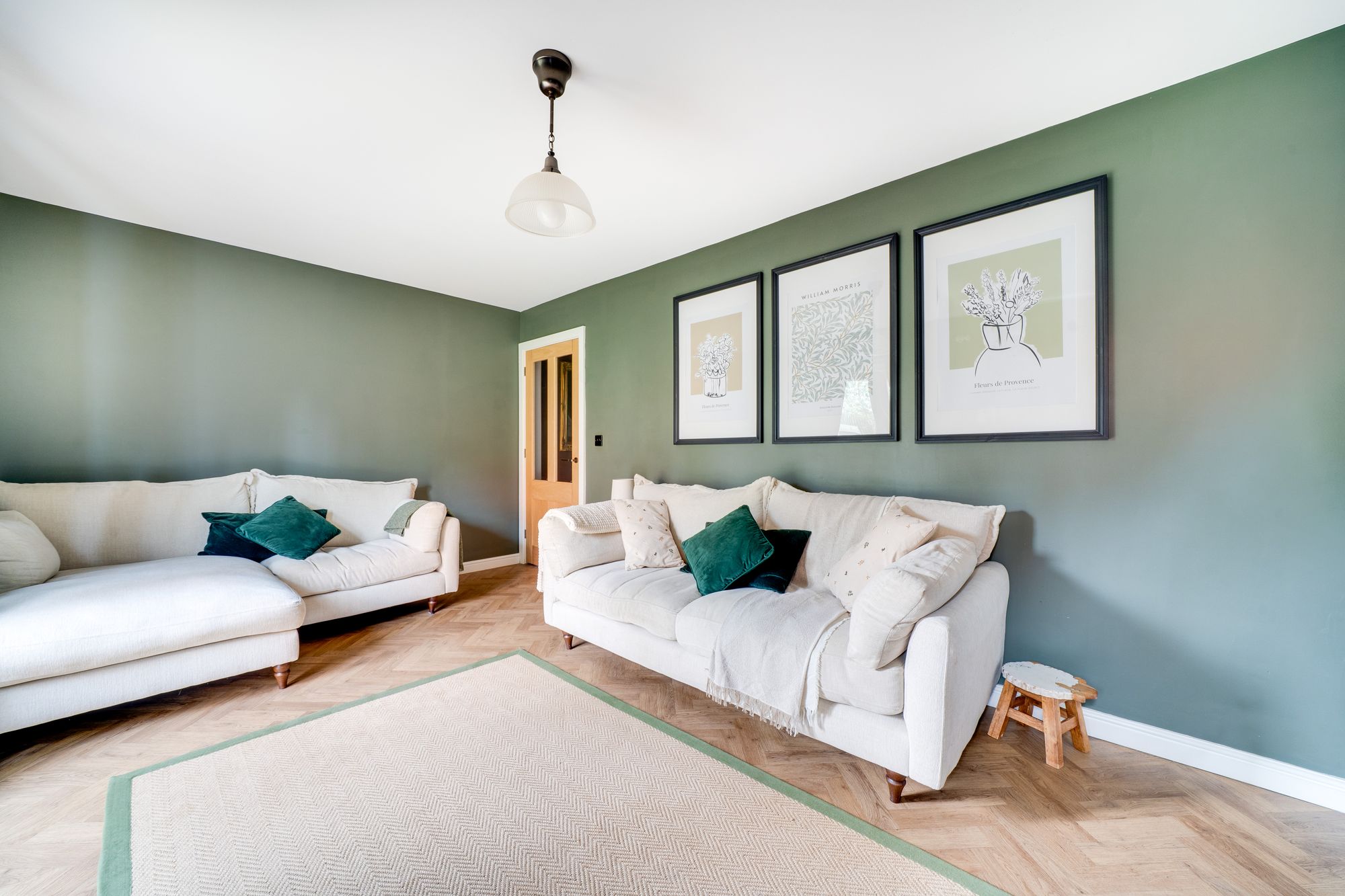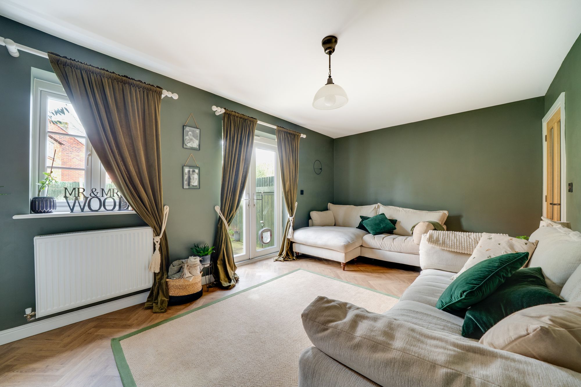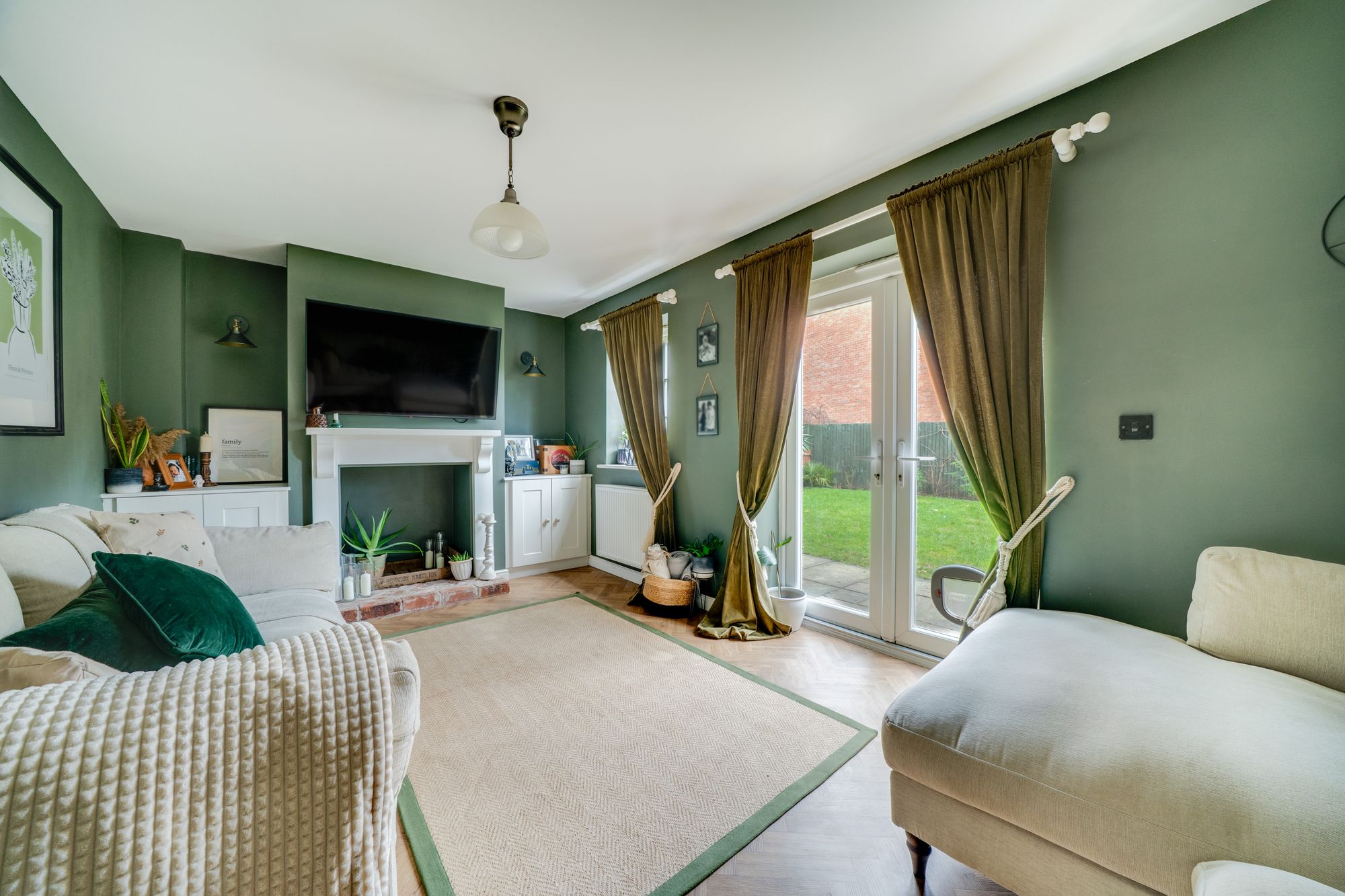The ground floor also features a guest WC and an inviting lounge, complete with an architectural focal point inspired by a traditional hearth, creating a warm and characterful setting. This is an ideal space for both relaxing and entertaining, further enhanced by French doors opening directly onto the rear garden.