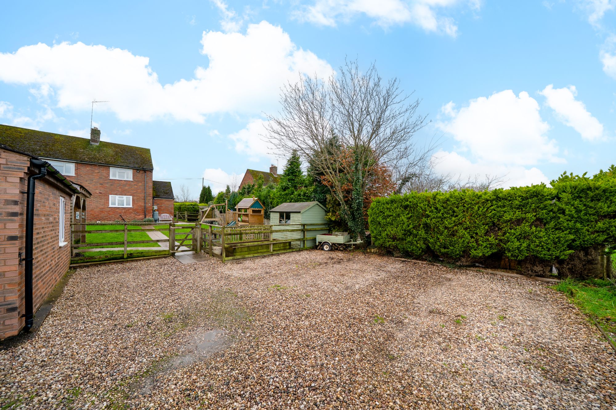 The gravel driveway is extensive, providing parking for several vehicles and leading to a detached garage. Access is gained via a shared approach adjacent to No. 1 Stableford Road, to the rear of neighbouring properties.