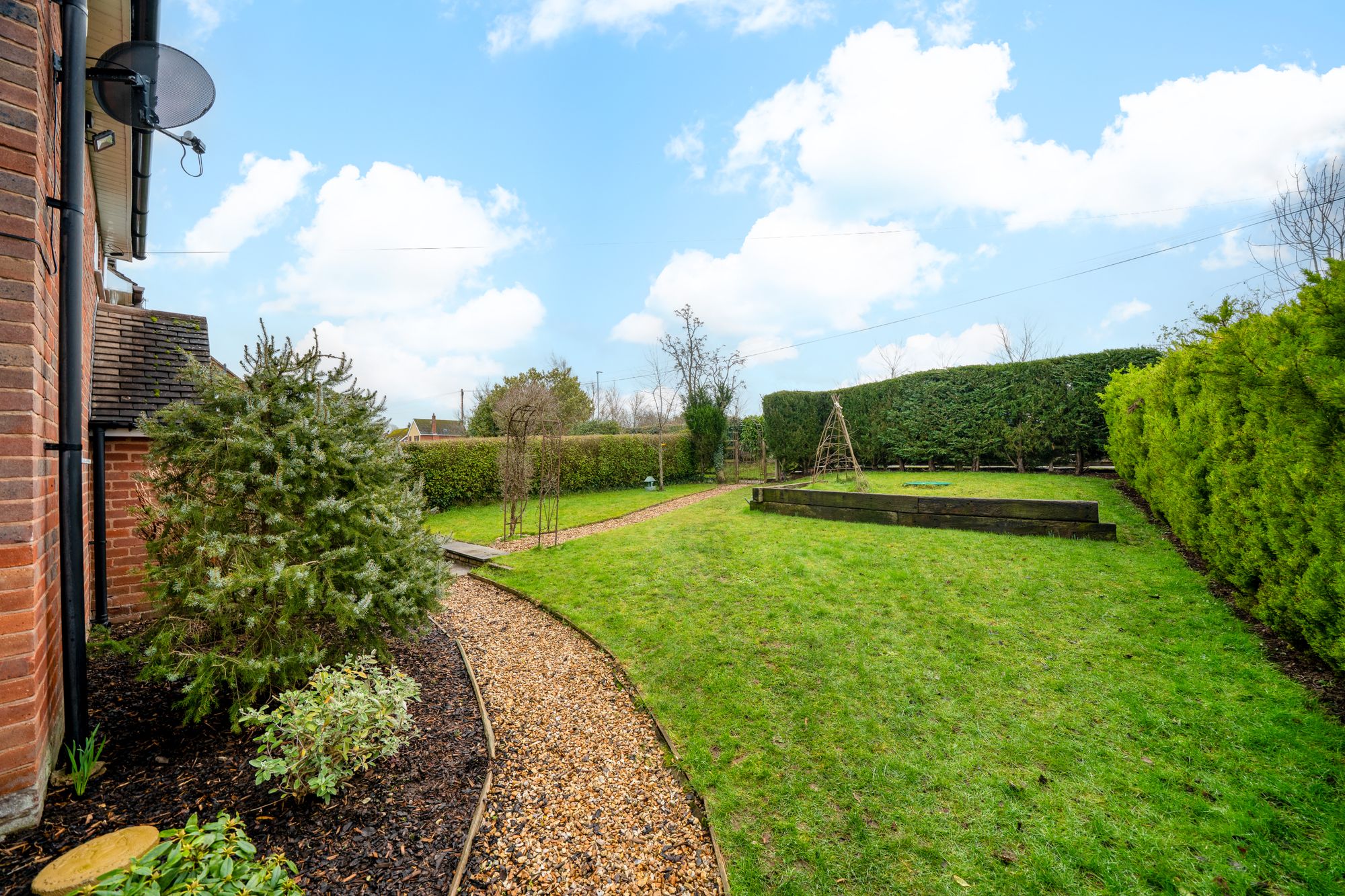To the first floor, the landing enjoys a front-facing window and provides access to all bedrooms and the family bathroom. There are three bedrooms in total, two generous doubles overlooking the rear garden and open fields beyond, and a third bedroom enjoying views over the front garden and village lane. The bathroom is fitted with a modern suite comprising bath with shower over, WC and wash hand basin.