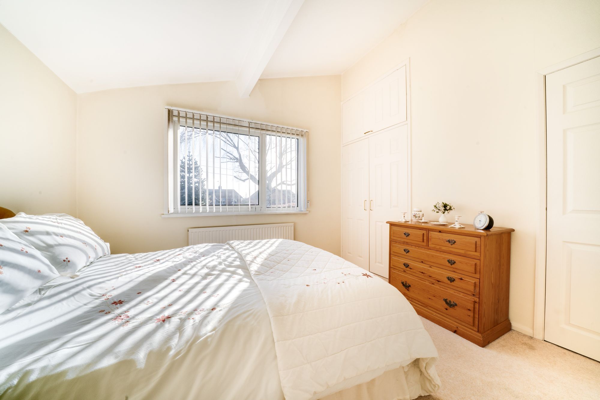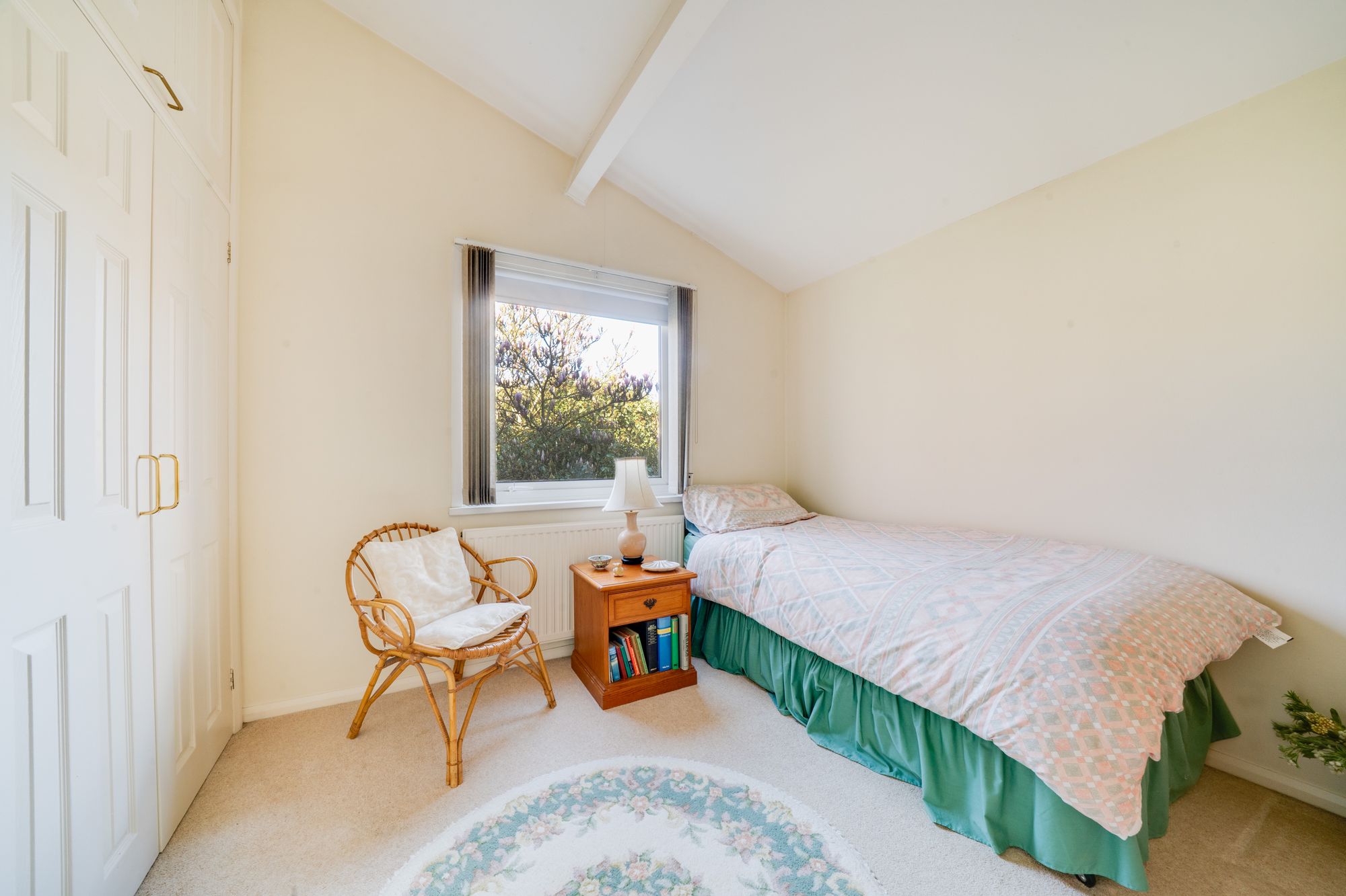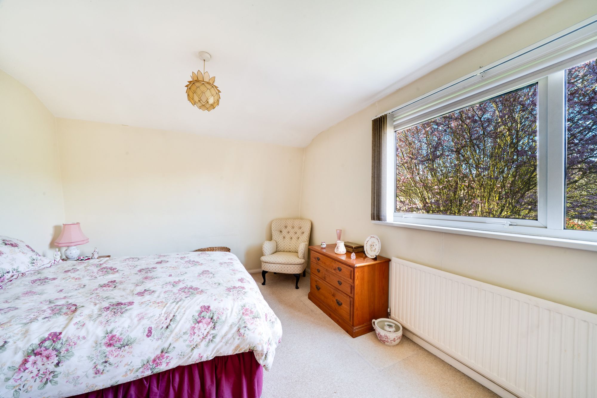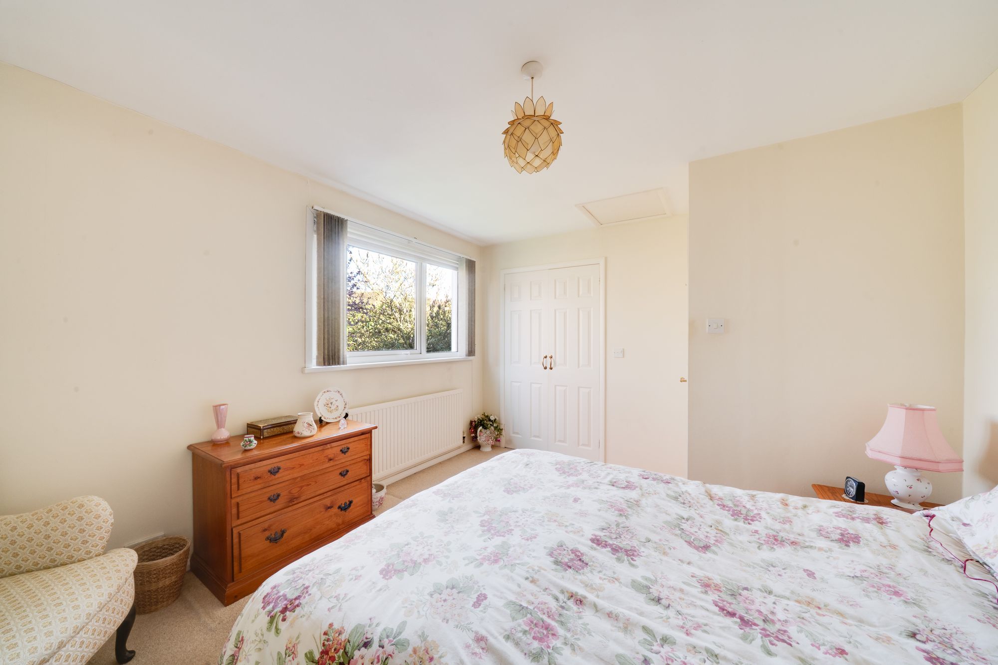 The bedroom accommodation comprises three well-proportioned rooms, each benefiting from a light and airy feel. The principal bedroom is especially spacious and features built-in storage, while all rooms enjoy pleasant outlooks over the surrounding greenery. A shower room serves the first floor accommodation.