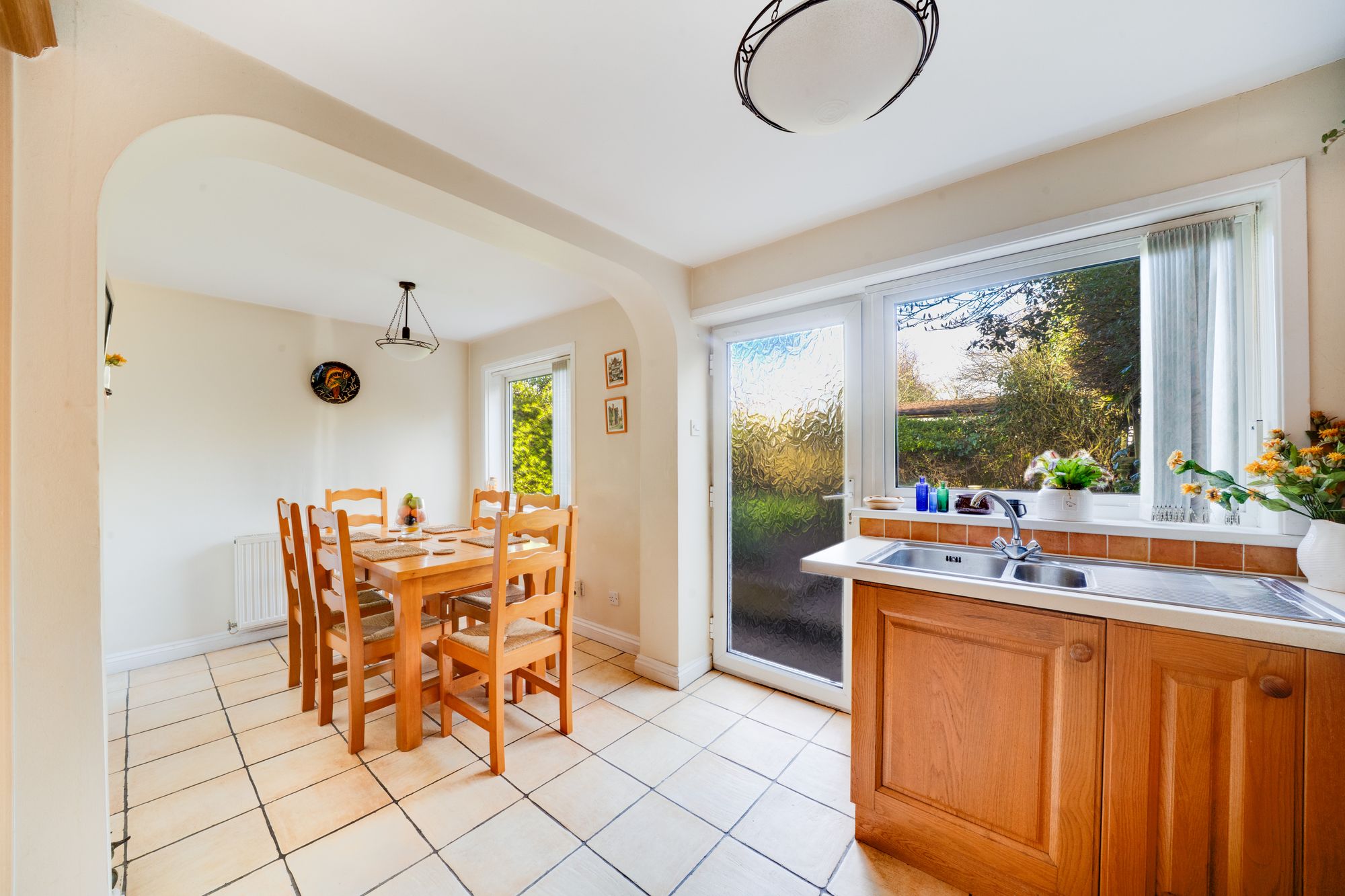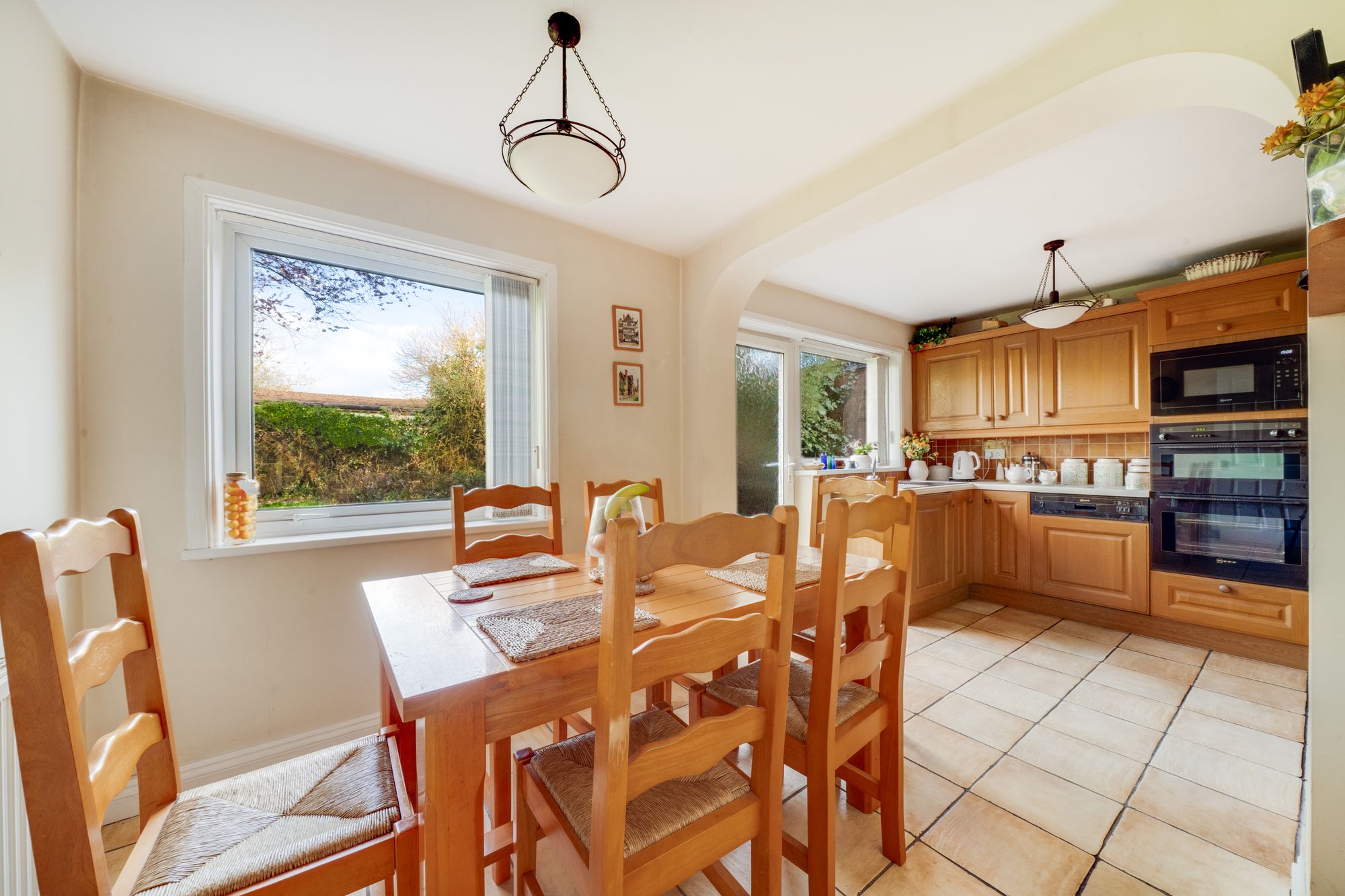 To the front, the dining room is a bright and inviting space, ideal for both everyday use and entertaining, with a pleasant outlook over the garden. To the rear, the kitchen/breakfast room provides a generous and functional space, with ample room for informal dining and direct access to the garden. A separate utility room further enhances the practicality of the home.