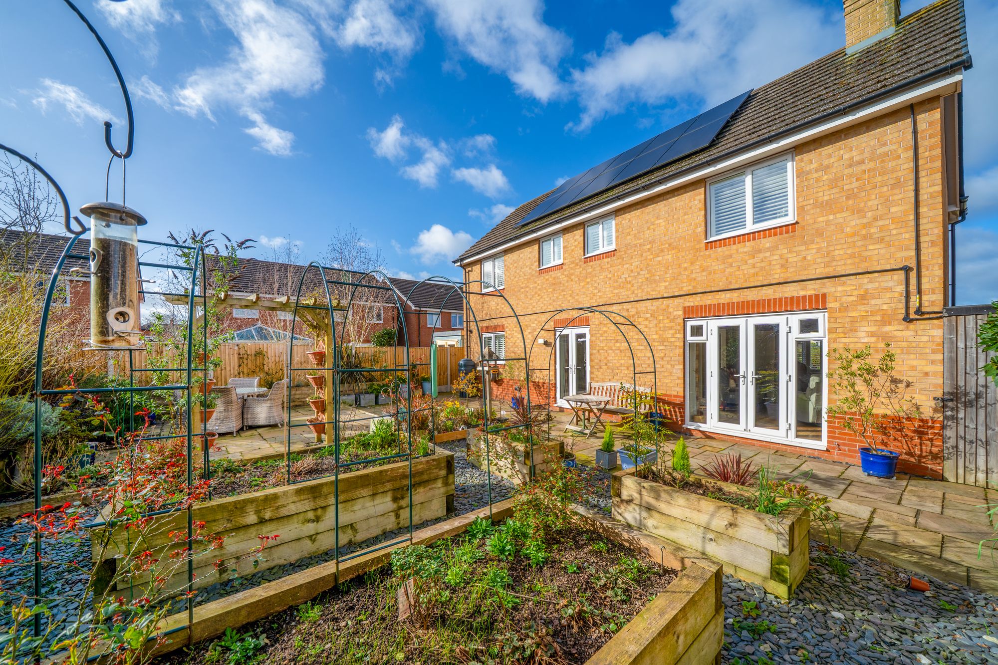The property also benefits from modern energy-efficient features including solar panels with a battery storage system, helping to reduce energy costs, along with the added convenience of an electric vehicle charging point.