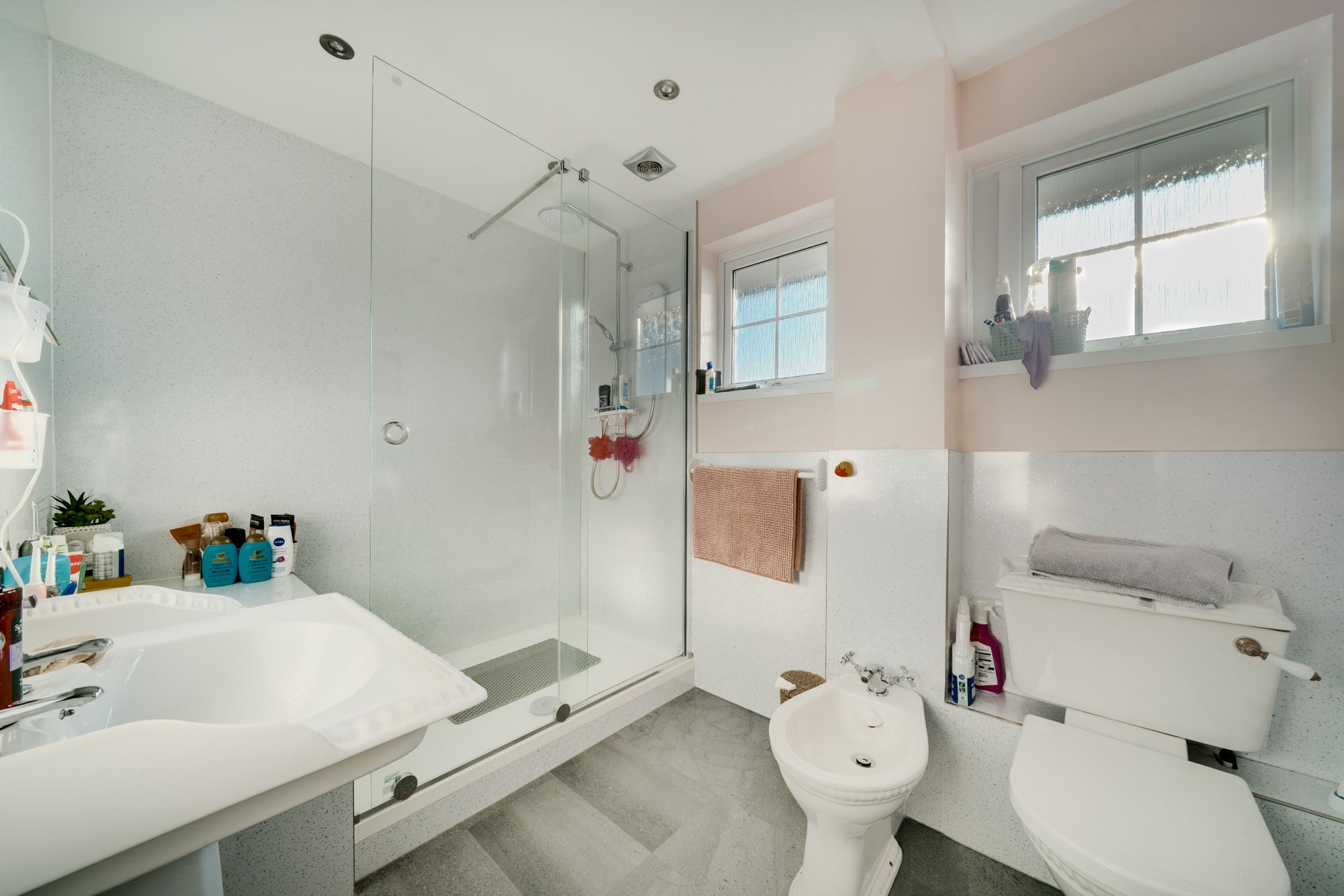 The family bathroom has been recently renovated, and features WC, wash hand basin, bidet, and large walk-in shower.