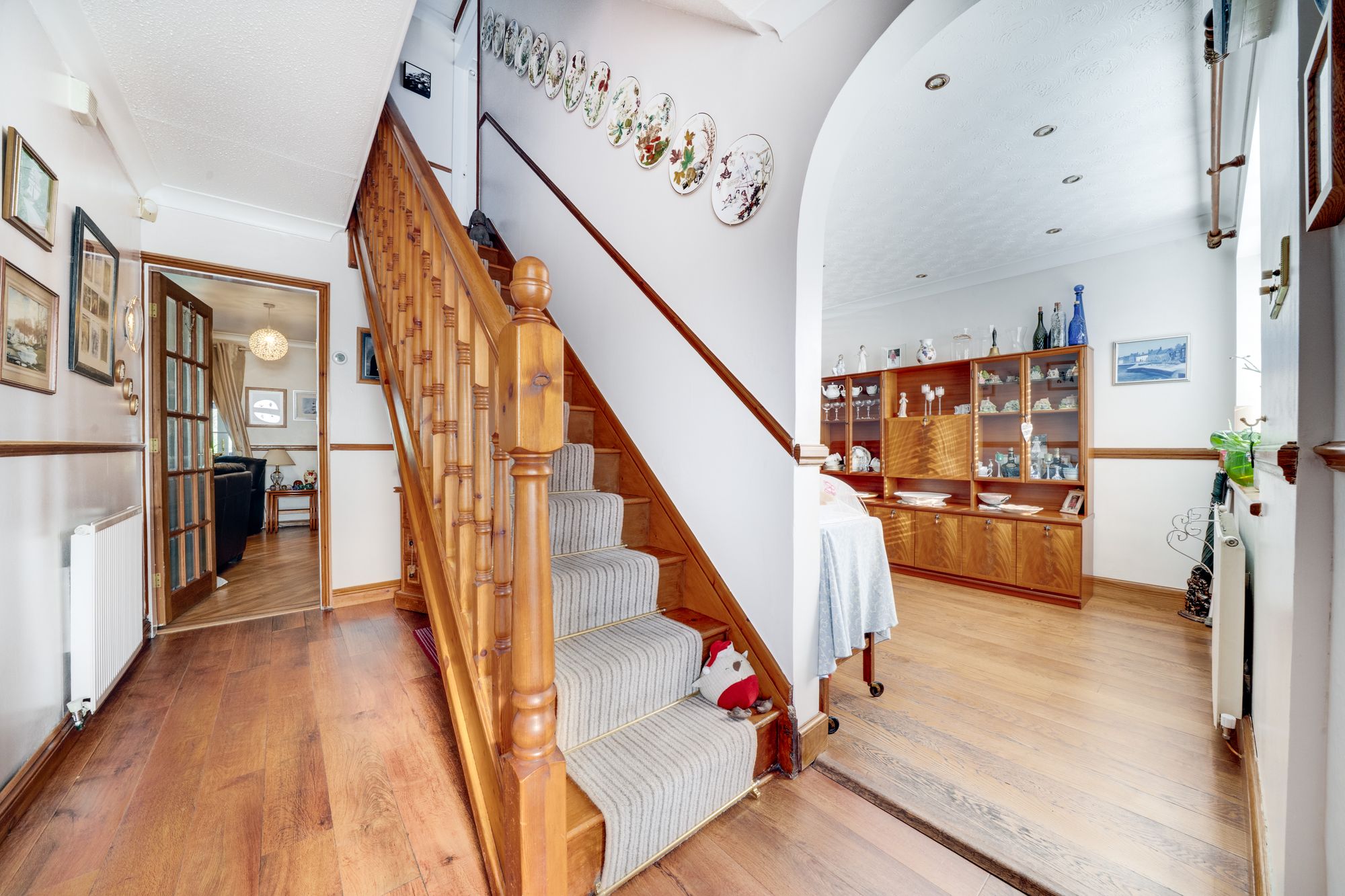 Each of the four double bedrooms are generously proportioned, ensuring comfortable accommodation for all members of the household, while the principal bedroom benefits from fitted wardrobes, dual aspect windows, and attractive views over the garden.