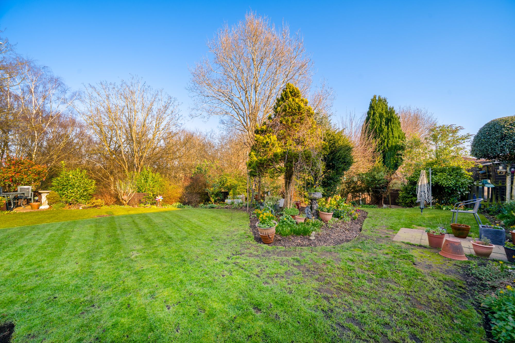The outside space is equally impressive, offering a peaceful and private retreat that is perfect for both relaxation and entertaining. The mature garden is thoughtfully landscaped, featuring a combination of lawned areas, established borders, and a variety of trees and shrubs that create a sense of seclusion and tranquillity. A spacious patio area provides the ideal spot for al fresco dining or summer barbeques, while the well-maintained lawns offer plenty of space for children to play or for keen gardeners to enjoy.