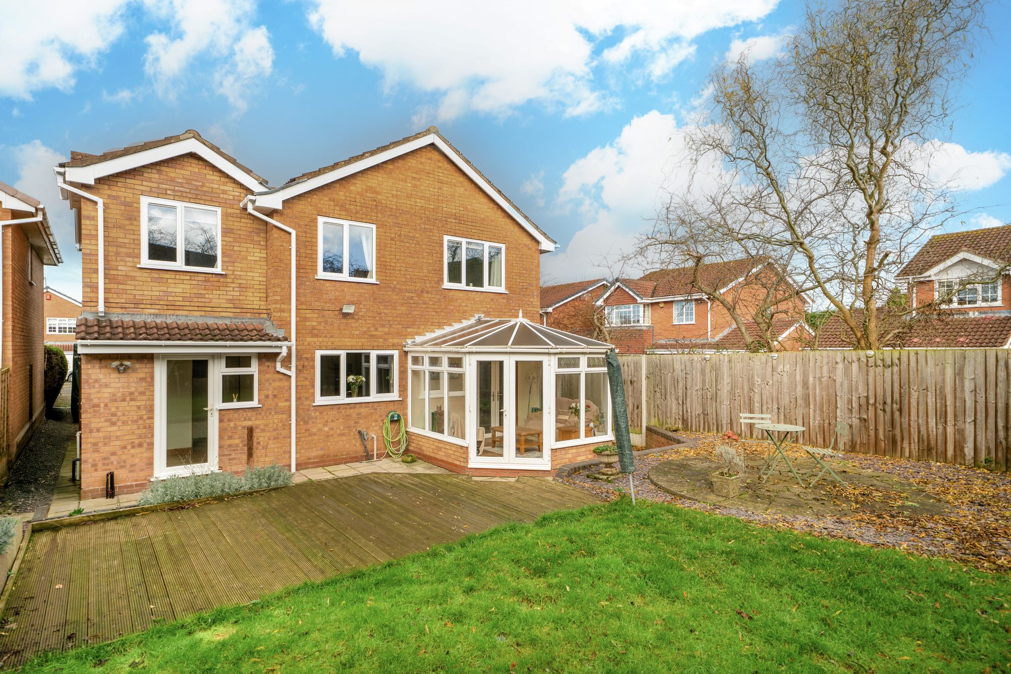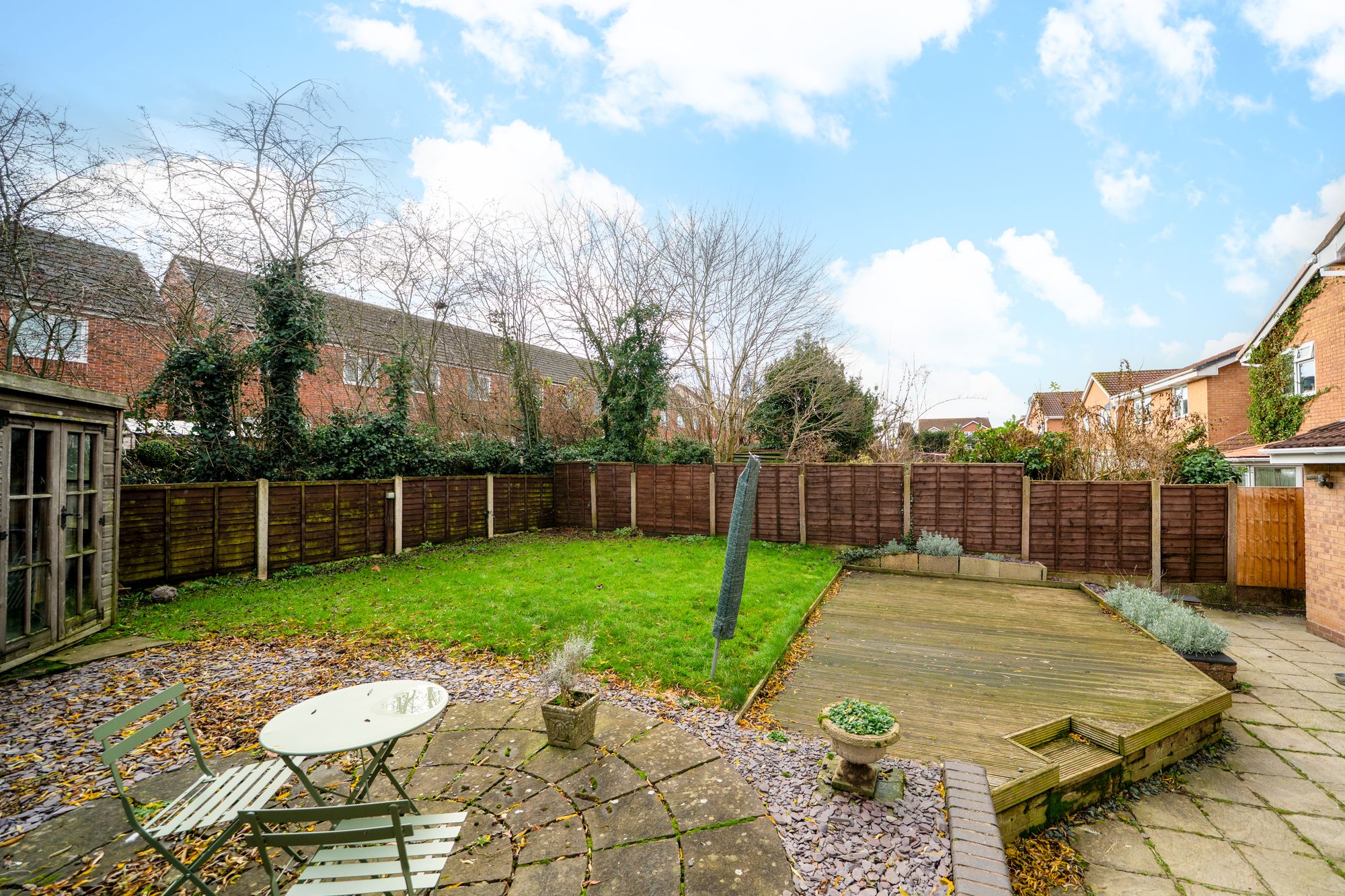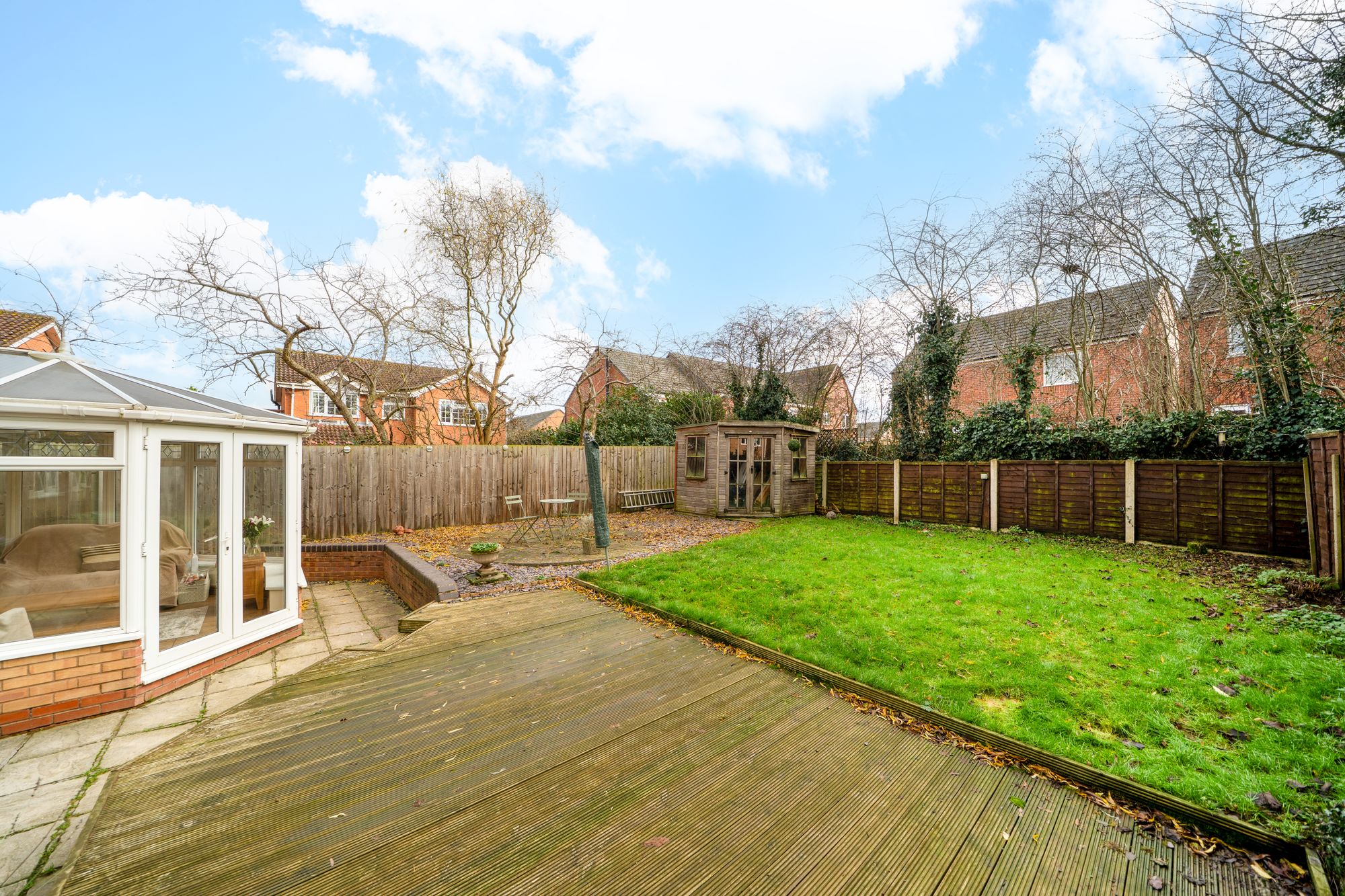 To the rear of the property, the garden is a real highlight. Generous in size, it offers a wonderful combination of decking and patio areas, creating ideal spaces for outdoor dining, entertaining or simply enjoying time outside. The garden also provides plenty of room for children to play or for keen gardeners to make it their own, all within a private and enclosed setting.
