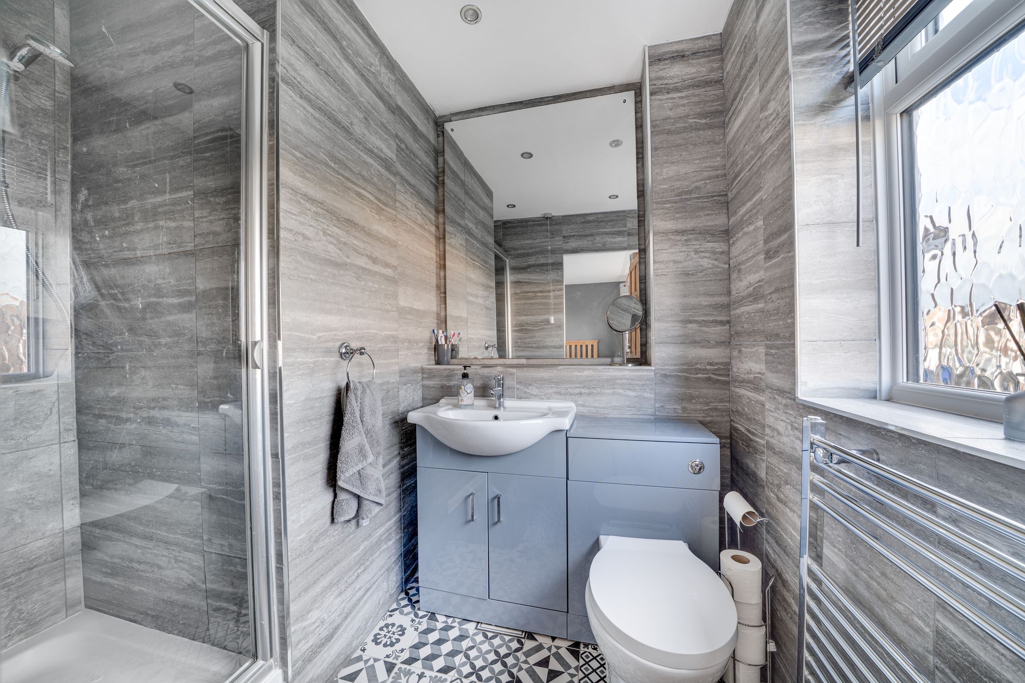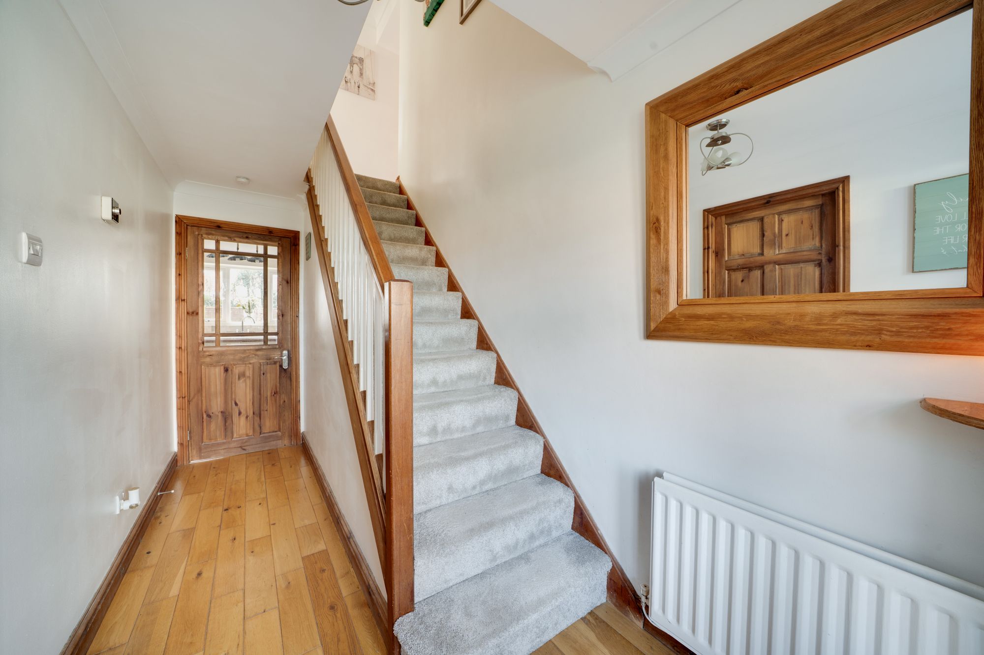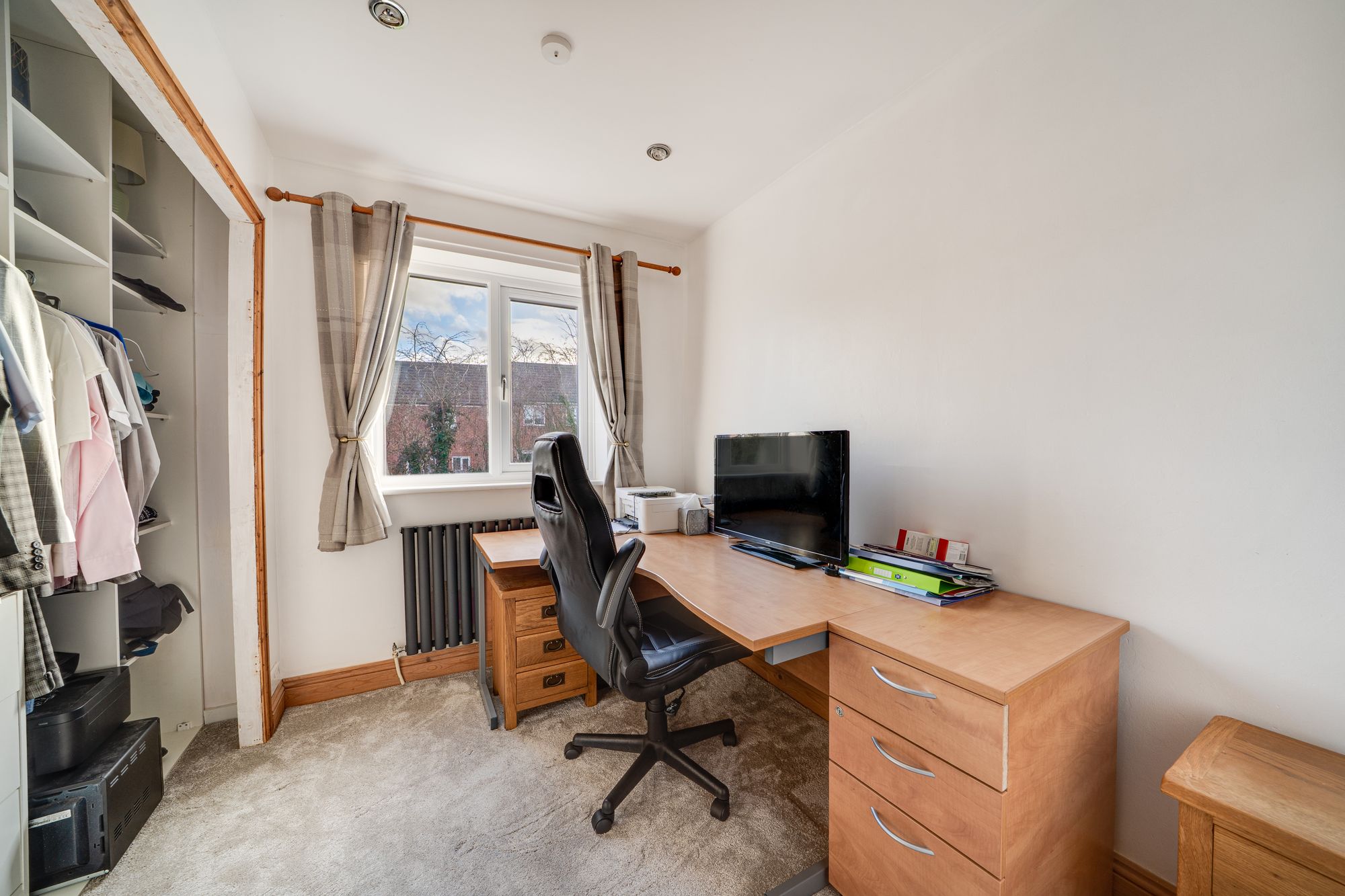 Upstairs, the first floor offers a well-balanced arrangement of bedrooms, providing flexibility for families, home working or guest accommodation. The main bedroom benefits from its own en suite facilities, while the remaining bedrooms are served by a family bathroom, all accessed from a central landing that feels light and spacious.