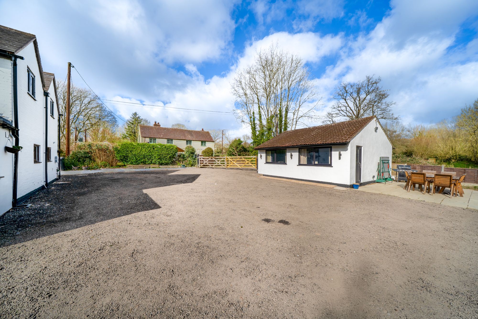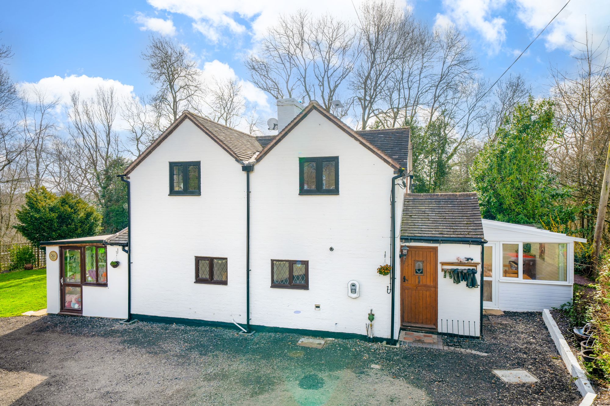 Tucked away in an enviable position on the edge of Shifnal, Lanes End Cottage is a beautifully presented detached home that perfectly blends charm, space and modern comfort. Approached through a large gated entrance, the property immediately creates an impression of privacy and substance, with an expansive driveway providing generous parking and a welcoming approach to this distinctive home.