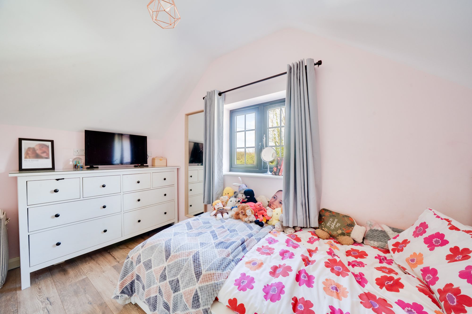 The ground floor accommodation continues with additional versatile rooms that could serve as a playroom, study or hobby space, allowing the home to easily adapt to the needs of modern living. Practical elements such as a dedicated utility room add to the ground floor layout.