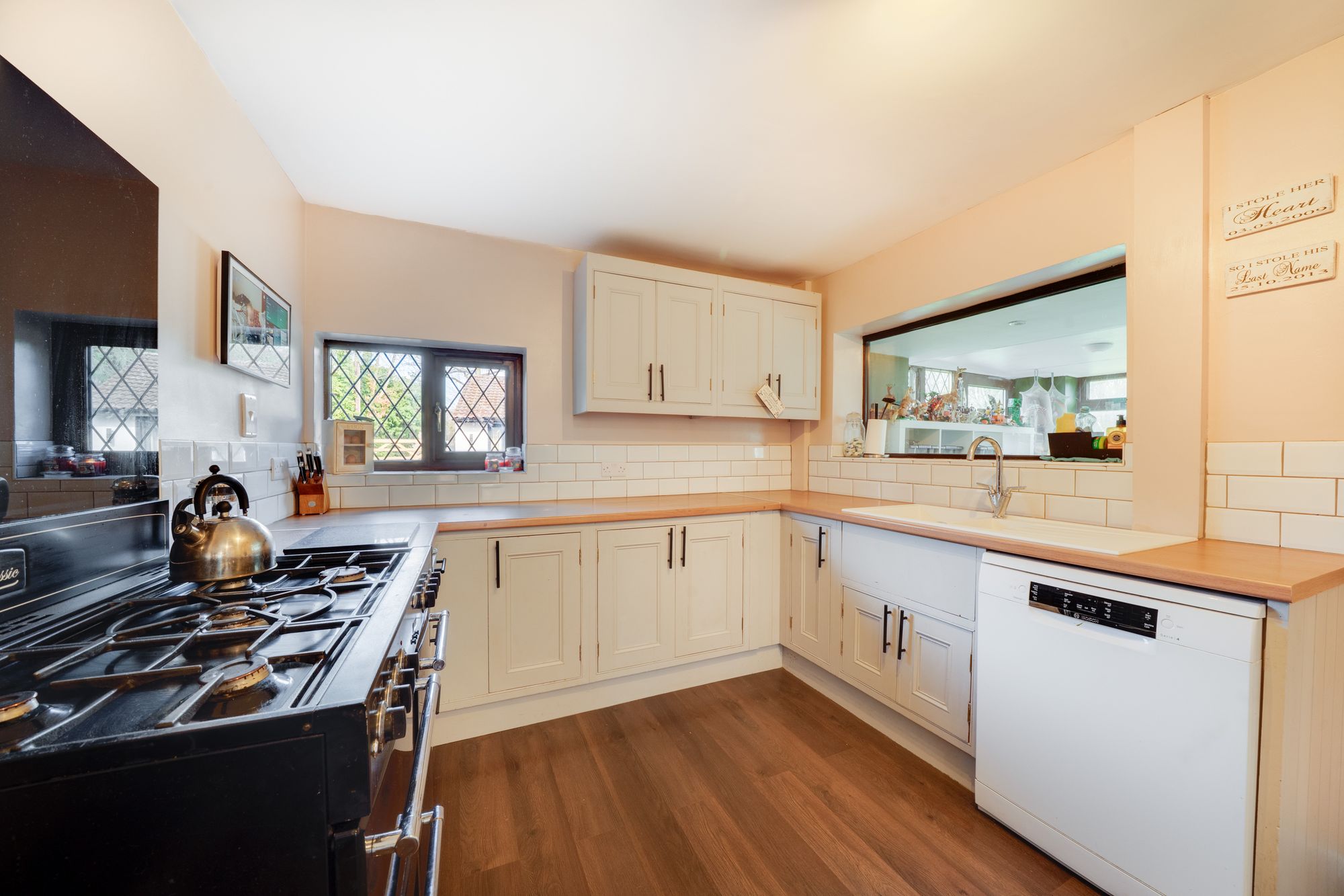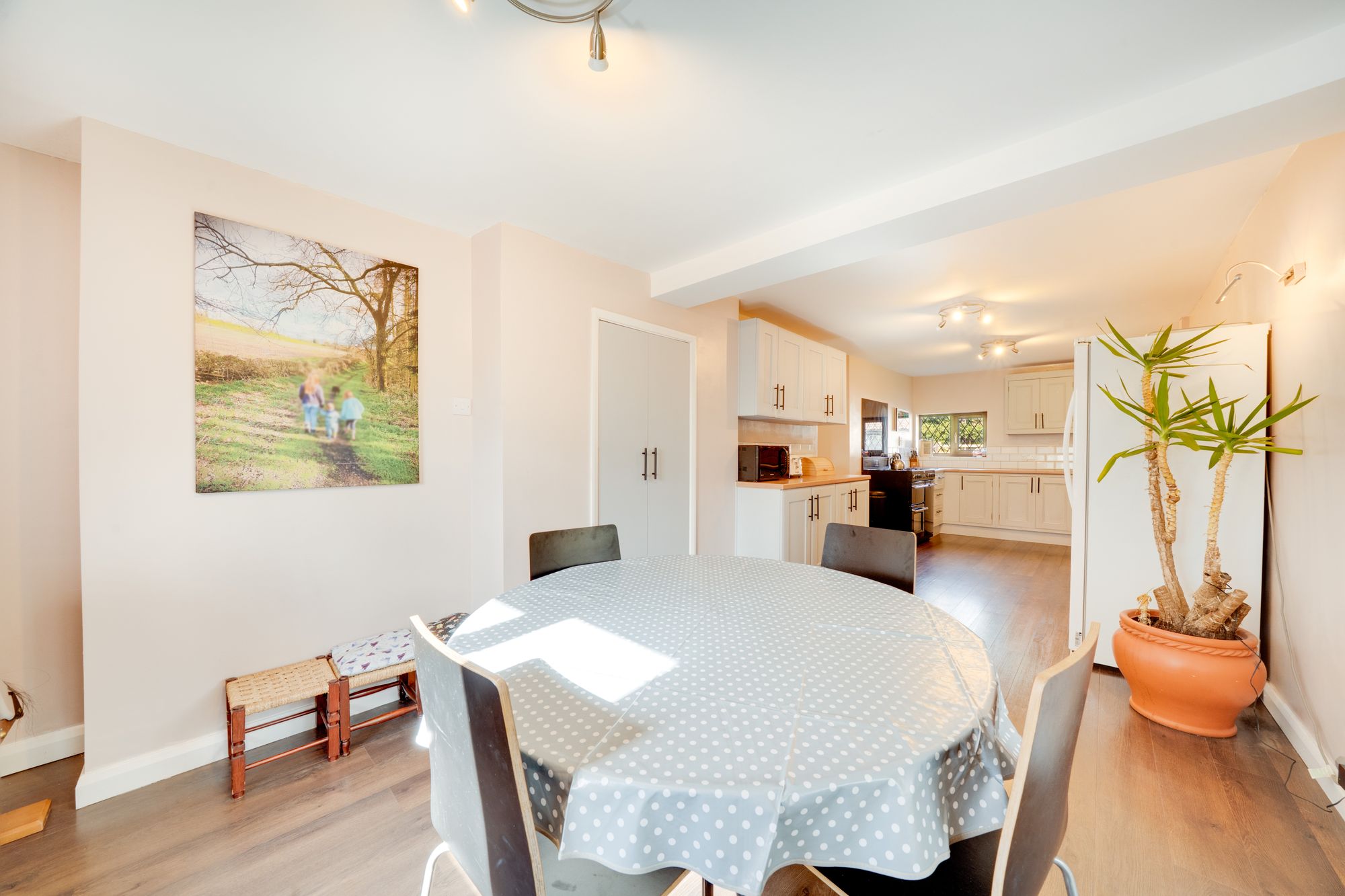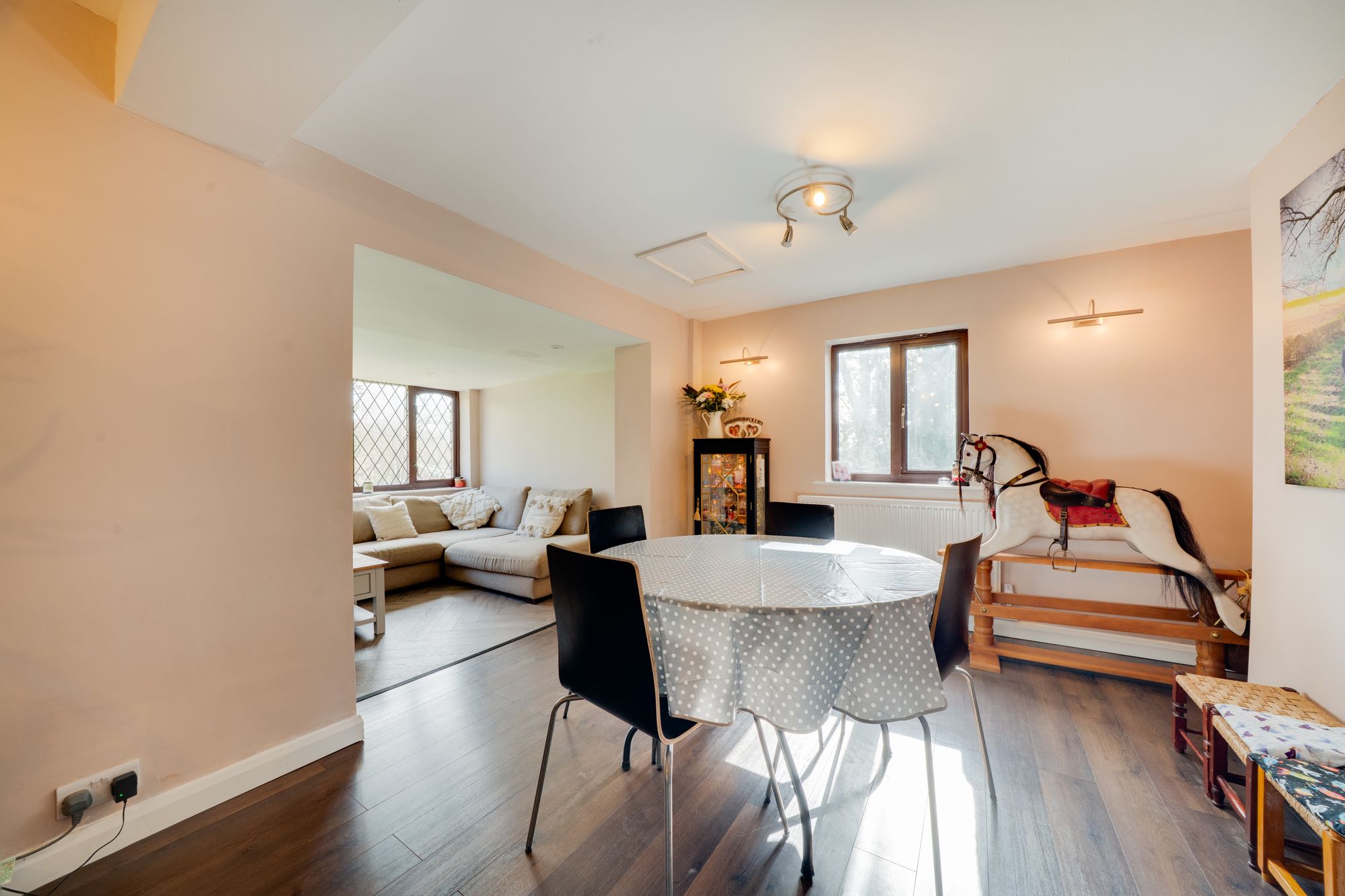 Inside, the cottage offers a wonderfully versatile layout designed for both family living and entertaining. The heart of the home is the stylish modern kitchen, thoughtfully designed with contemporary fittings and ample workspace, creating a bright and sociable environment for cooking and gathering. Flowing naturally from the kitchen are a number of inviting reception spaces, each offering its own character and atmosphere. A comfortable lounge provides a cosy retreat, while the impressive family room offers a spacious setting ideal for relaxing, entertaining guests or spending time with family. The adjoining conservatory draws in natural light and provides a delightful vantage point over the garden, creating a peaceful spot to unwind throughout the seasons.