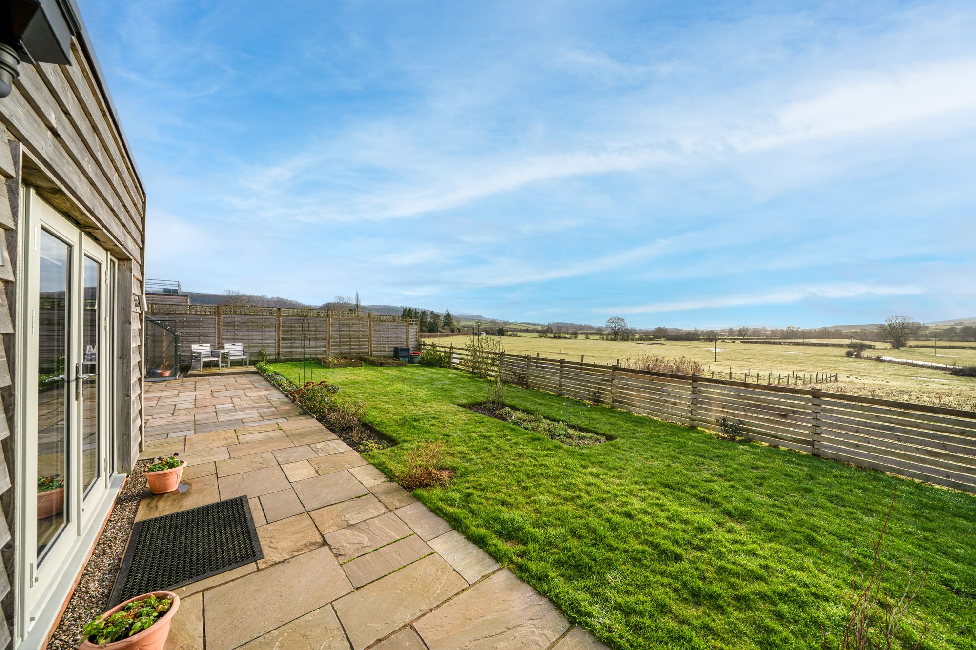 Set within the heart of the Shropshire countryside, Esme View occupies a prime corner position within a small and exclusive modern development in the village of Broome. The property enjoys far-reaching rural views, a wrap-around garden, and well-balanced accommodation ideally suited to modern family living, further enhanced by zoned underfloor heating throughout the ground floor.