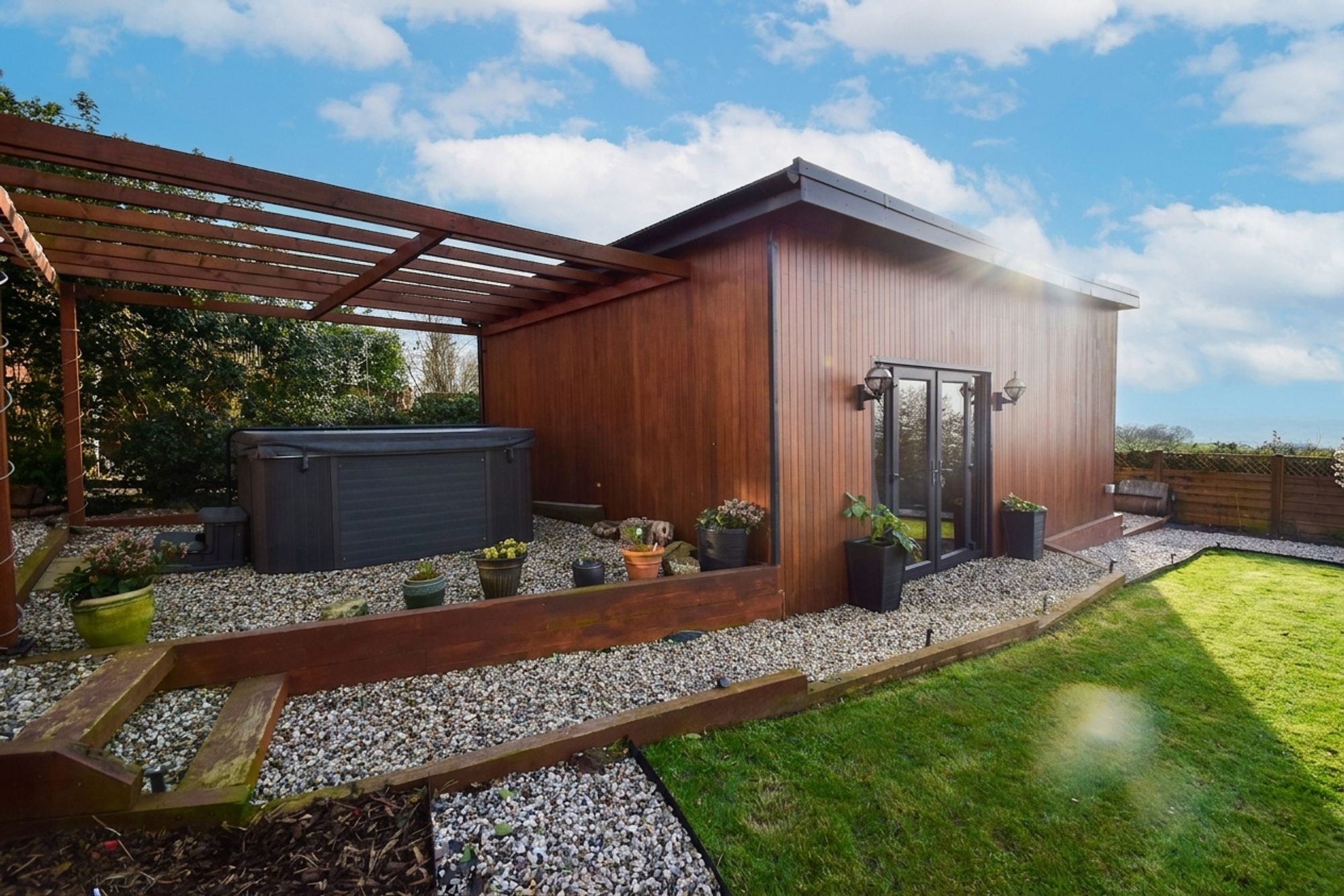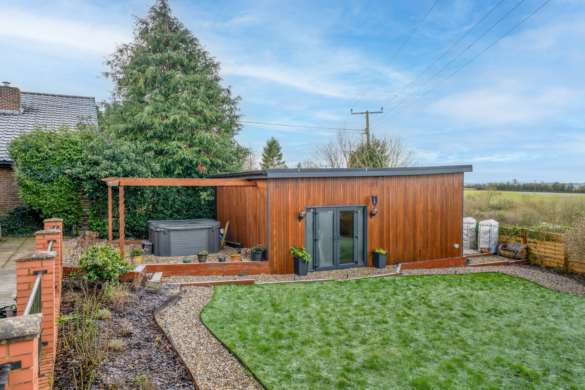 Approached via a sweeping carriage driveway, Leawood sits proudly within its generous plot, enjoying an elevated position and attractive rural outlook. The driveway provides ample off-road parking and access to the integrated garage, with a central lawn and established planting creating an inviting first impression.
