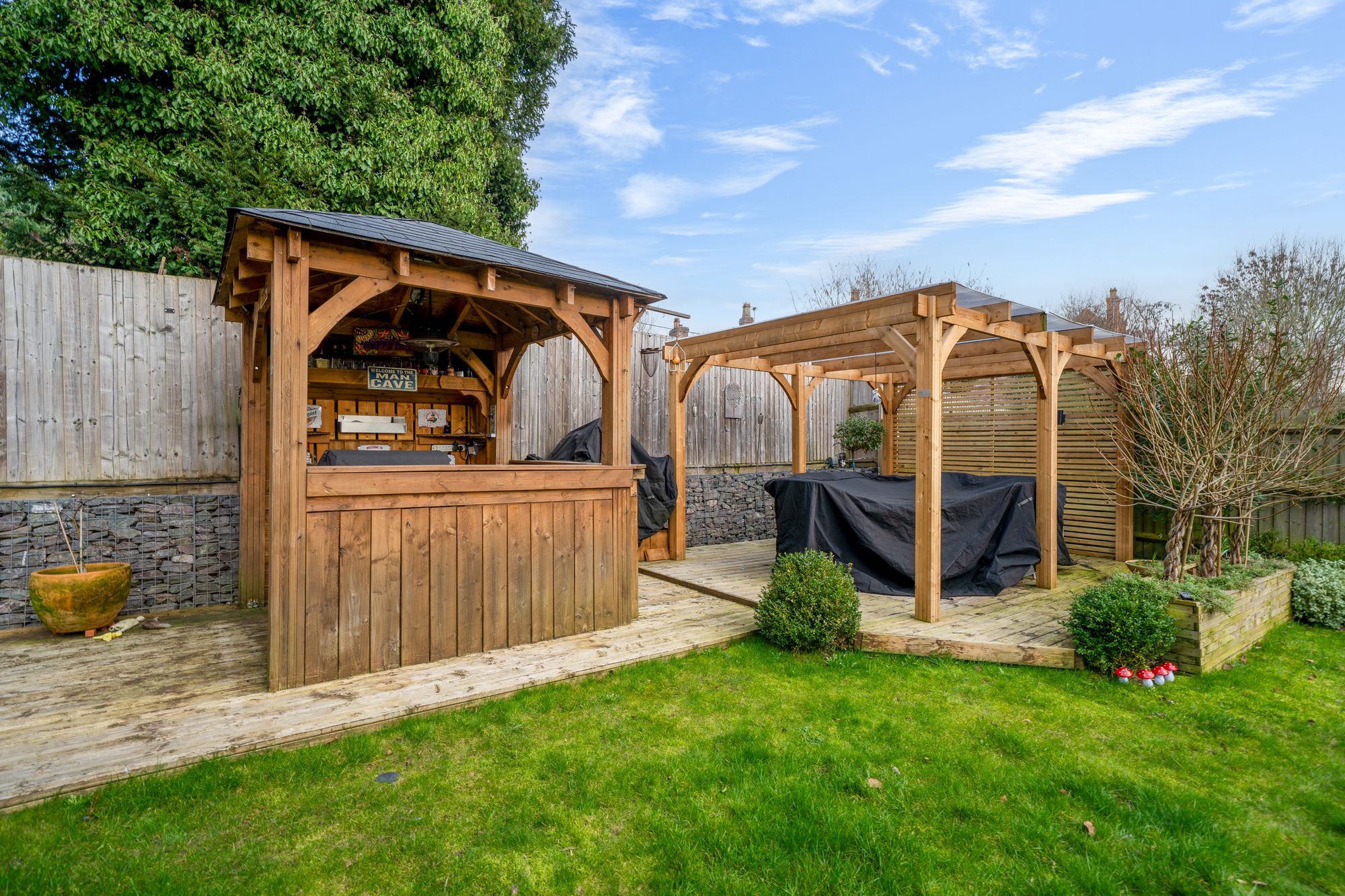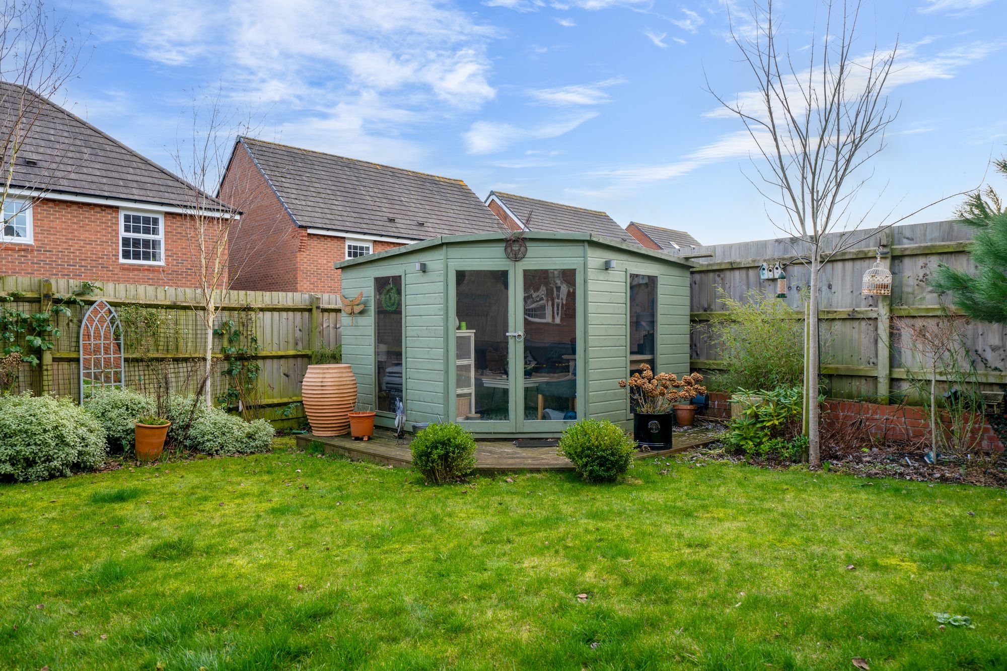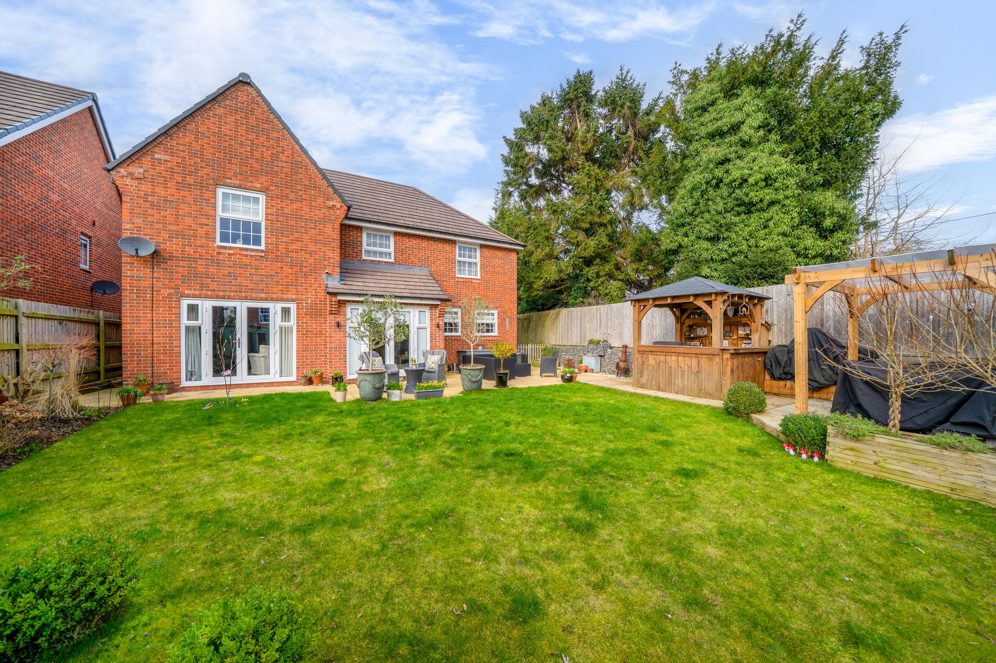 Step outside and the lifestyle appeal really comes into its own. The rear garden is large and designed for making the most of sunny days and long evenings, with a summerhouse providing a peaceful escape for relaxing, hobbies or a garden office. An outdoor bar area elevates the space even further, creating a brilliant setting for entertaining friends and family, hosting celebrations, or simply enjoying a quiet drink as the sun goes down.