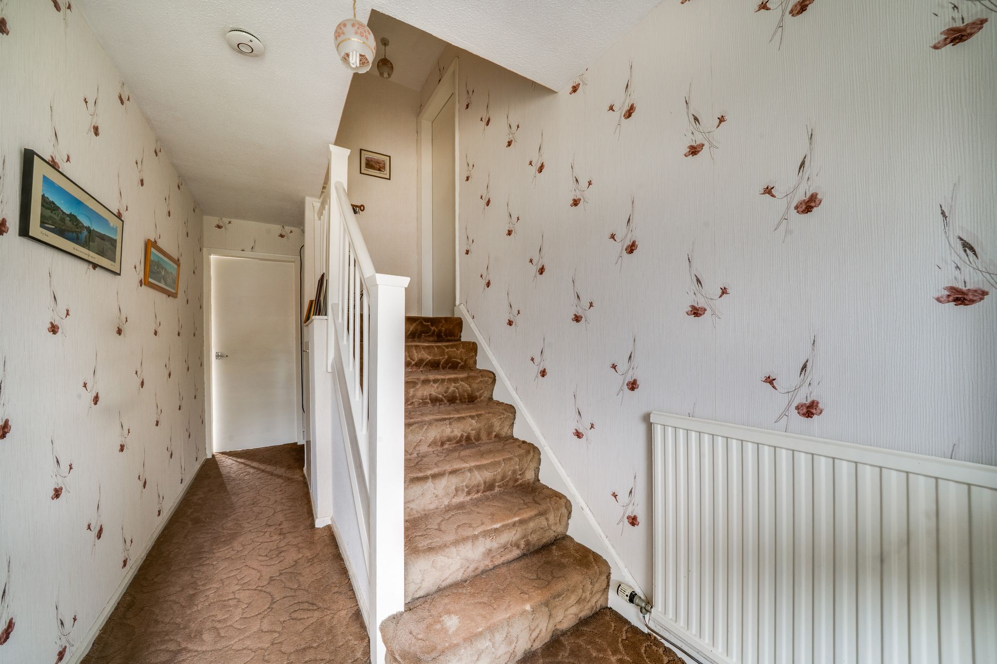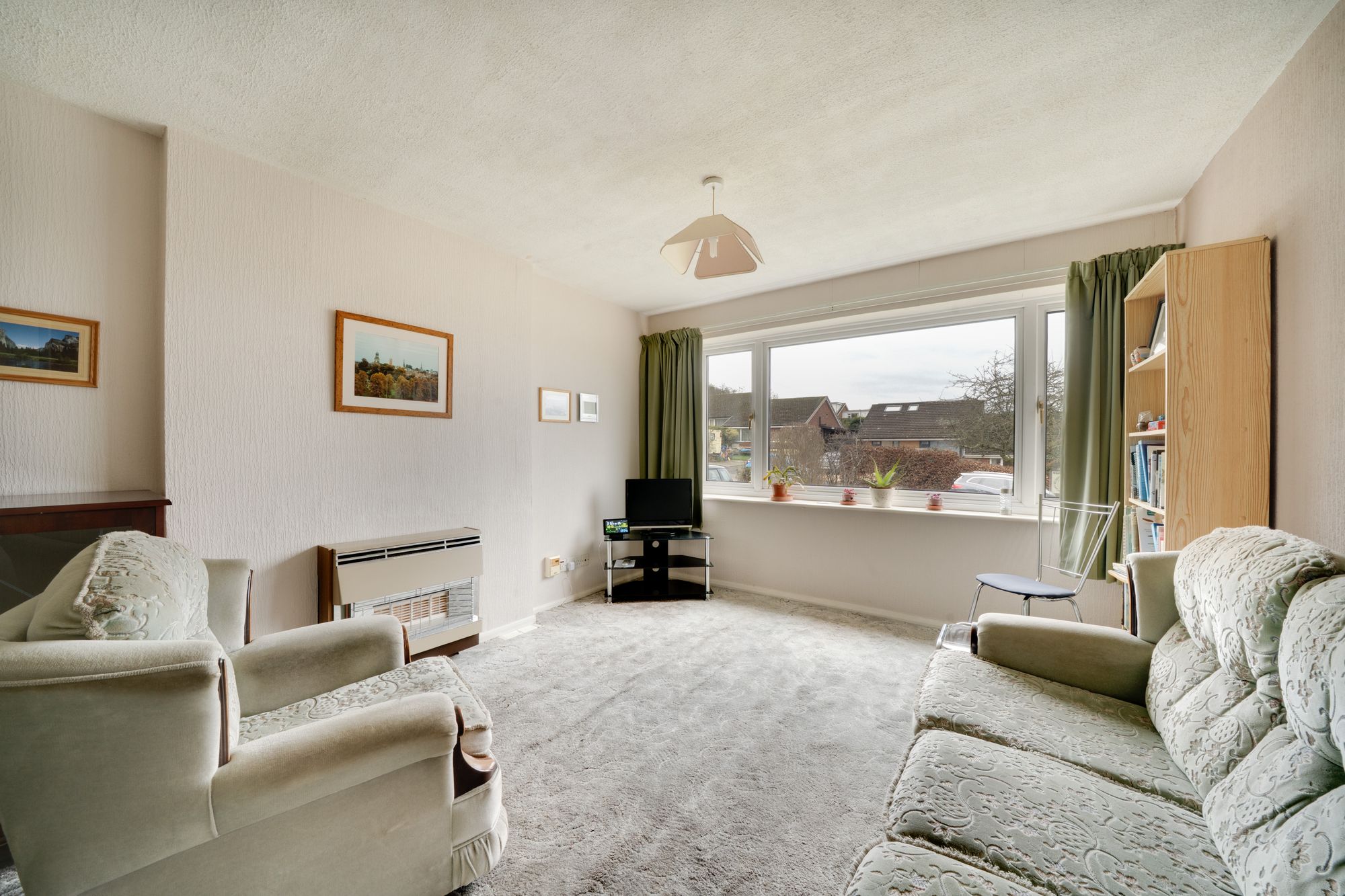The accommodation is arranged over a distinctive split-level layout, with the front door opening into an entrance hallway that provides access to the lower-level bedroom. This flexible layout offers excellent scope for modernisation, allowing a purchaser to personalise and enhance the property to suit their own requirements.