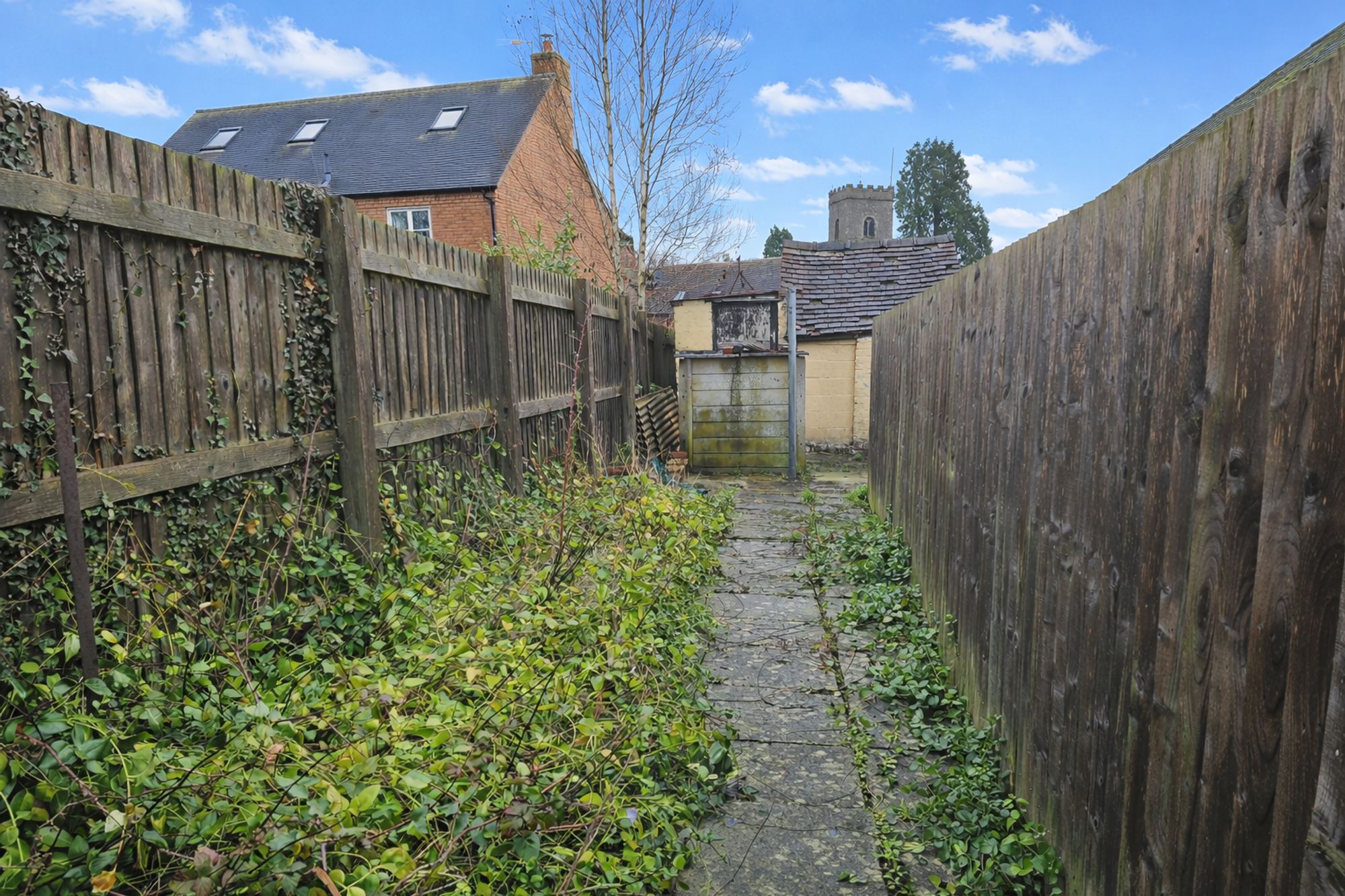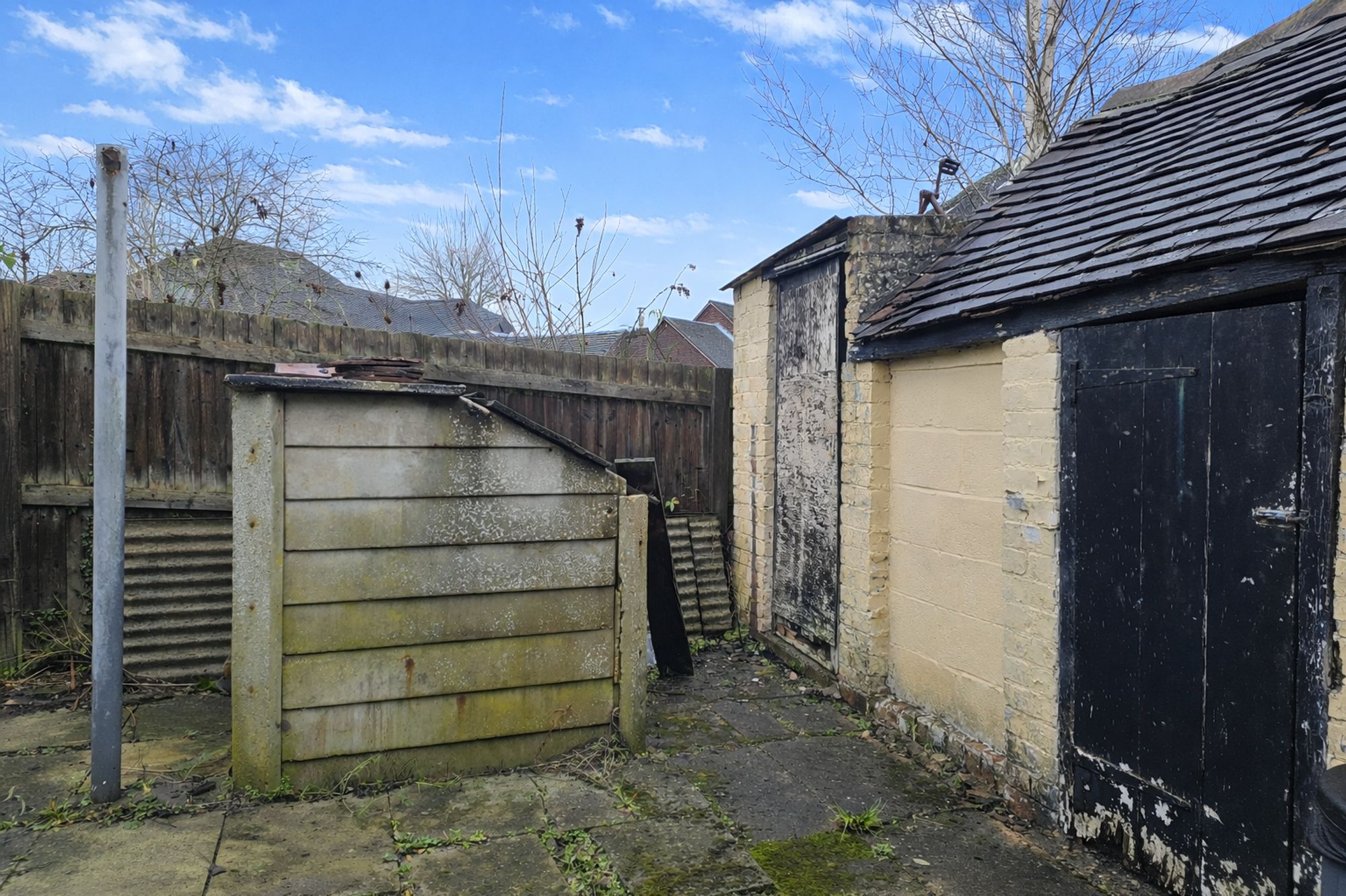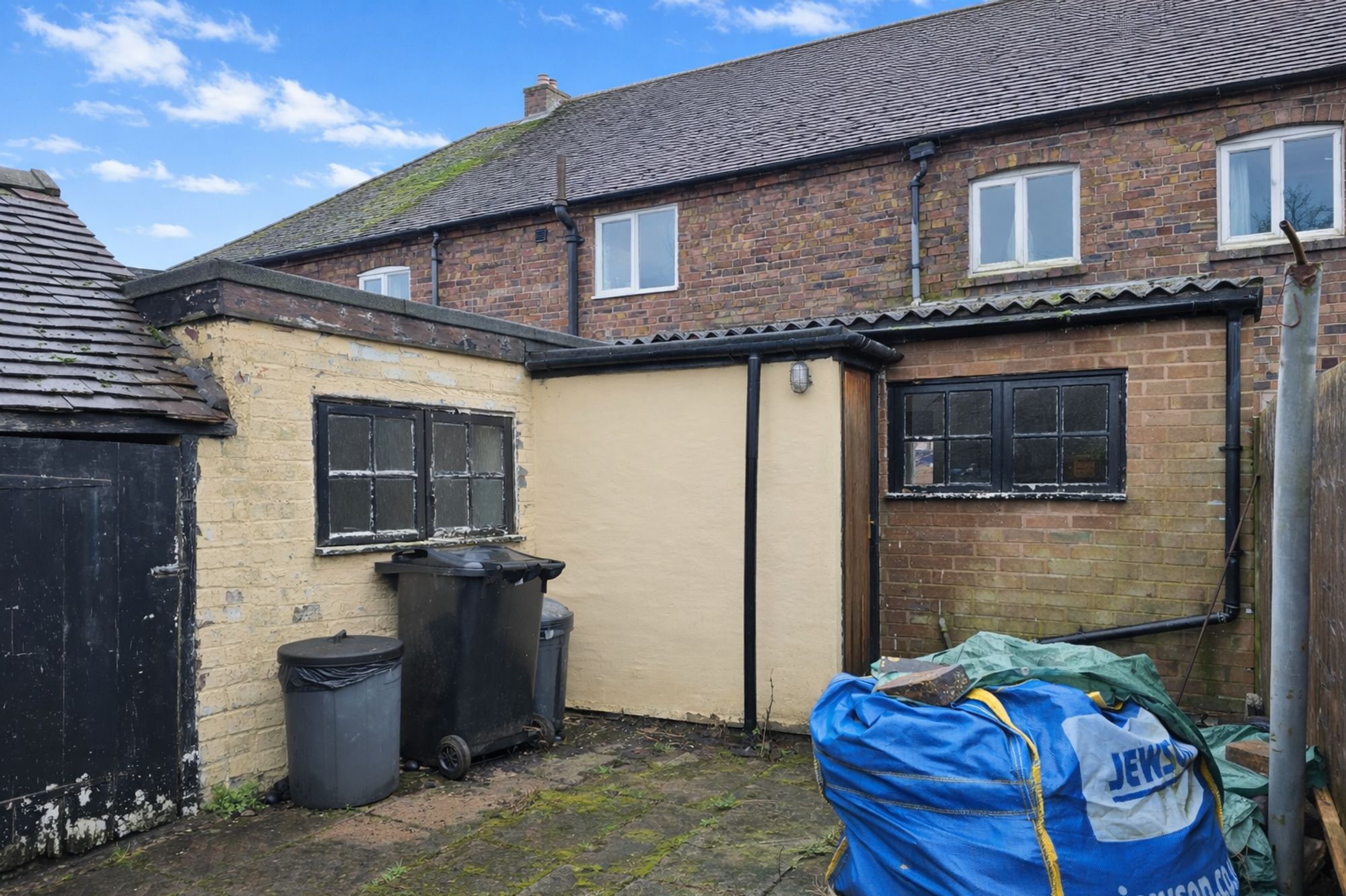 Outside the rear garden is hard landscaped with outbuildings and access to the property frontage.