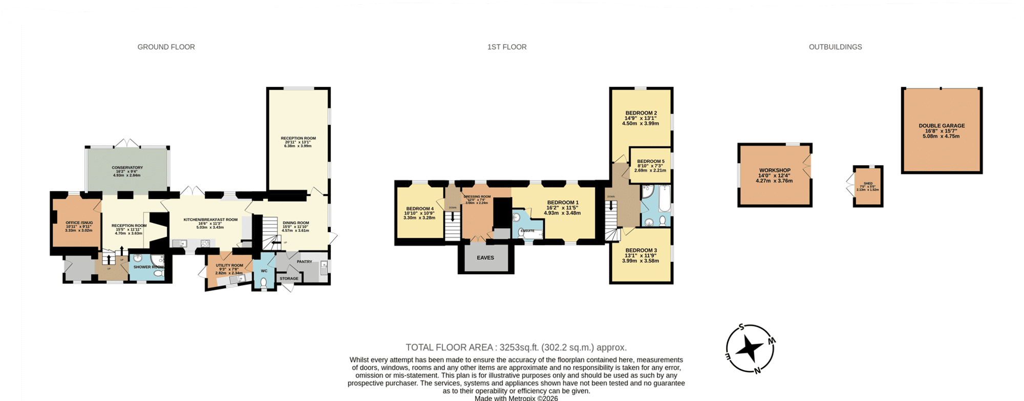 The gardens are laid to lawn with mature shrubs, established trees and colourful borders; white wisteria, quince and pyracantha are trained against the house. The patio area, riverbank and lawned areas create numerous spaces for outdoor dining and entertaining. The grounds beyond the fence slope gently towards the River Onny, where peaceful seating areas offer scenic riverside views. The garden includes productive raised beds, a greenhouse and a timber shed. Additional outbuildings include a detached double garage and a workshop providing ample space for tools, equipment or hobbies.