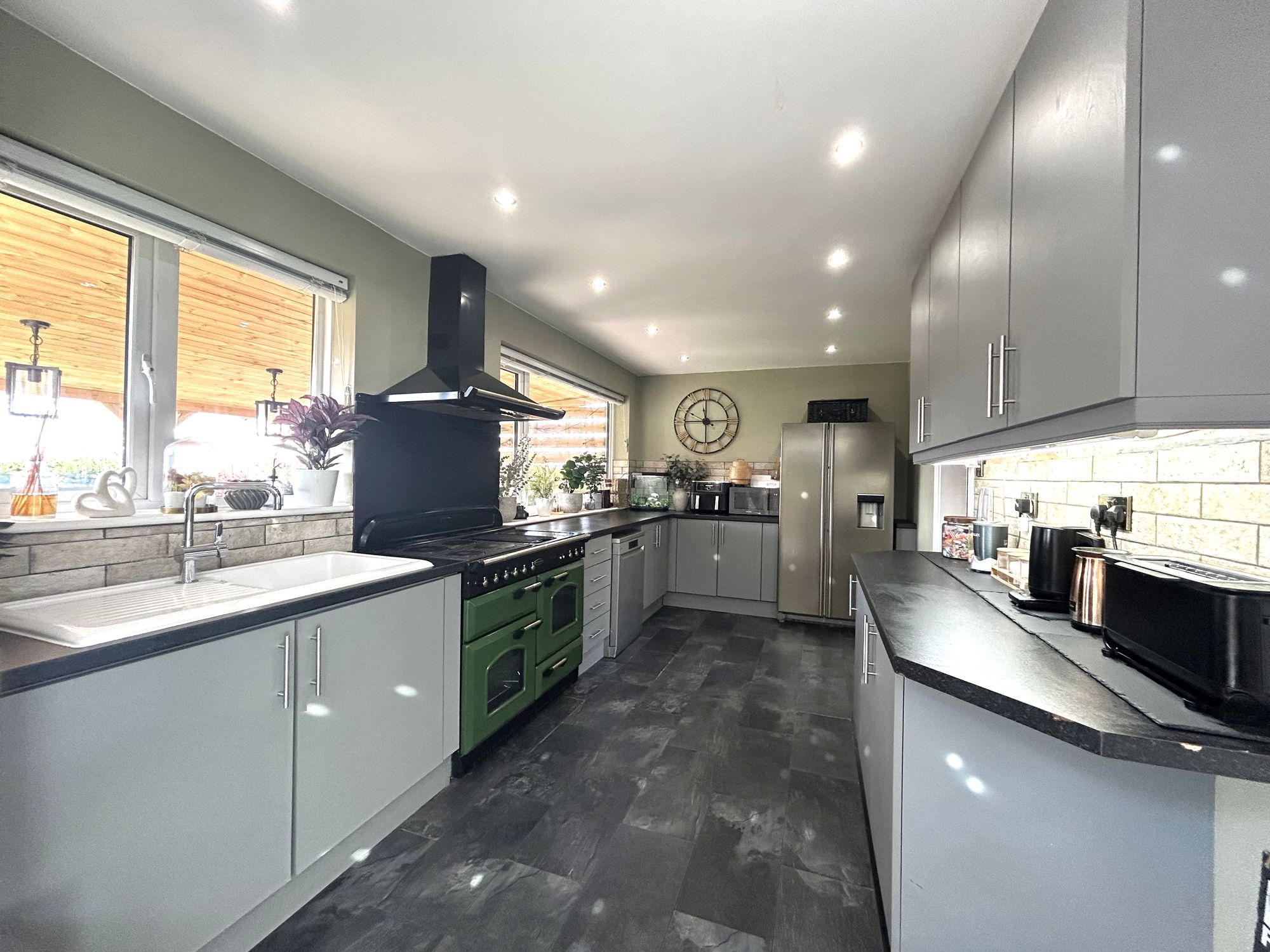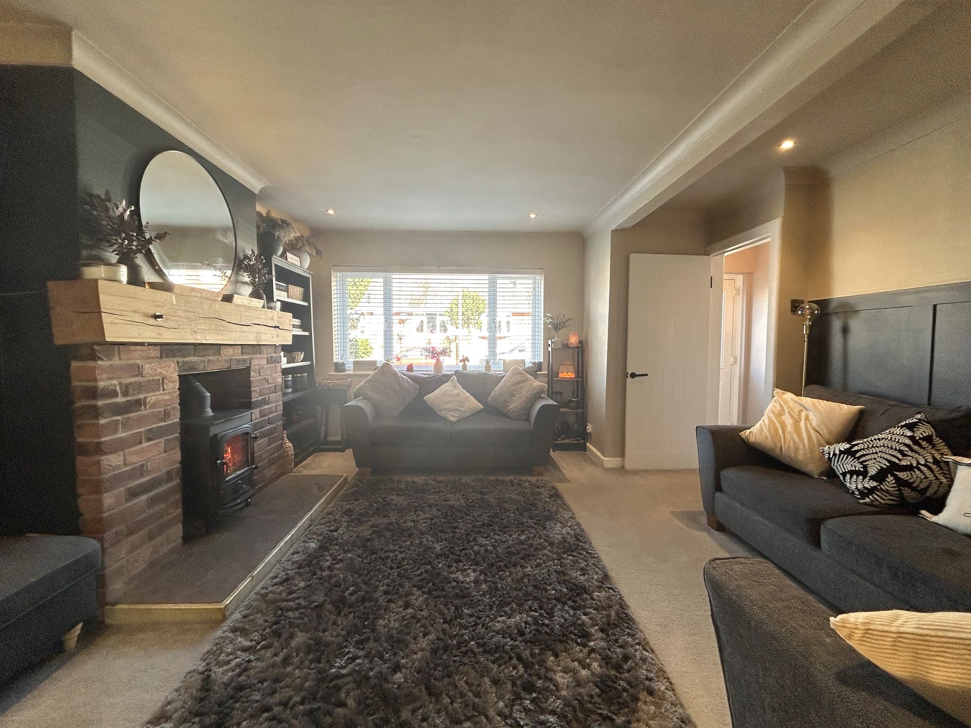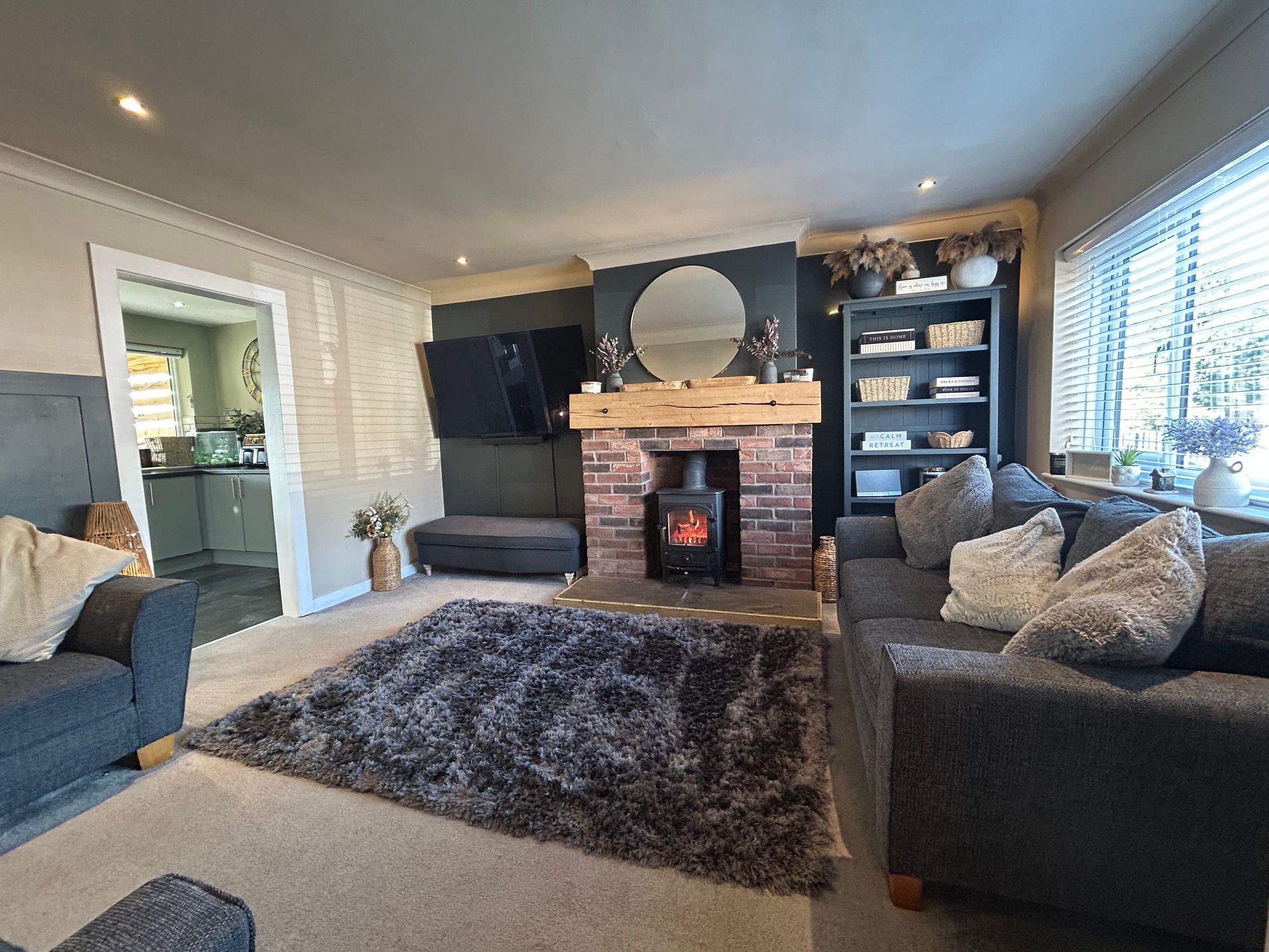 The well-presented accommodation briefly comprises an entrance hall with cloak area, leading into a spacious lounge featuring laminate flooring and a log burner set within a brick fireplace surround.