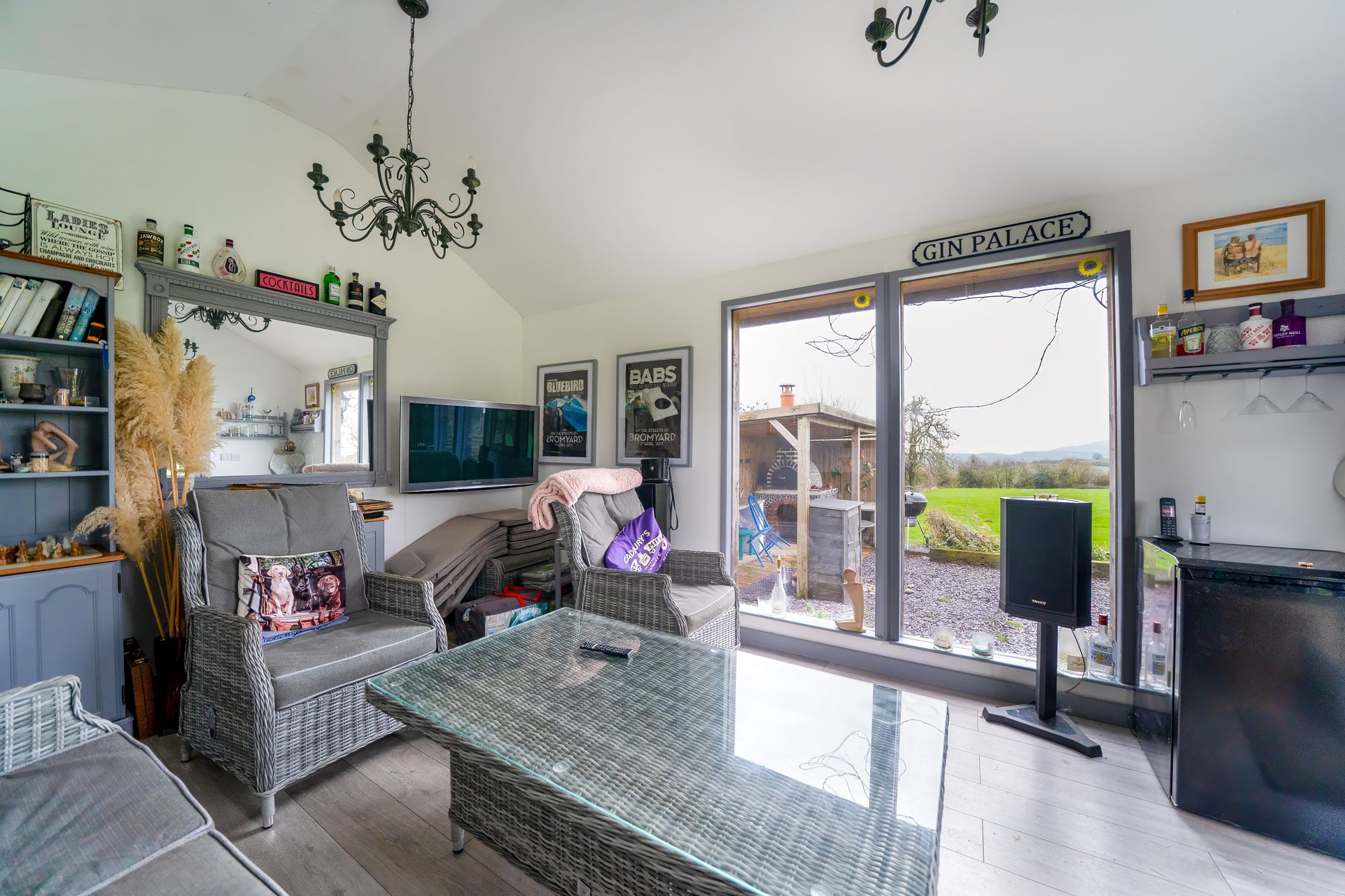 The outdoor space elevates the lifestyle on offer. Landscaped gardens provide areas for relaxation and entertaining, with a gazebo creating an inviting setting for summer evenings. A detached summer house offers excellent versatility, ideal as a social space, home office or leisure retreat. Beyond the formal garden, additional land provides further opportunity, with existing planning permission in place for stables, appealing to those seeking a more rural or equestrian lifestyle.