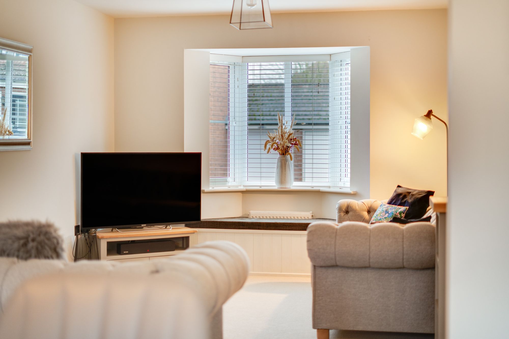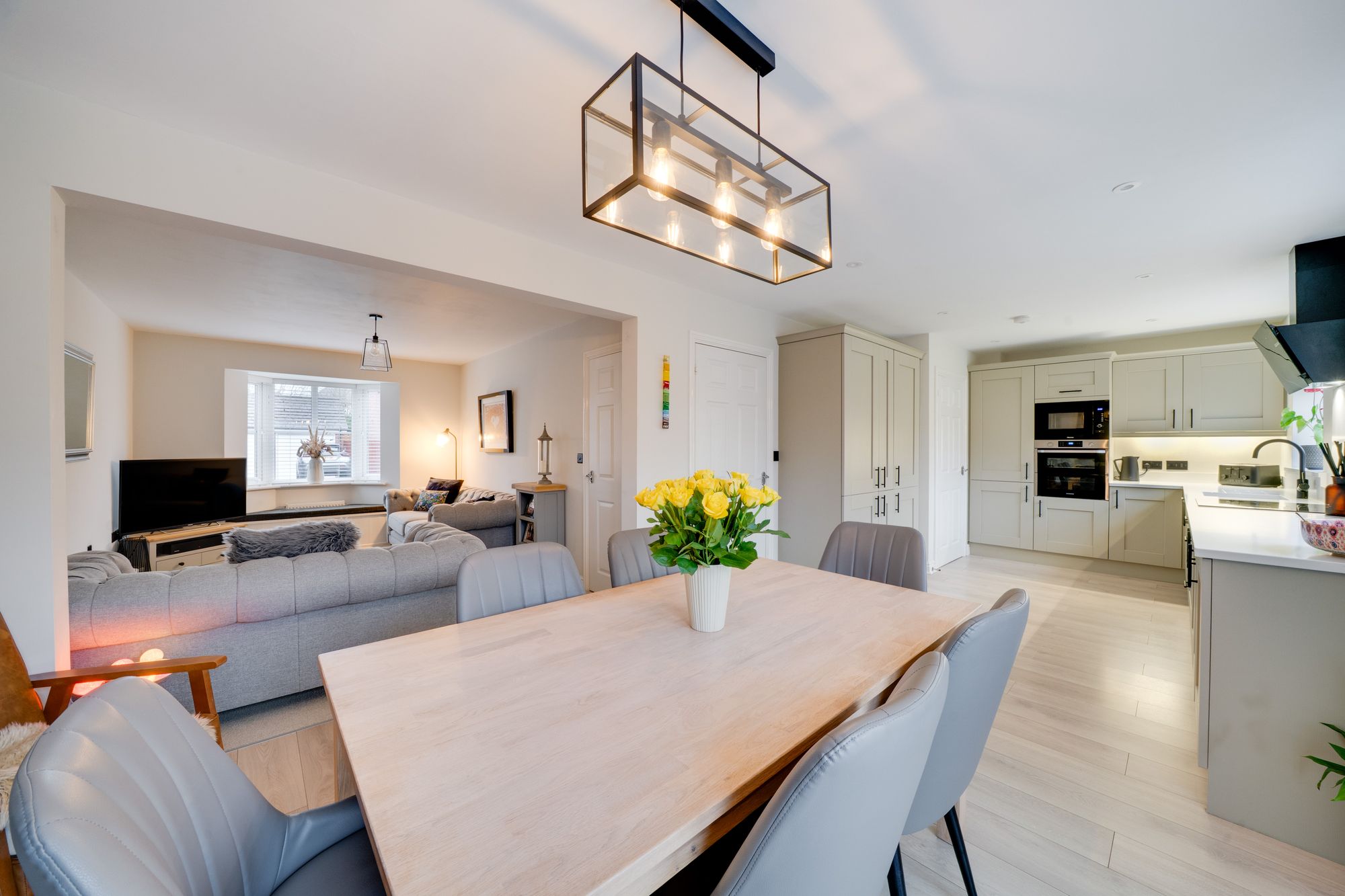 A generously proportioned living room features a double glazed bay window to the front elevation and open access to the dining kitchen, creating a lovely flow to the accommodation.