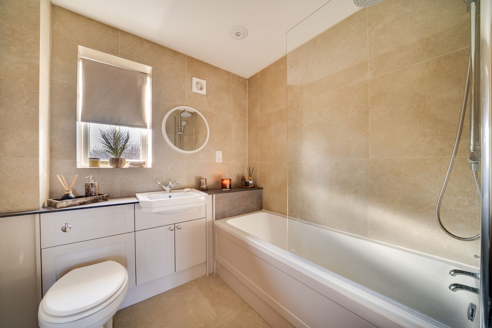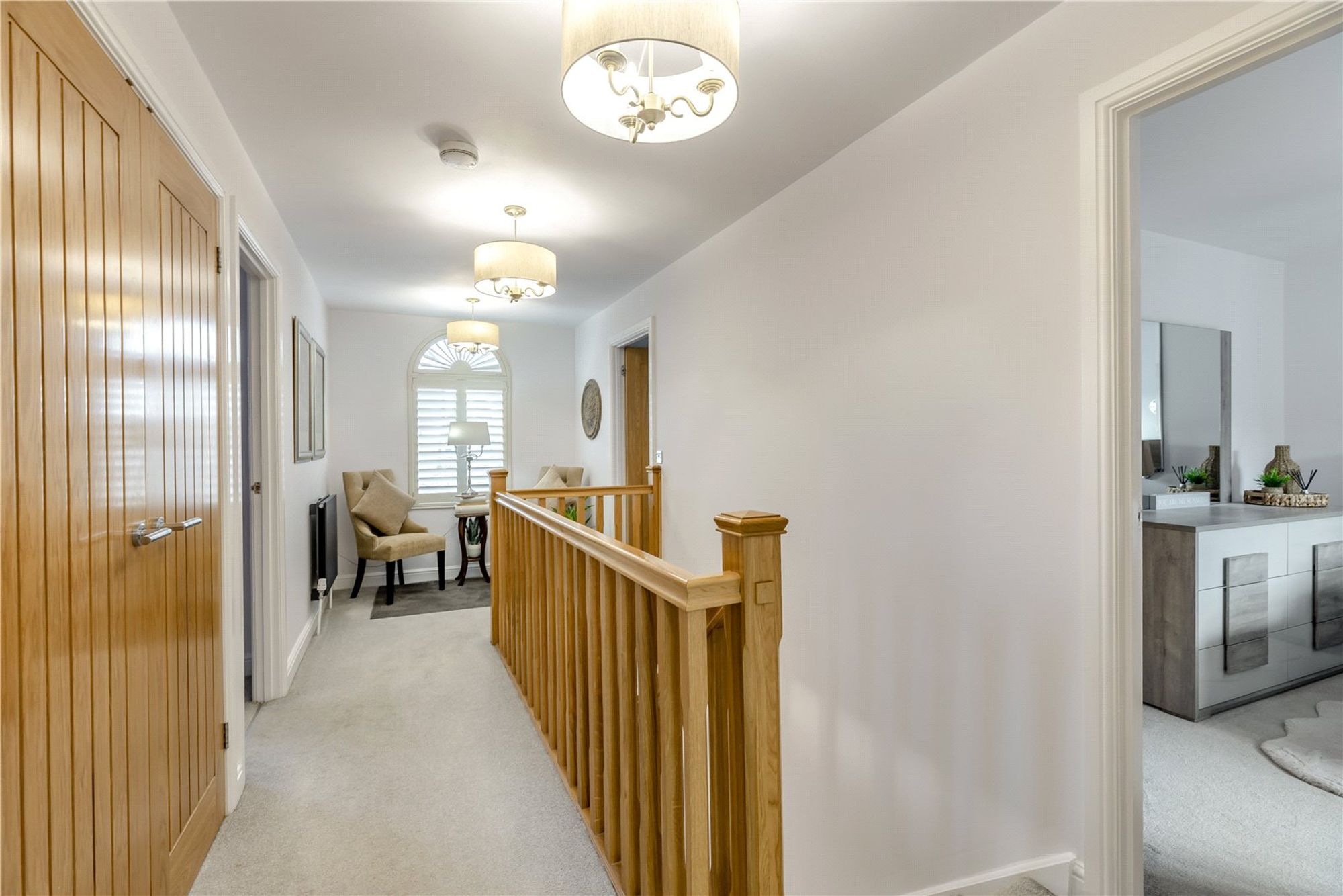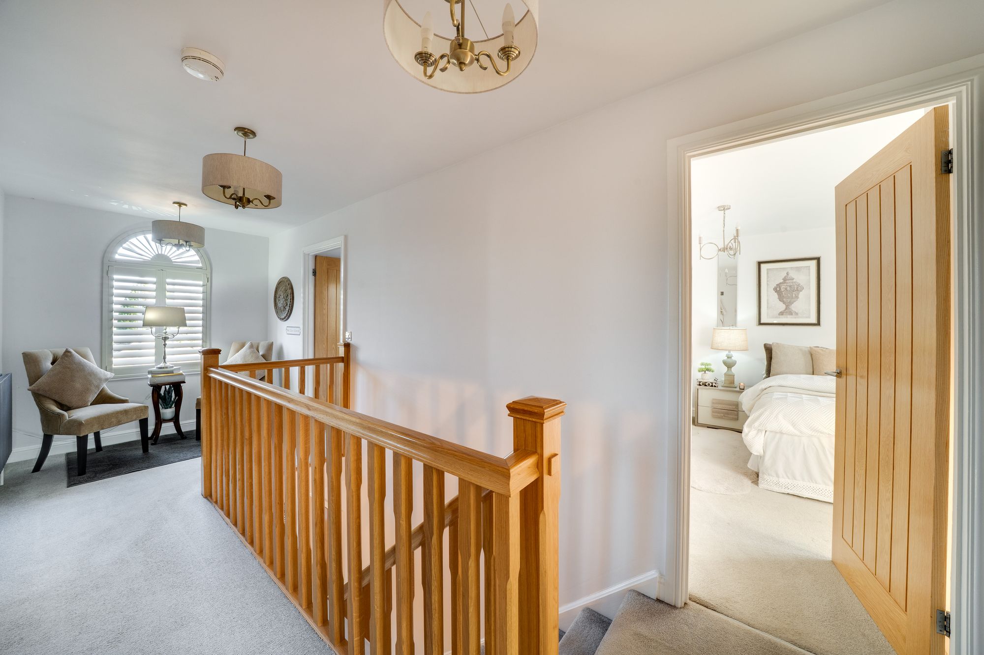 On the first floor, a delightful gallery landing with feature window and built in storage, leads to four well proportioned bedrooms and the newly refitted family bathroom offering contemporary tiling and a modern white suite with vanity storage and shower over bath. The master bedroom affords a built in double wardrobe and luxury en-suite shower room/ WC.