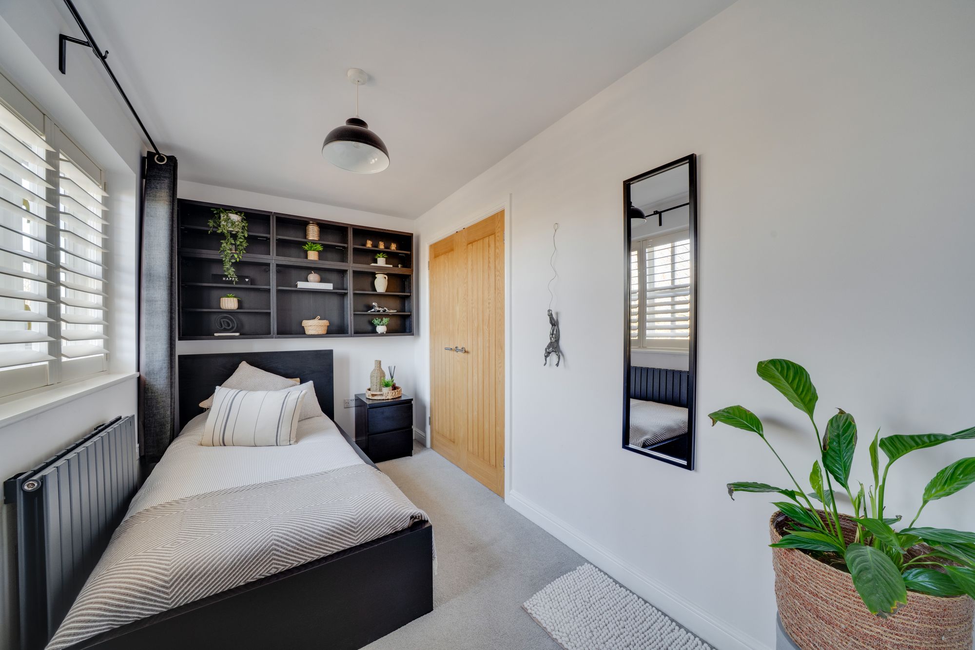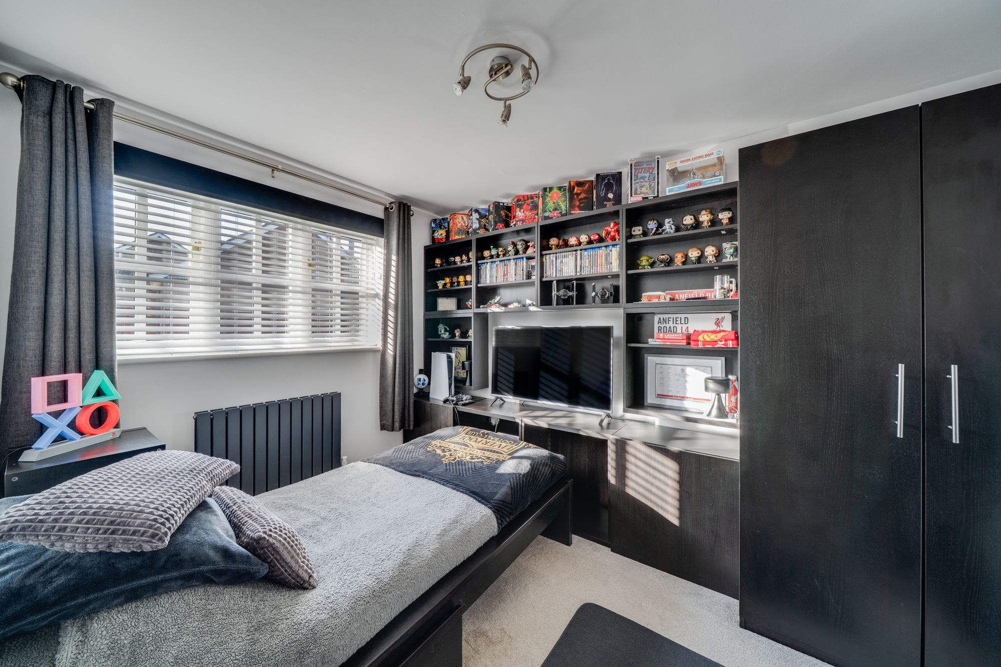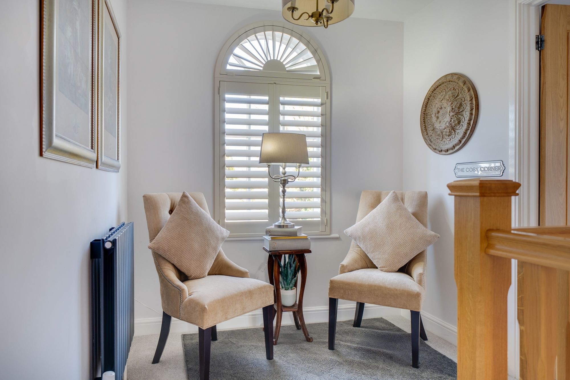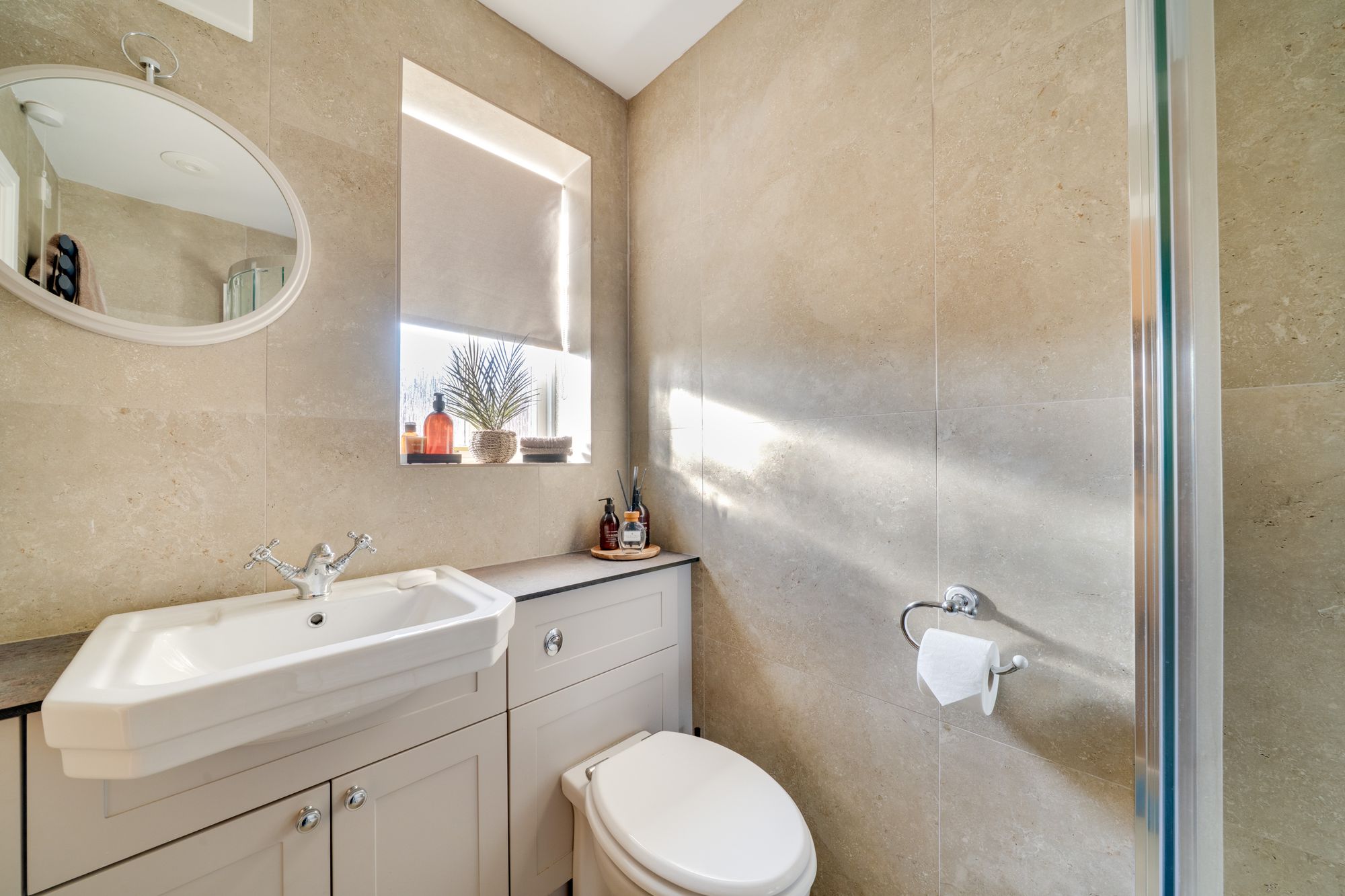 On the first floor, a delightful gallery landing with feature window and built in storage, leads to four well proportioned bedrooms and the newly refitted family bathroom offering contemporary tiling and a modern white suite with vanity storage and shower over bath. The master bedroom affords a built in double wardrobe and luxury en-suite shower room/ WC.