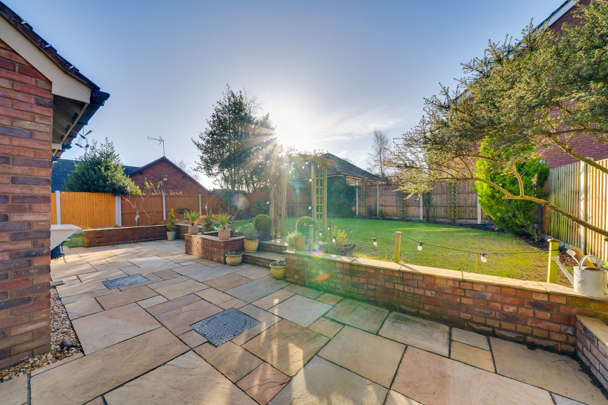 The property sits within a good size plot with a large gated driveway leading to the entrance door and detached double garage and electrical vehicle charging point.