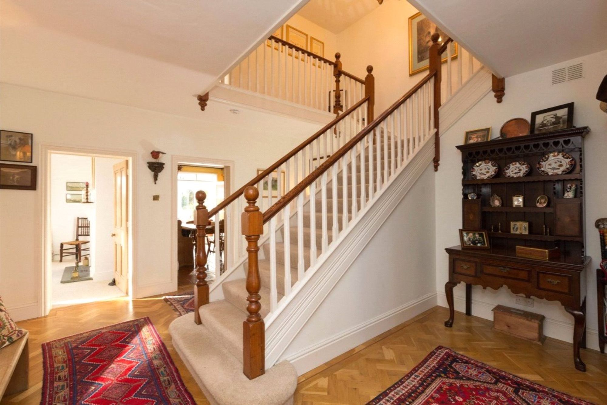 At the centre of the property, the fabulous staircase leads to a galleried landing with a large circular lightwell which allows natural light to flood into this imposing space. The three double guest bedrooms, a single bedroom, with views over the gardens and woodland beyond, family shower room and the master bedroom suite are all accessed from the landing.