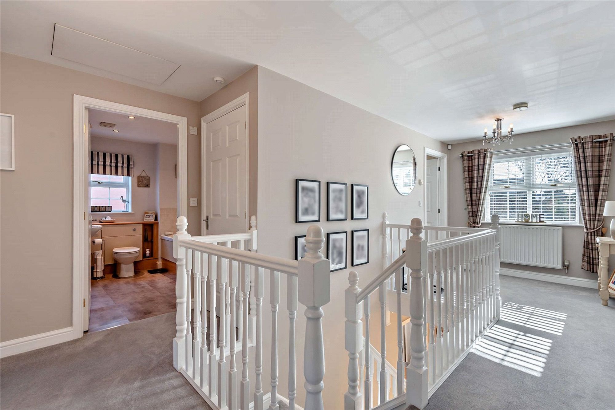 Upstairs, the principal bedroom boasts a modern en-suite shower room. Four further bedrooms provide flexible accommodation for family, each served by a stylish family bathroom with modern fixtures and fittings. The fifth bedroom is currently being utilised as an ideal dressing room.