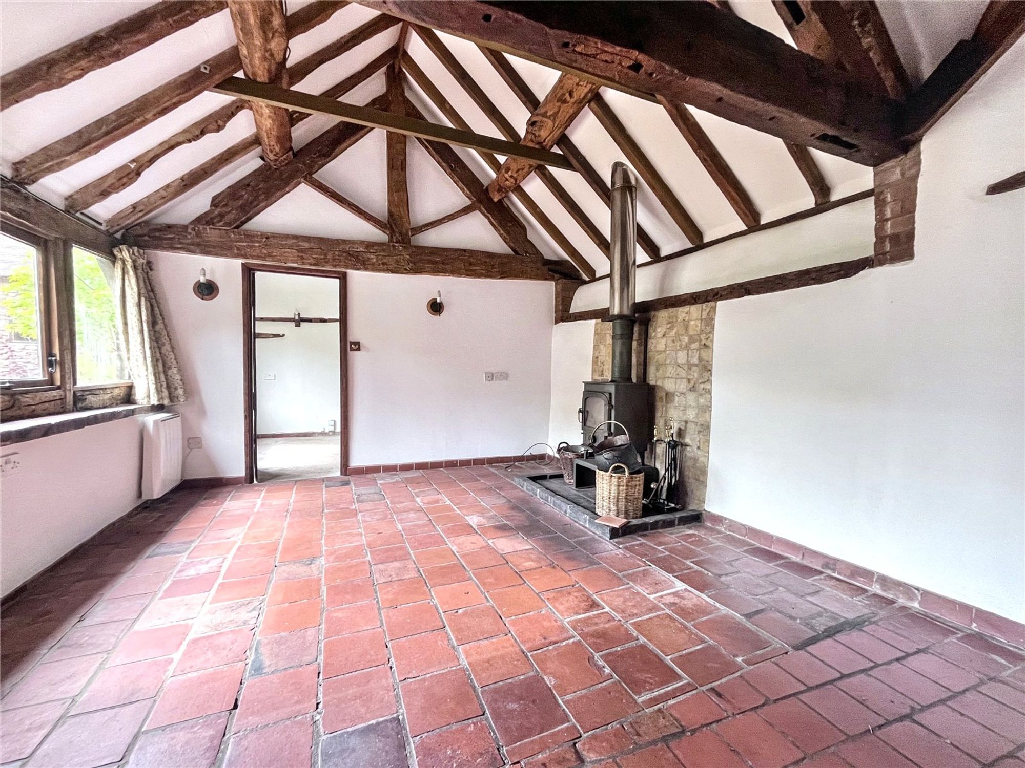 The accommodation is approached by an entrance hall giving access to the sitting room featuring a Clearview woodburner, exposed timbers and old weathered oak doors.