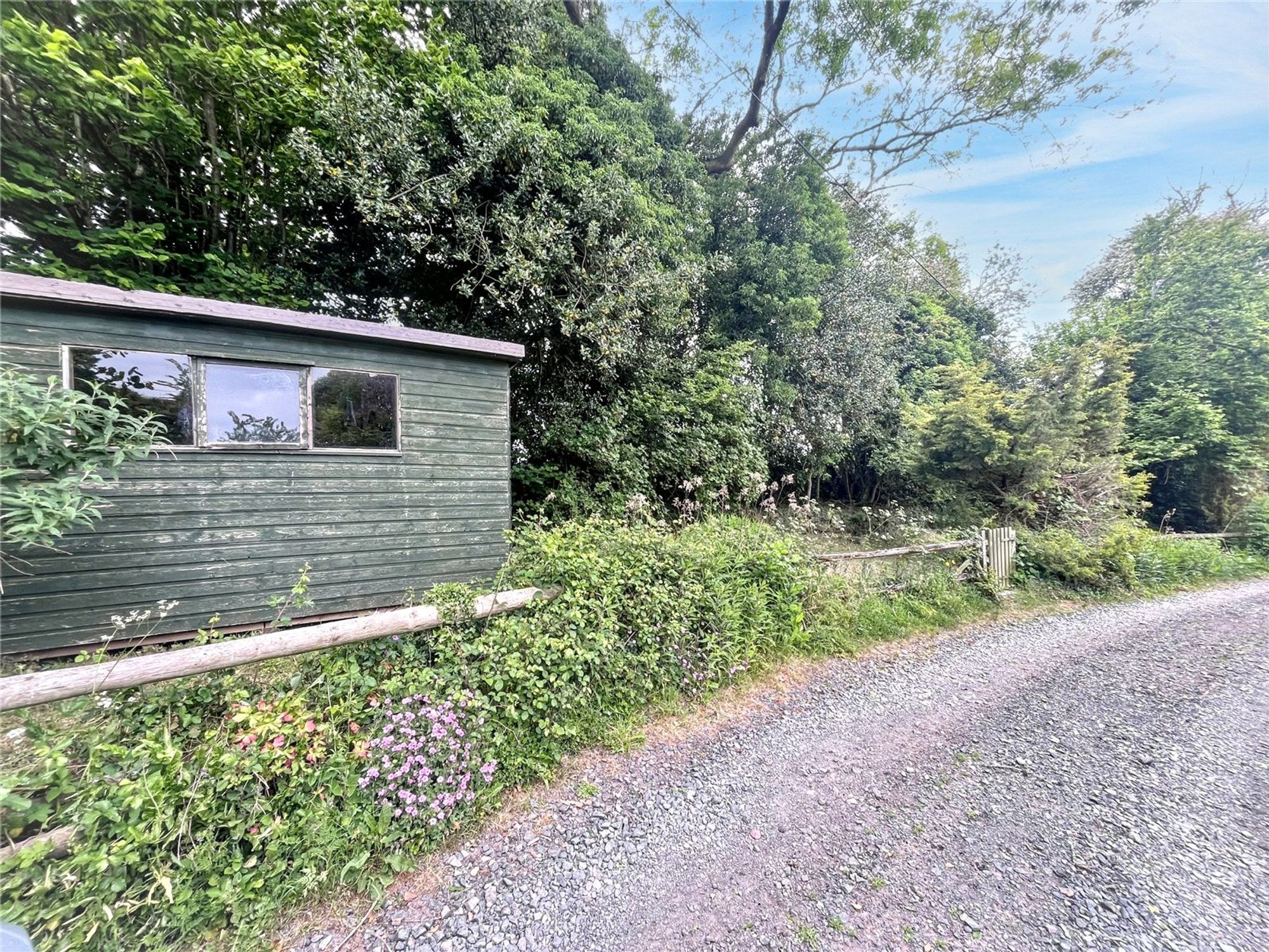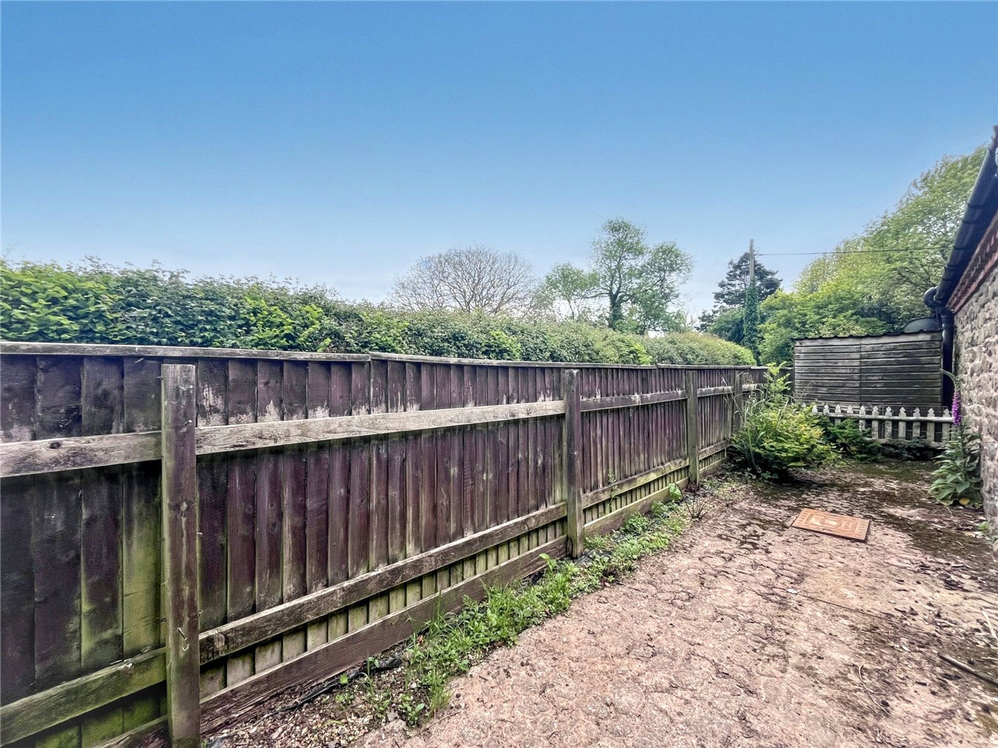 Outside flanking the access driveway is a long garden which is fenced, laid to lawn and has a timber garden shed.