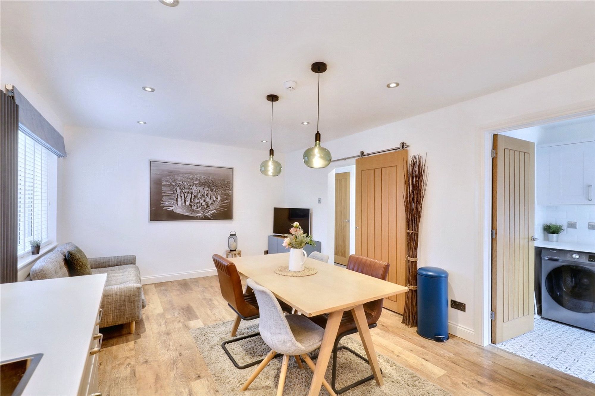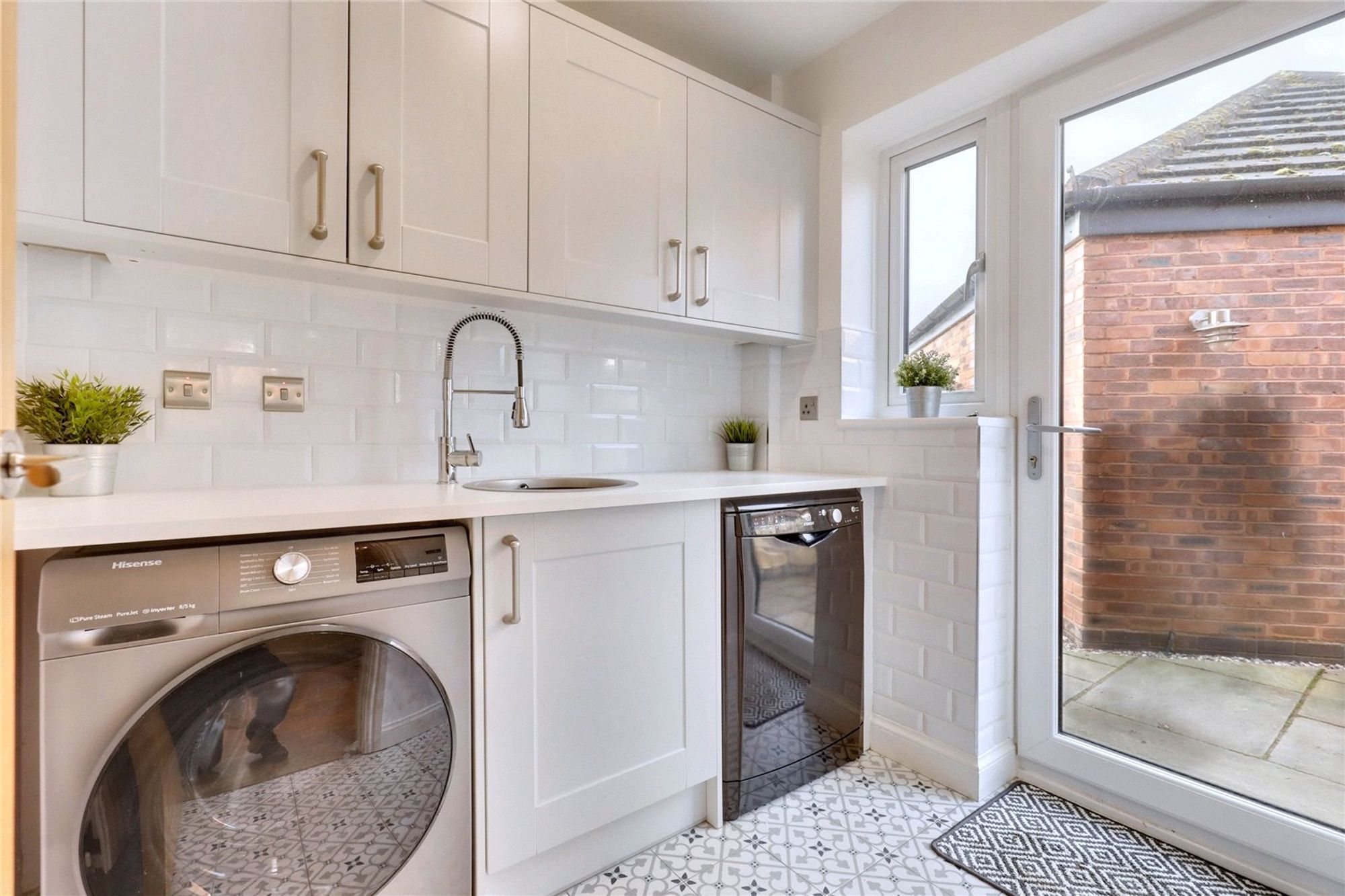 A contemporary fitted kitchen/diner looks out onto the garden and offers an impressive range of wall units and base units with matching worktops, inset sink unit and integrated appliances, oven, hob and extractor. In addition, the kitchen benefits from a tiled floor, remote controlled ceiling spotlights and a fitted utility just off with door giving side access to the property.