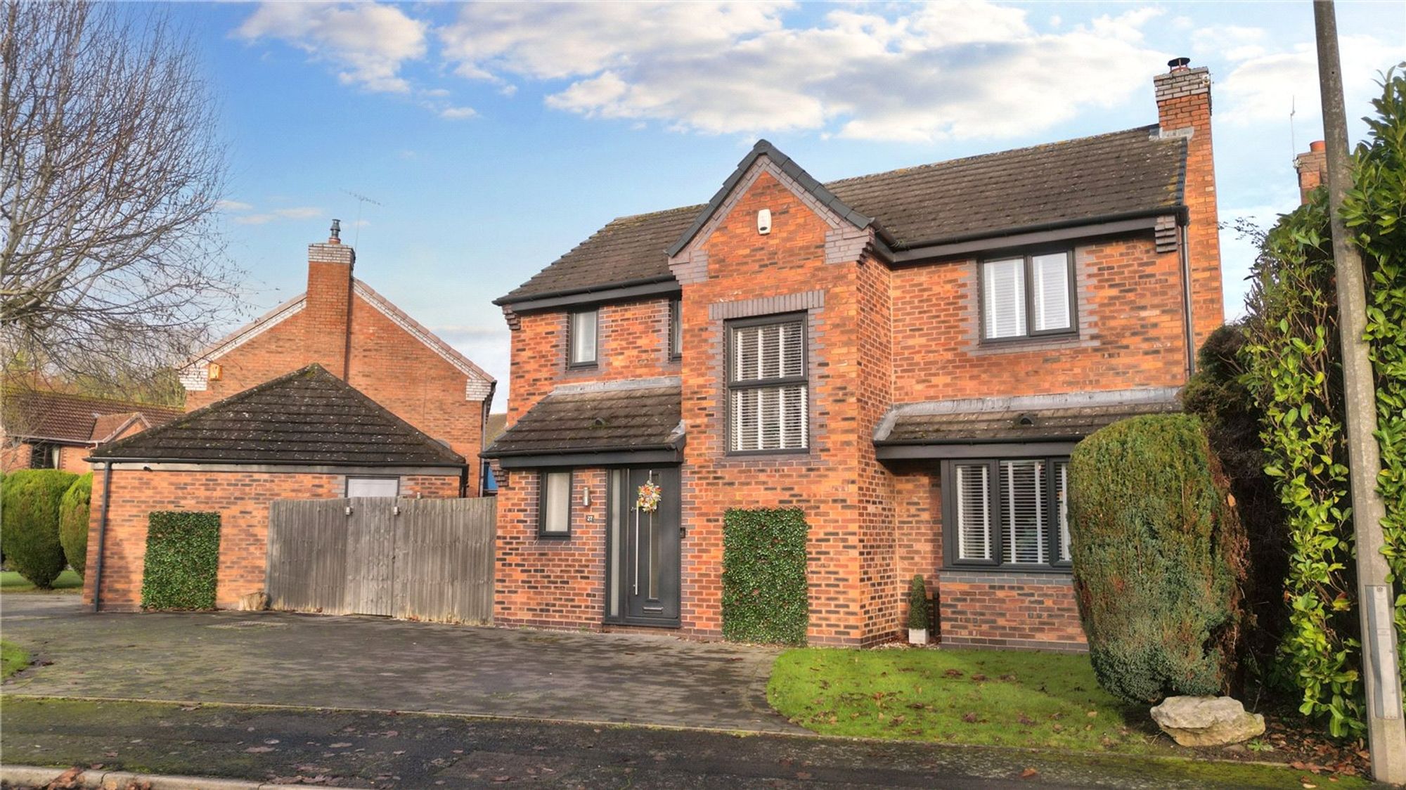 To the front of the property there is a lawn front garden and large a tarmac driveway extending to the side and providing ample off road parking leading to the double garage with twin electric doors. The rear garden is mainly laid to lawn with mature trees and a large paved patio which extends to the side creating a private al-fresco dining area.