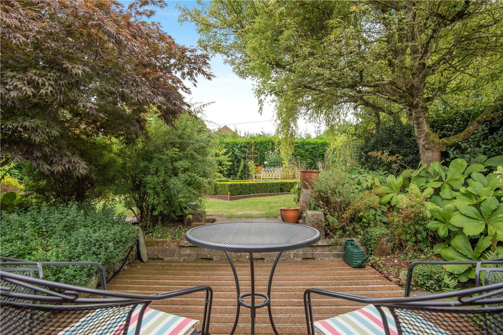 The gardens are a true highlight—beautifully maintained and extending to the rear and side of the property, offering a variety of inviting spaces for outdoor living. Gravelled areas provide low maintenance charm, while steps lead to a formal lawn framed by mature borders, box hedging, and seating areas. The garden features an array of established trees, including a Turkish Hawthorn and Maple, along with a cottage style garden and a beech hedge to the side. A decked seating area enjoys a sunny south west aspect and provides access to the room above the garage.