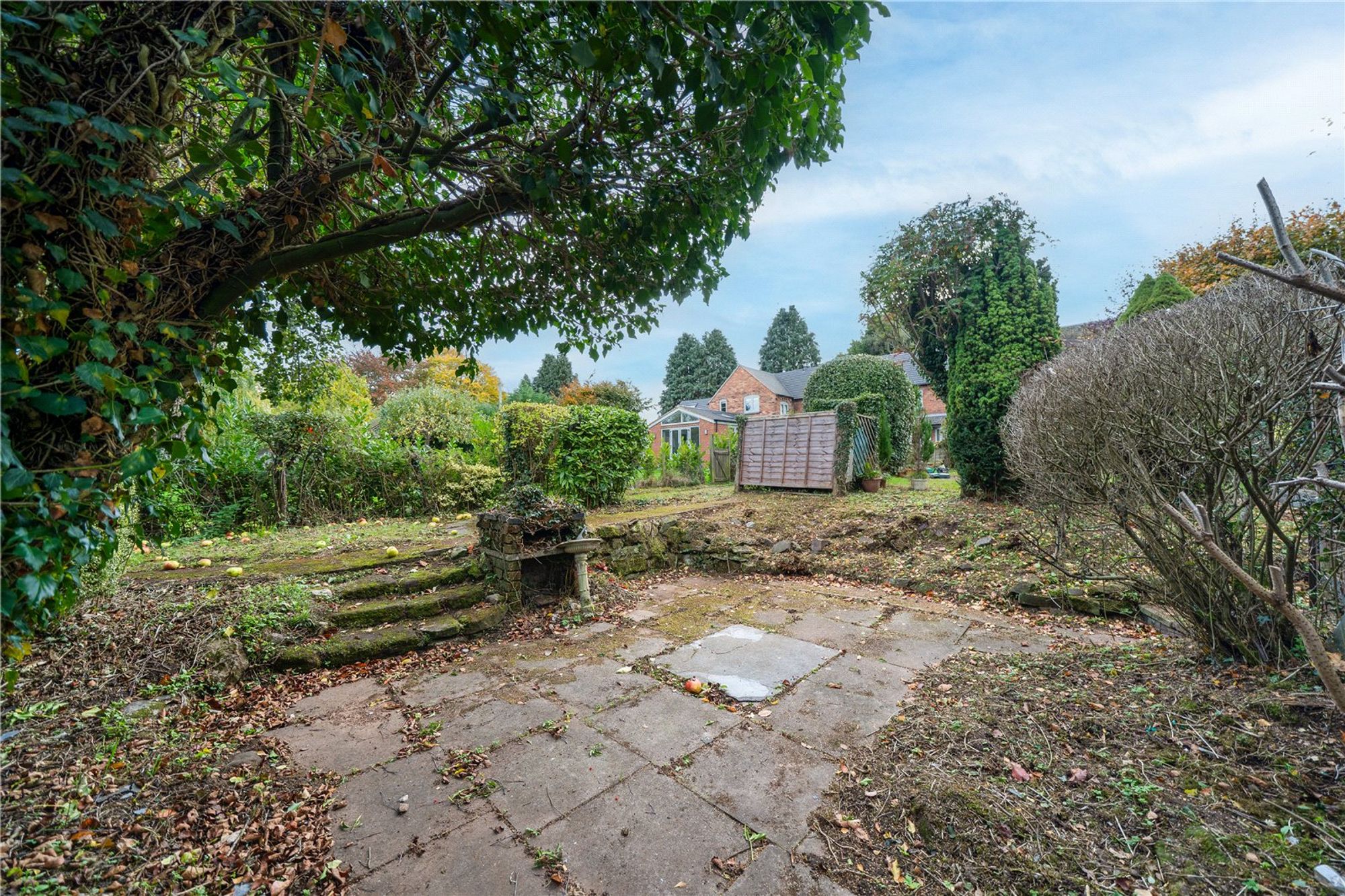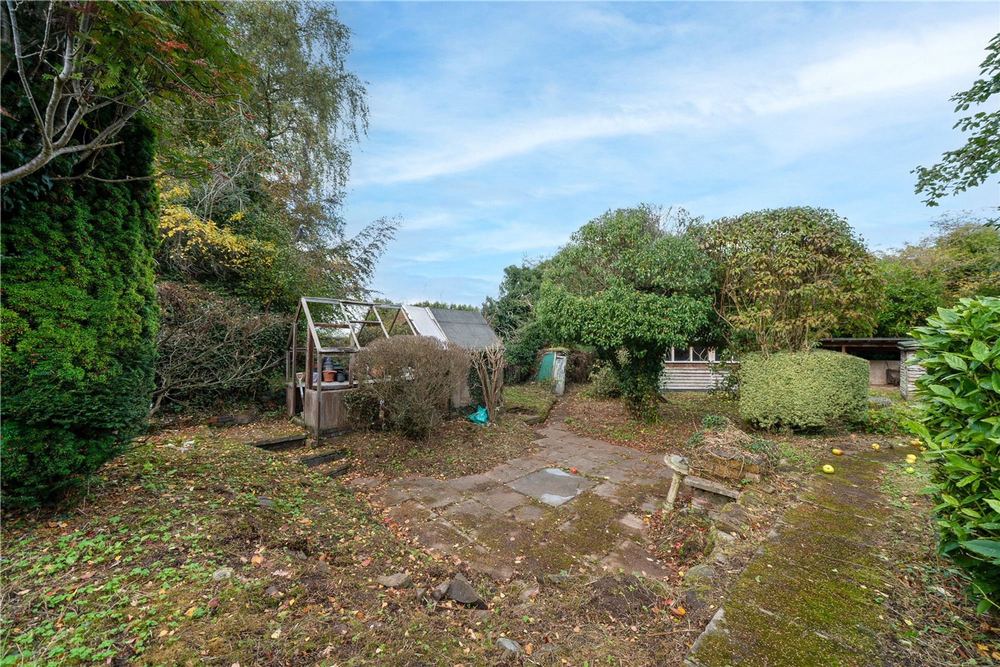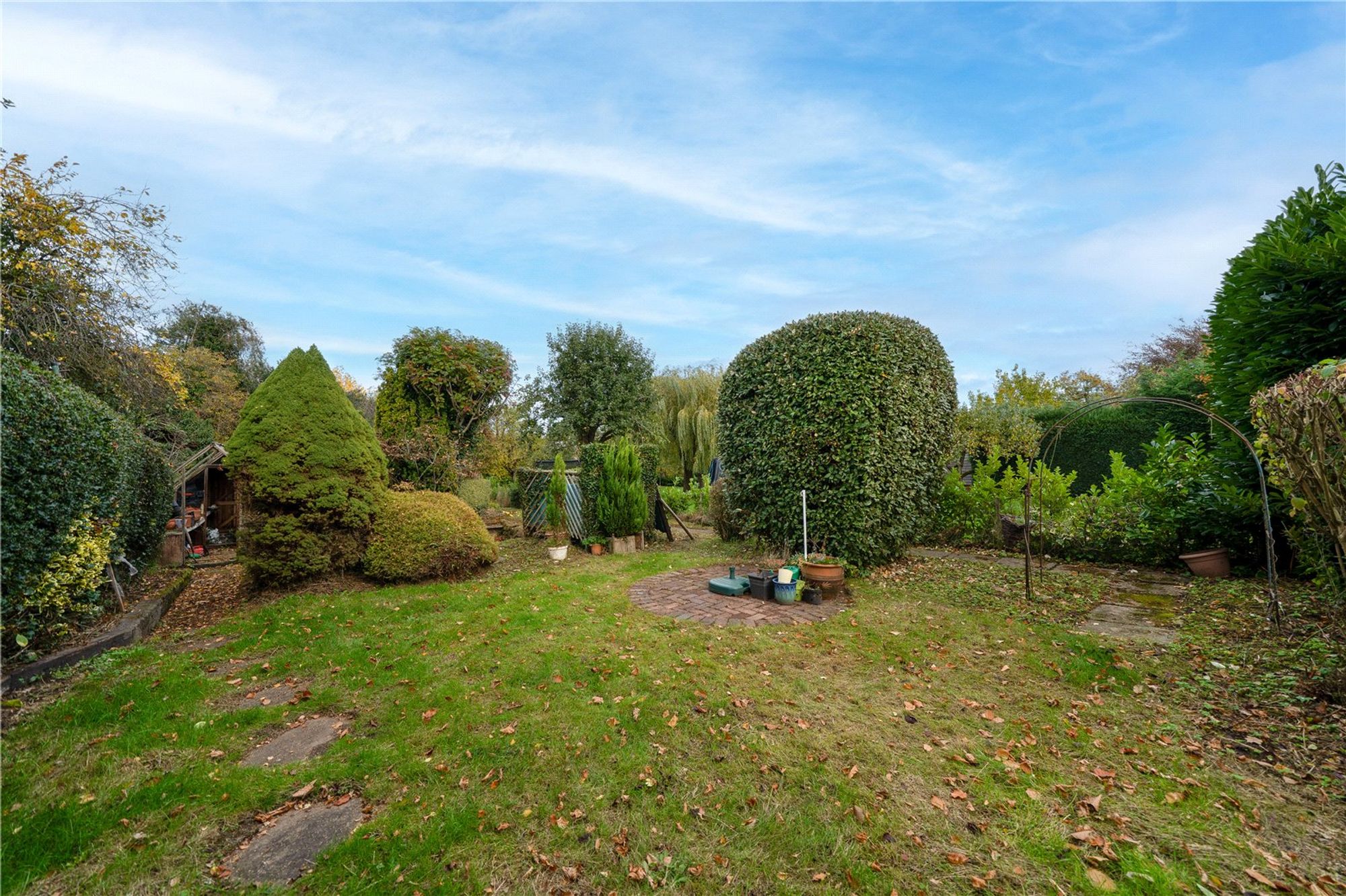 The rear garden is a particular feature of Nook Cottage — a mature, generous space, mainly laid to lawn with paved patio areas. There is also a large timber-built shed and storage areas.
