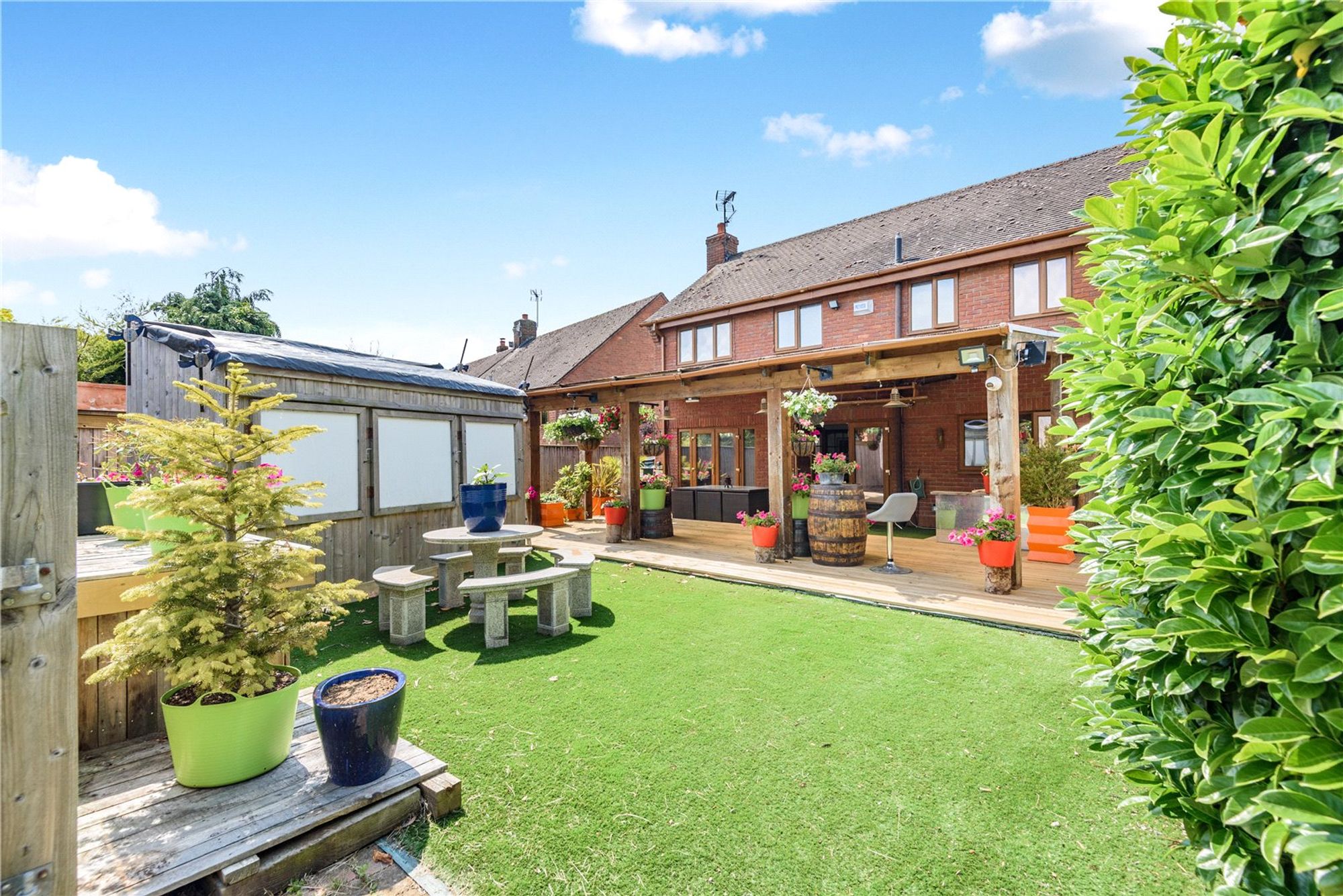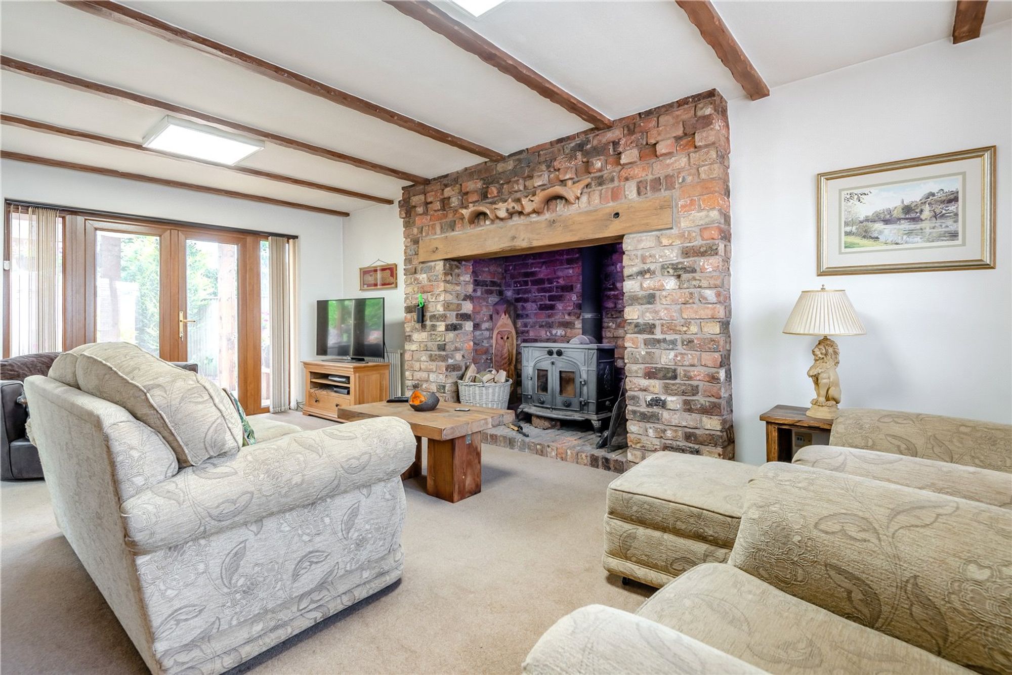 Located in the picturesque village of Chelmarsh, this beautifully presented detached residence occupies a substantial plot with an expansive rear garden—offering a rare blend of countryside charm and practical modern living.The property is ideally positioned within easy reach of nearby market towns, local pubs, countryside walks, and transport links to Bridgnorth and beyond. Chelmarsh itself is well known for its tranquil surroundings, vibrant community, and proximity to the Severn Valley countryside, with Chelmarsh Reservoir and nature trails just moments away.The home is approached via a private driveway providing ample off-road parking and access to a detached double garage. A covered entrance porch opens into a spacious reception hallway with guest cloakroom and under-stairs storage.To the front of the property, the main sitting room is arranged in an open-plan format with the dining area and features an attractive Inglenook-style fireplace. French doors lead seamlessly into the rear dining kitchen—an ideal space for entertaining, with views across the garden and access to a separate utility room.The dining kitchen is fitted with a range of wall and base units, extensive work surfaces, and space for freestanding appliances. French doors and rear windows flood the space with natural light and offer direct access to the garden, making it ideal for family life and al fresco dining.A feature galleried landing on the first floor gives access to four well-proportioned bedrooms. The principal bedroom enjoys a walk-in wardrobe and a private en-suite shower room, while the remaining three bedrooms are served by a modern family bathroom.Externally, the rear garden is a true highlight—extending a considerable distance from the house and offering exceptional outdoor space. Laid mainly to lawn with mature planting, established trees, and several outbuildings, the garden also features a large open section to the rear that could be used as a paddock, vegetable plot, or leisure area.A rare opportunity to acquire a substantial family home in a sought-after Shropshire village, offering both space and setting in abundance.