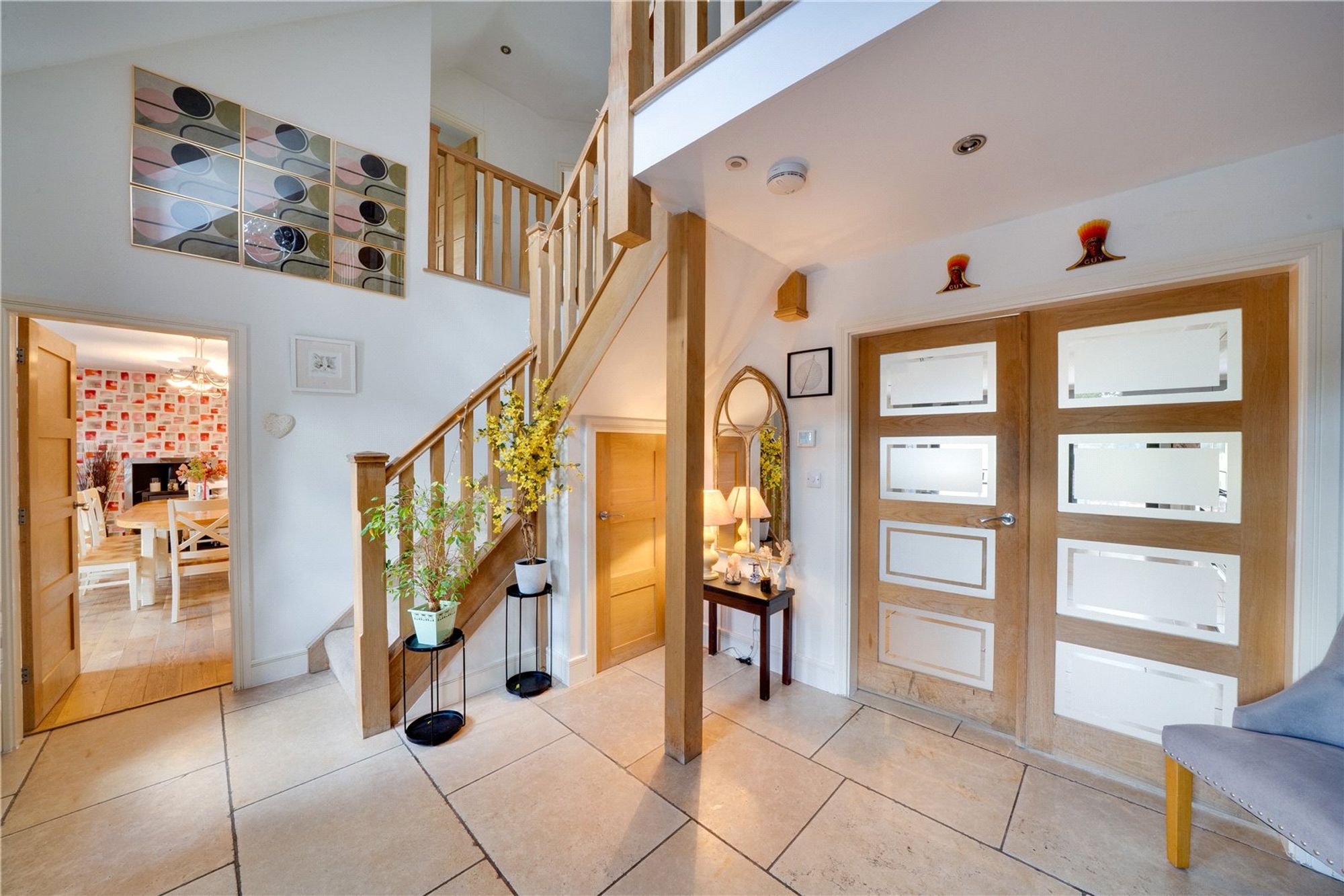 Accommodation comprises a large, welcoming entrance hall with high vaulted ceilings and staircase to the first floor with storage under.