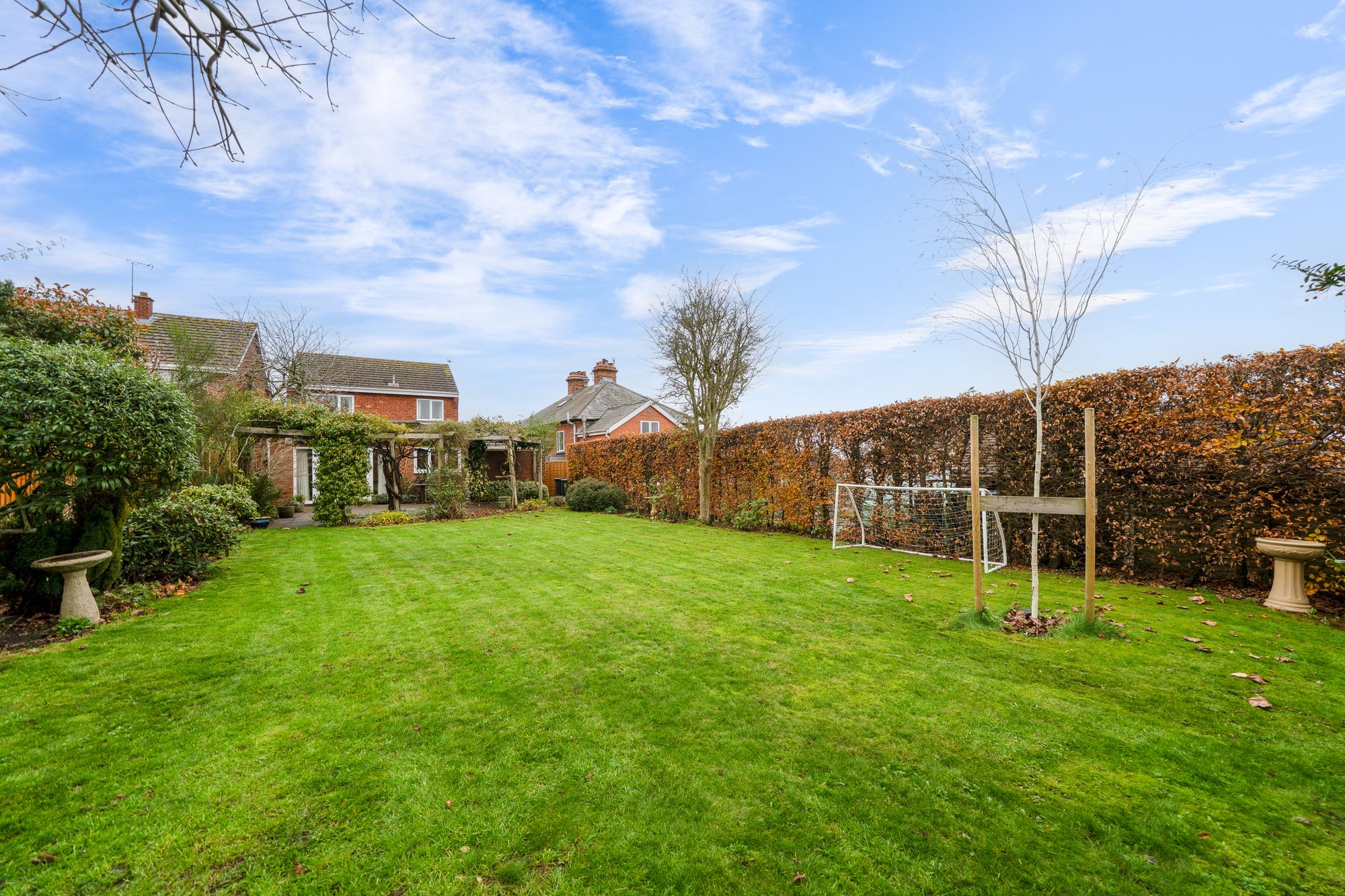 The enclosed rear garden is level and family friendly offering plenty of space for play and entertaining. A large paved patio steps out from the rear of the property with pergola and awning, ideal for outdoor dining. The patio continues to a level lawn with mature planted borders and timber garden shed.