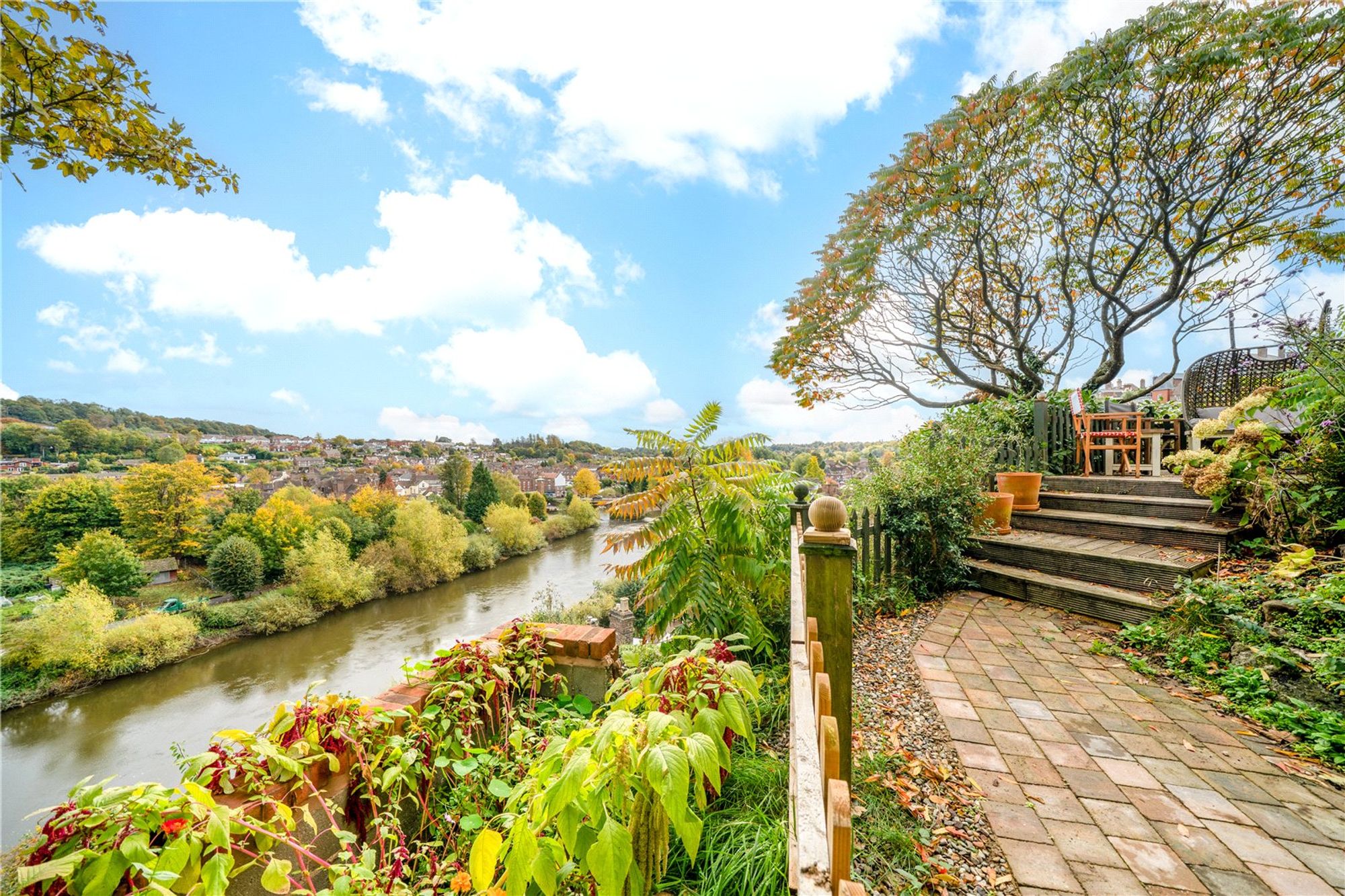 An exceptional Town House with gated parking, gardens and far reaching views along the Severn Valley.This three double bedroom, two bathroom property is superbly presented and greatly improved in recent years. The property offers an elevated position providing privacy above the famed Cartway that links High Town to the River. Set within this picturesque and historic location, The Cartway is perfectly located for the Riverside cafes, bars and river walks. This special location provides the freedom to participate on foot the towns excellent range of facilities.This carefully restored Grade II Listed period building dating from the 17th Century, offers a spacious layout with modern appointments whilst retaining an abundance of original character and charm.Approaching the property from the gated driveway, the house is accessed via welcoming yet practical boot room with storage cupboard.A stylishly refitted breakfast kitchen offers a range of fitted wall and base units with quartz worktops and integrated appliances. The kitchen is complete with an excellent pantry and store cupboard.With steps to the front door, the hallway has oak flooring, stairs rising to the first floor and a fitted guest cloaks/ WC. The delightful sitting room provides dual aspect windows and an attractive electric feature fire. On the first floor a spacious landing with views provides enough space for a study or seating area, having useful storage cupboard just off. The principal bedroom enjoys dual aspect windows, along with a range of built in wardrobes. The re-fitted bathroom has a white suite to include a WC, bidet, sink with vanity cupboards below and a double ended bath along with wall mounted mirror cabinets. Leading off the bathroom is a useful laundry room having provision for a washing machine and also houses the boiler and hot water tank. Stairs lead to the second floor landing having two further double bedrooms with exposed beams, views to the front and rear and a refitted en-suite shower room with walk-in shower, WC, wash hand basin and heated towel rail.Externally, gates lead onto the private drive that provides ample parking for several vehicles. The mature gardens include exposed sandstone and have been landscaped to provide numerous sitting and eating areas, with views across the River Severn with the two bridges viewed down stream. The garden is complete with plant and pathways with well stocked beds. Directions: -