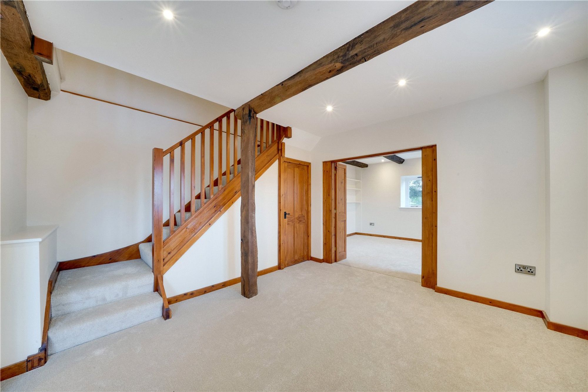 The Stable is an exceptional brand-new conversion of a charming Grade II listed barn, beautifully positioned on the edge of the sought-after Shropshire village of Alveley. Enjoying an idyllic outlook across neighbouring countryside and towards the village church, this characterful home blends timeless period features with high-quality modern finishes to create a truly special property.The ground floor offers a wonderfully light and spacious layout. A welcoming lounge features exposed timbers that set the tone for the character throughout. This flows through to a generous dining room, ideal for entertaining and everyday family living. The superbly appointed kitchen is fitted to a high standard with a full range of integrated appliances, ample storage and contemporary work surfaces. A useful guest WC completes the ground floor.Stairs rise to the first floor where there are two well-proportioned double bedrooms, both enjoying elevated views over the surroundings. The stylish family bathroom is finished with quality fittings, including a bathtub with shower over, contemporary wash basin mounted on useful cabinetry, and a skylight that fills the space with natural light. A separate storage room provides additional practicality.The Stable stands in a generous garden plot, benefiting from two paved patio areas—each with power supply—ideal for outdoor dining, entertaining, or simply relaxing in the peaceful rural setting. The large lawn is bordered by mature trees and fencing, offering a wonderful sense of privacy. To the front is a gravelled driveway providing ample parking.Located within the heart of Shropshire’s picturesque countryside, Alveley is a popular village with a friendly community, local pub, primary school, village hall and access to beautiful walking routes, including the nearby Severn Valley. The property’s position within the grounds of Church Farm offers a rare blend of rural tranquility and historic charm.