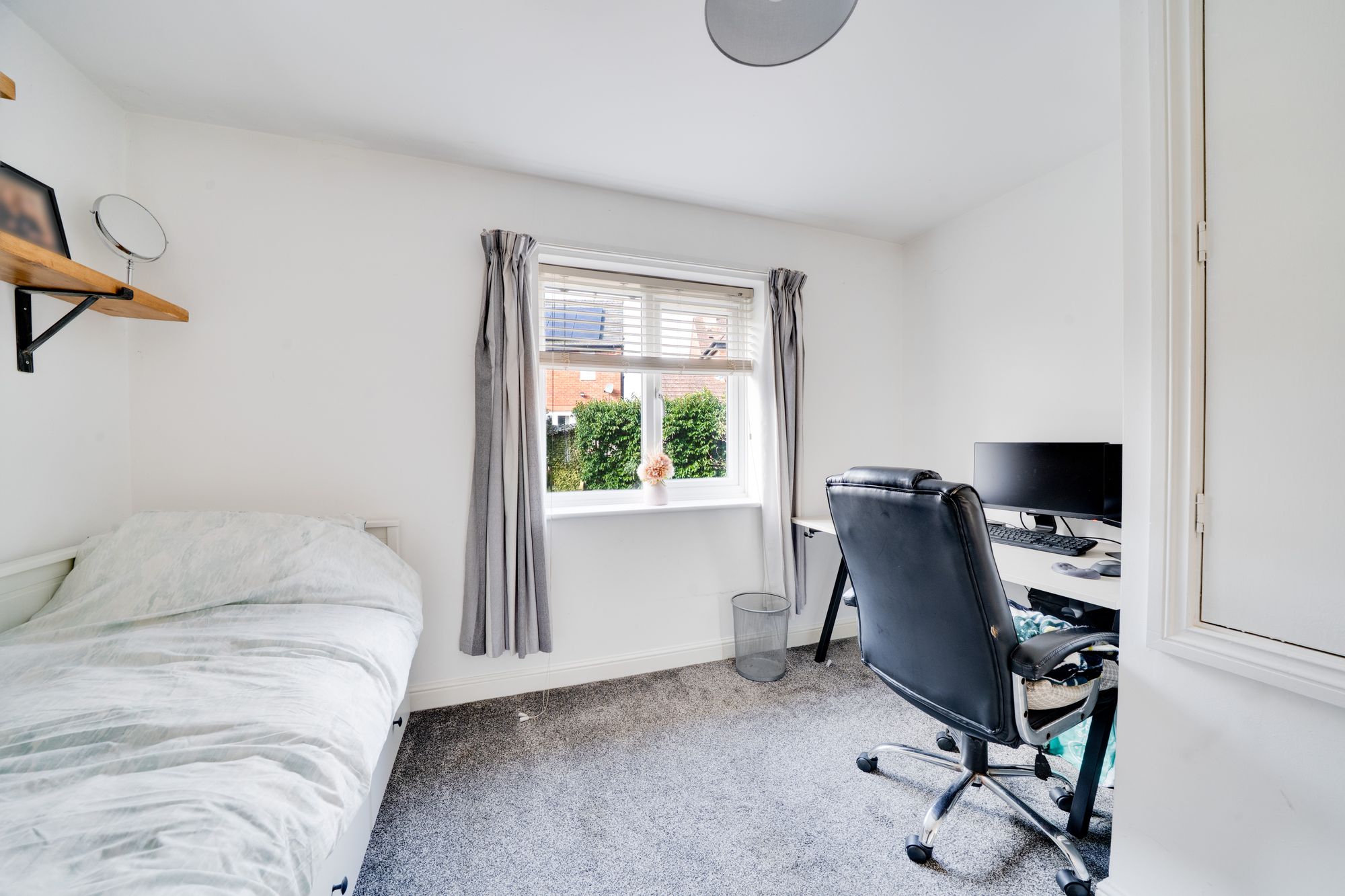 Stairs rise from the kitchen to the first floor landing, which leads to two well-proportioned double bedrooms. The principal bedroom is a comfortable double room with space for wardrobes and a pleasant outlook. The second bedroom is also a double room and would equally lend itself to use as a guest bedroom, study or home office if required.