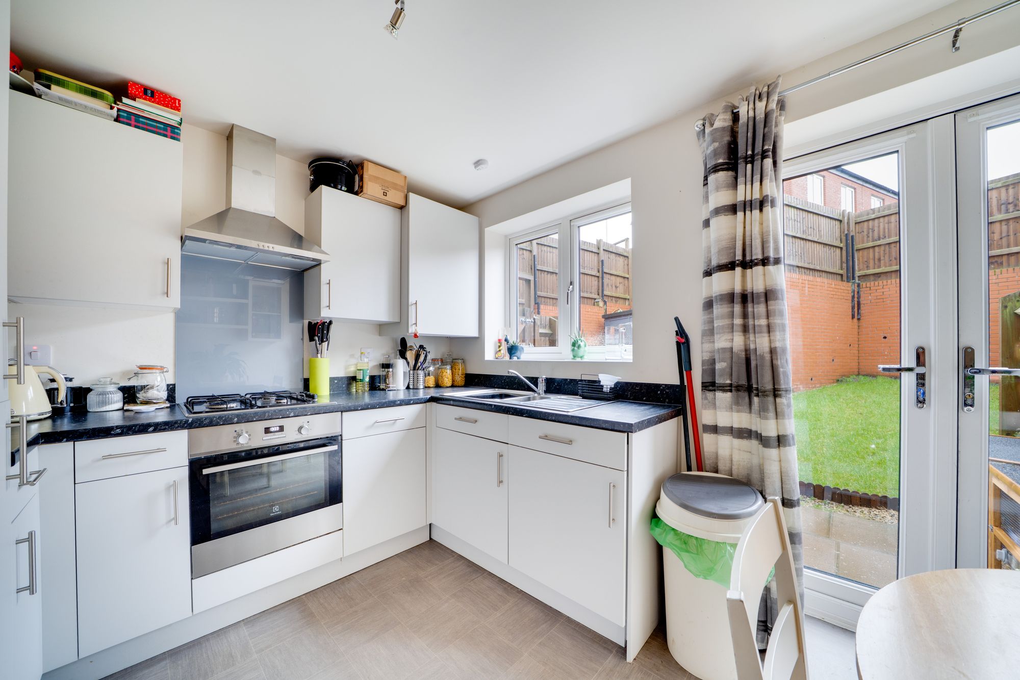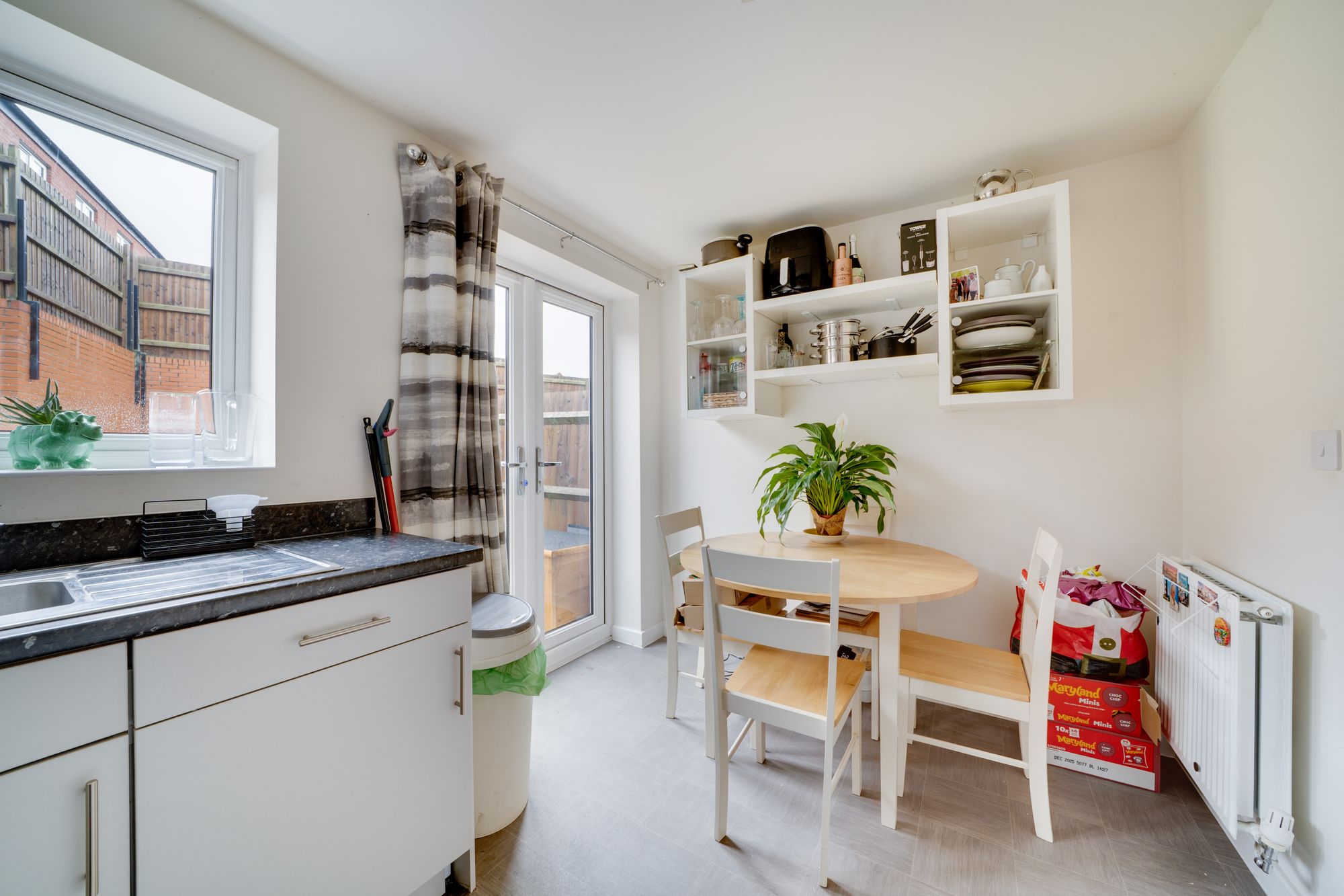 To the rear, the well-appointed kitchen/diner truly forms the heart of the home. This bright and sociable space offers extensive worktop and storage options, along with plenty of room for a dining table, making it ideal for everyday family life as well as entertaining guests. Double doors open directly onto the rear garden, seamlessly blending indoor and outdoor living during the warmer months. A convenient ground floor WC and practical storage area complete the downstairs accommodation, enhancing both comfort and functionality.