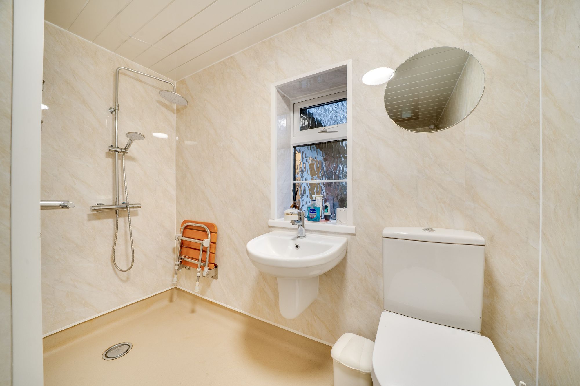 The kitchen is well proportioned and fitted with a range of units, complementary work surfaces and a freestanding dual fuel cooker and dishwasher. There is space for informal dining and pleasant views across the garden, making it a sociable and functional room. A ground floor wet room with hand basin and WC completes the downstairs accommodation.