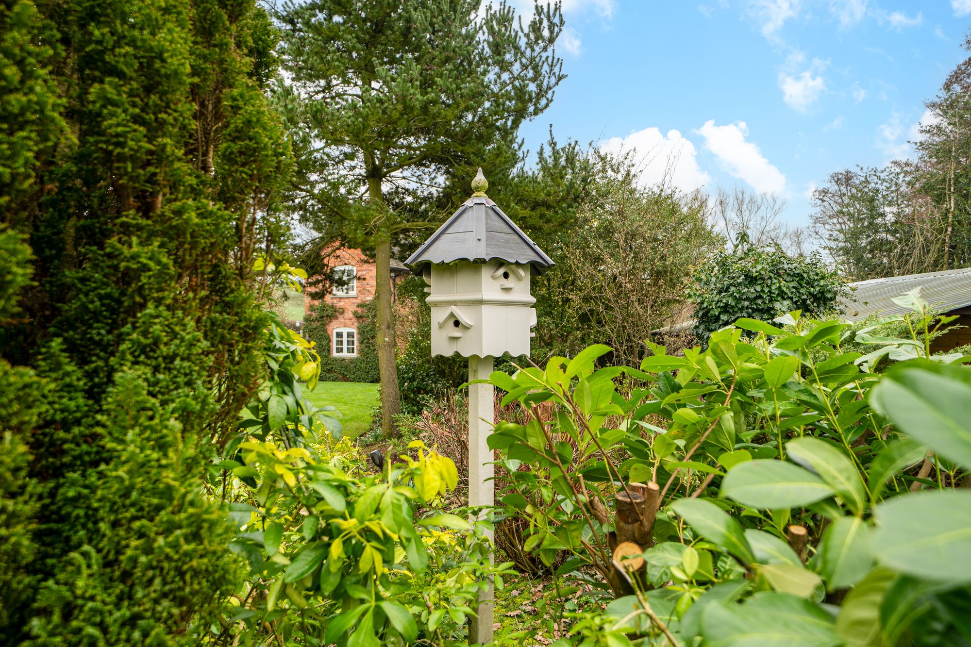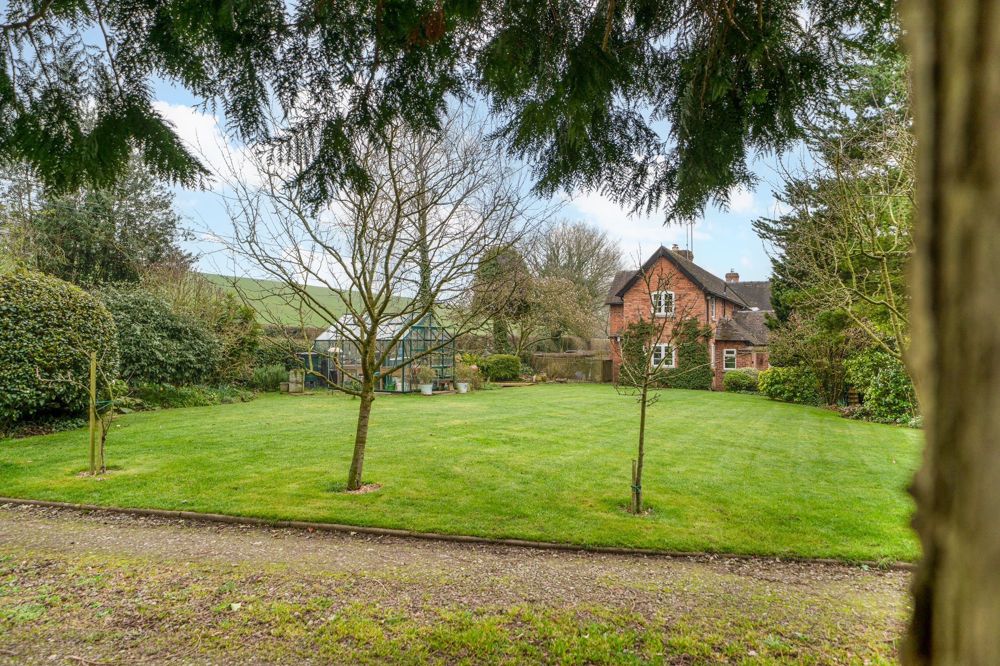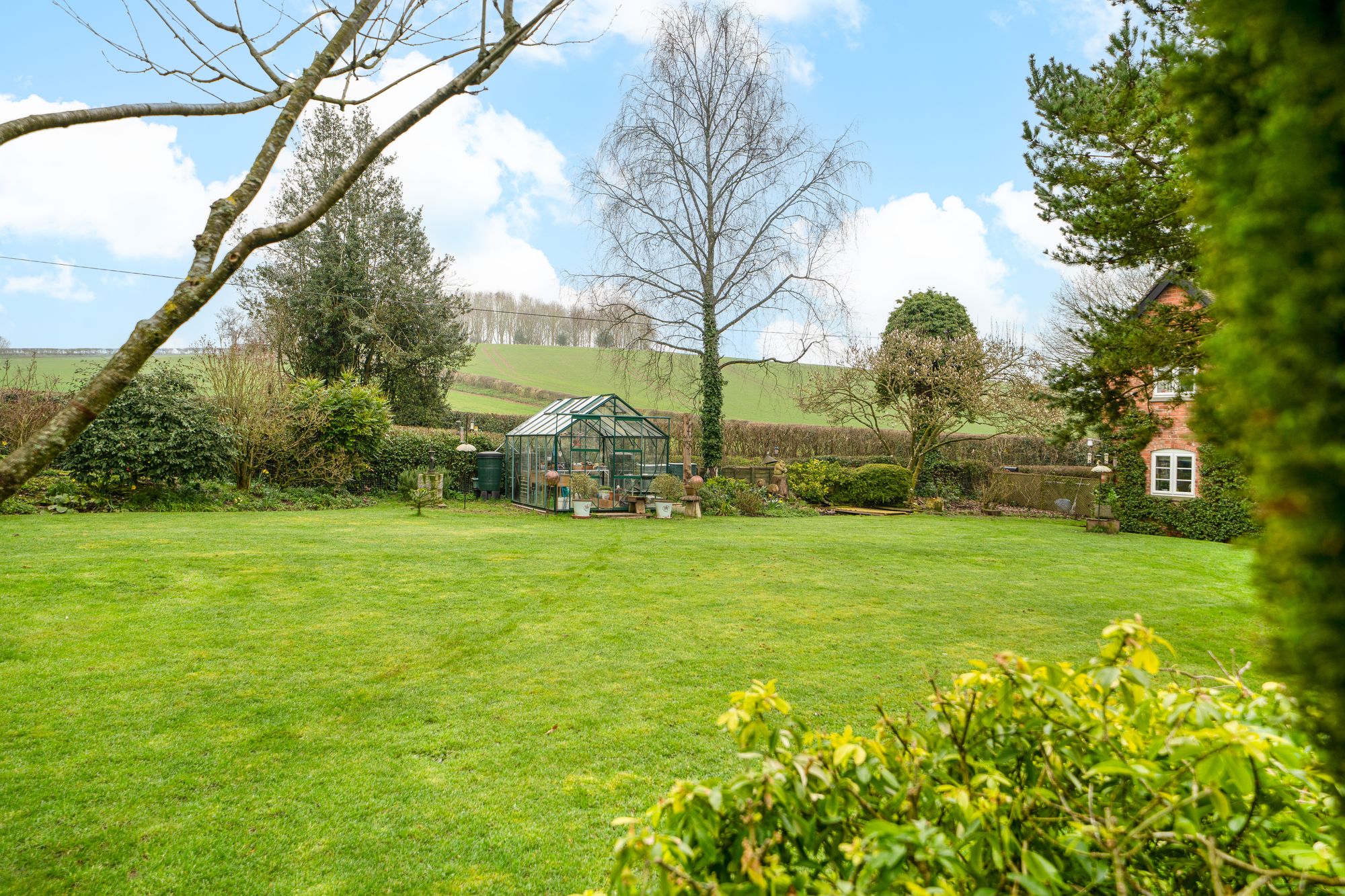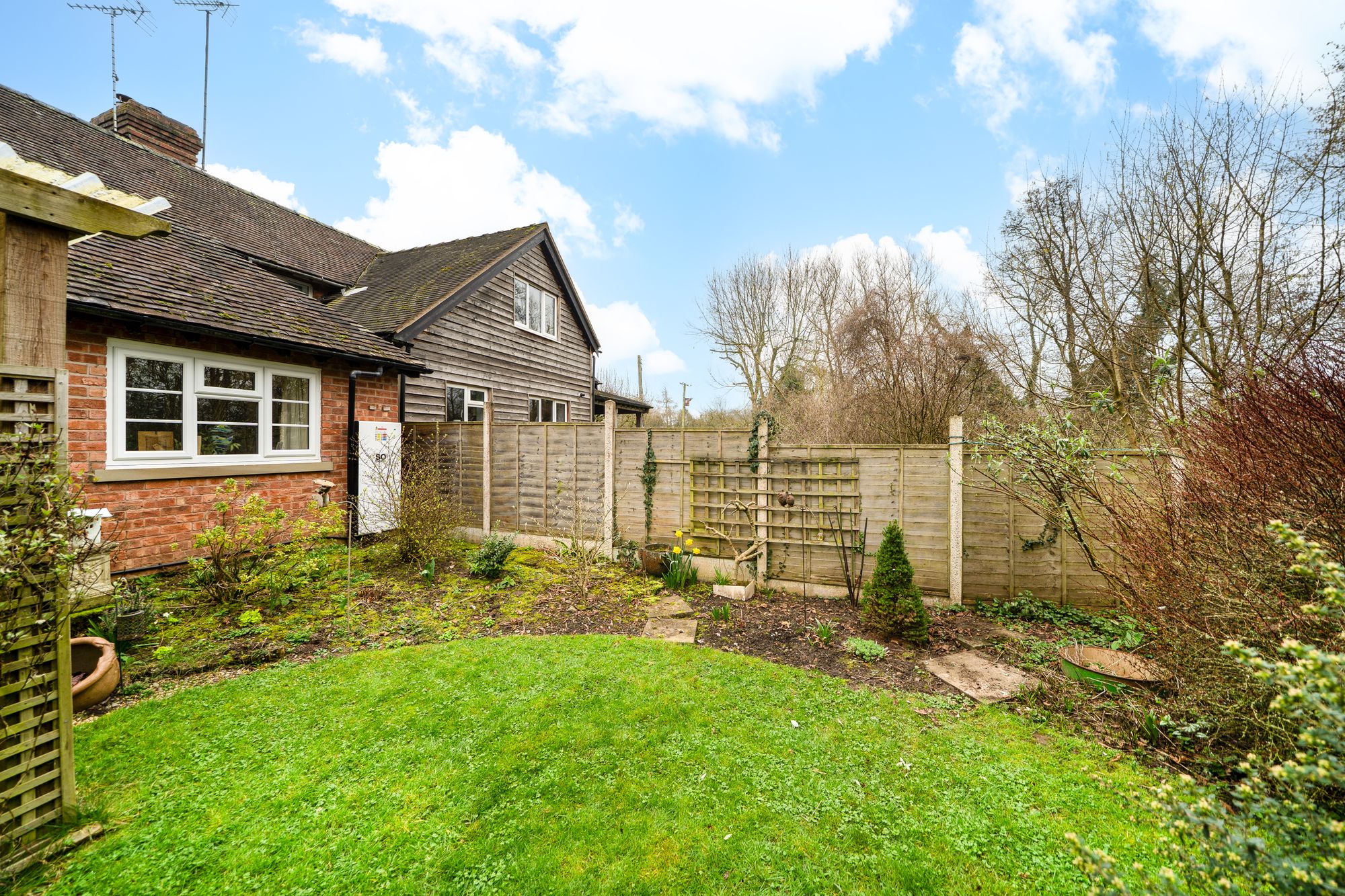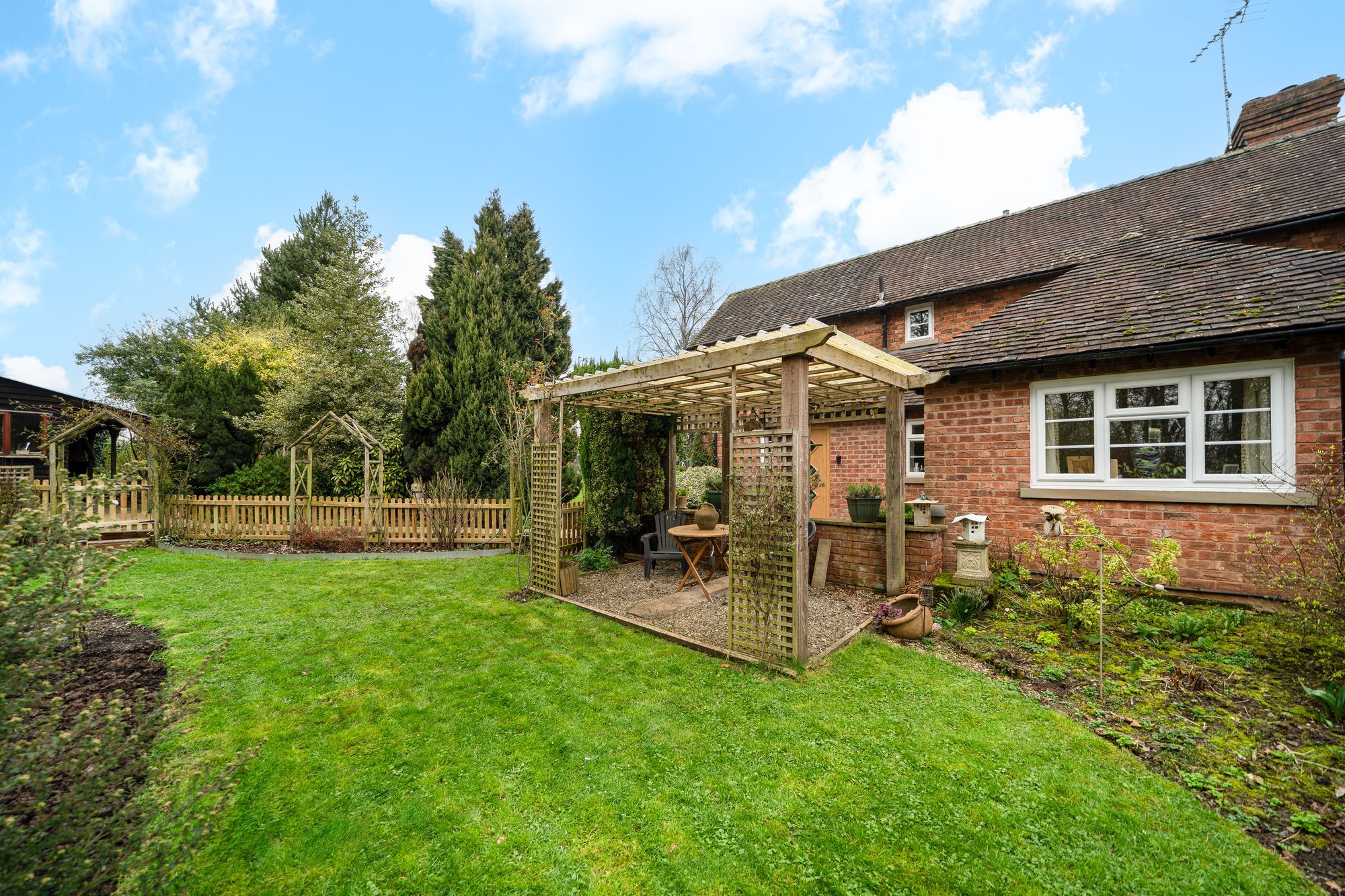 The gardens are a particular highlight of Jay Cottage. Predominantly laid to lawn, they are interspersed with well-stocked borders, mature shrubs and a variety of established trees, providing colour and interest throughout the year. A charming pond forms an attractive focal point, while a paved terrace offers an ideal space for outdoor dining and relaxation. Productive garden areas and a greenhouse will appeal to keen gardeners.