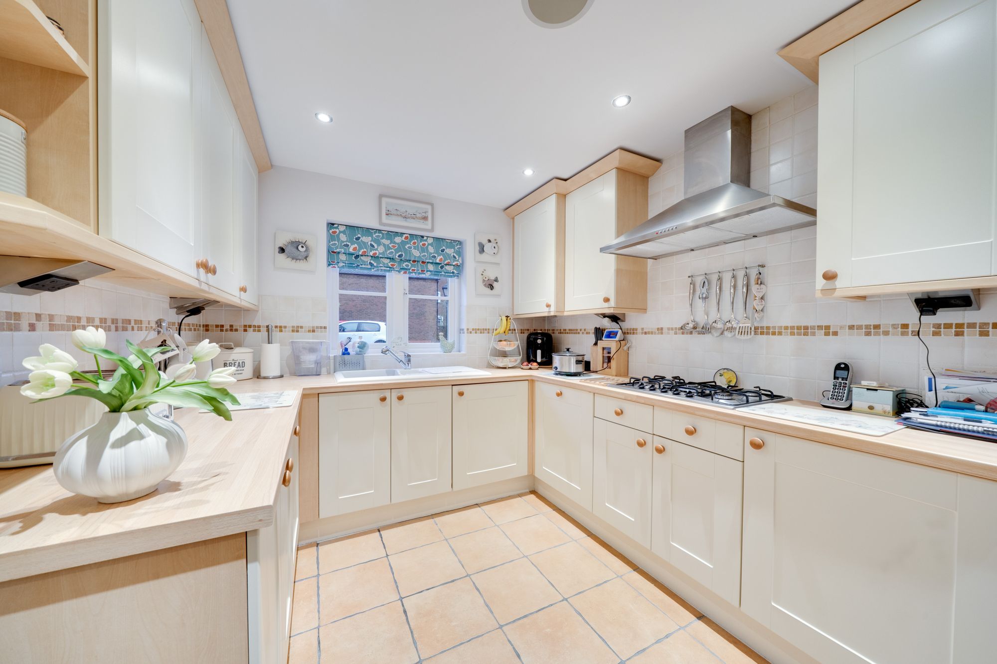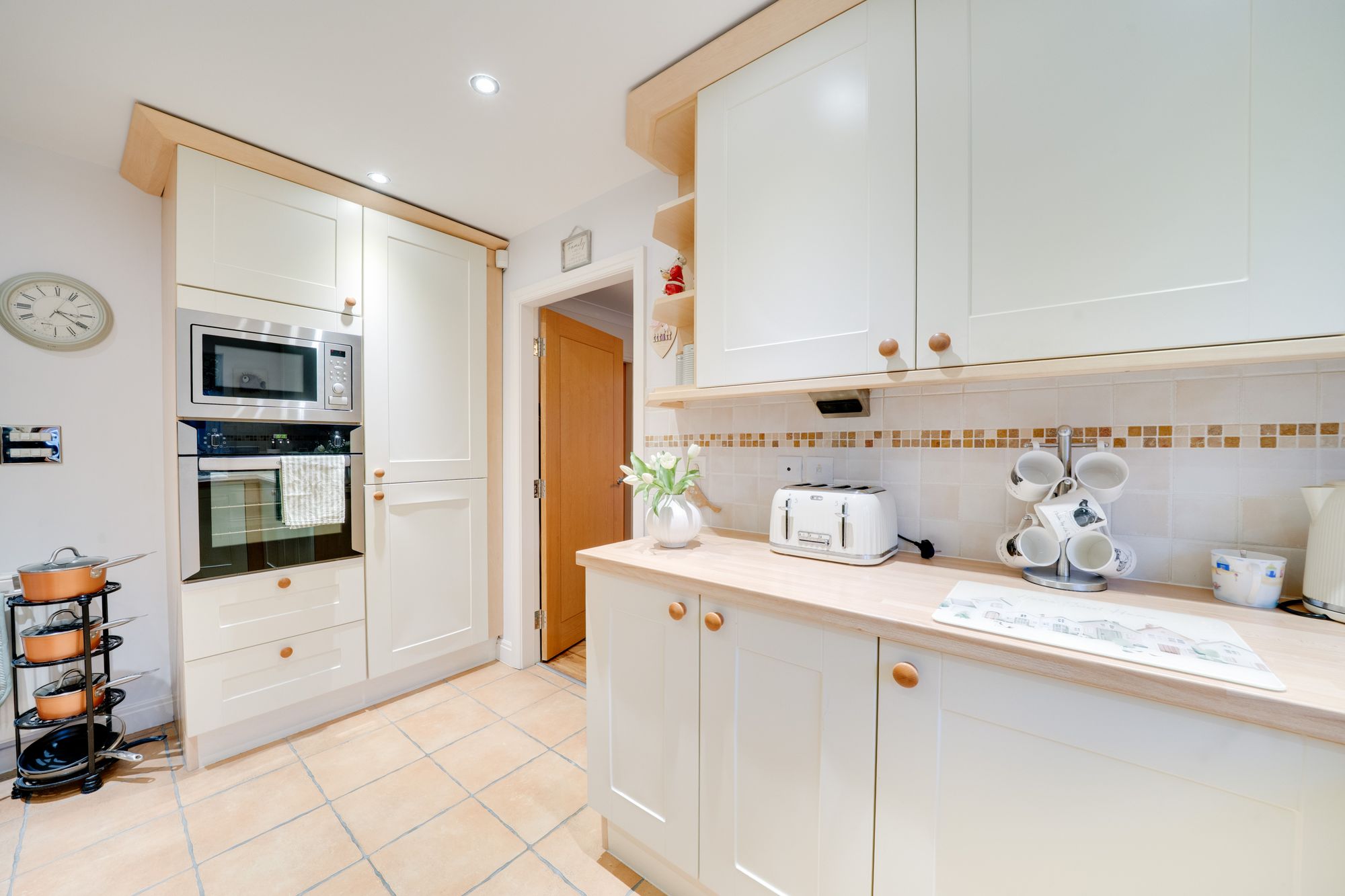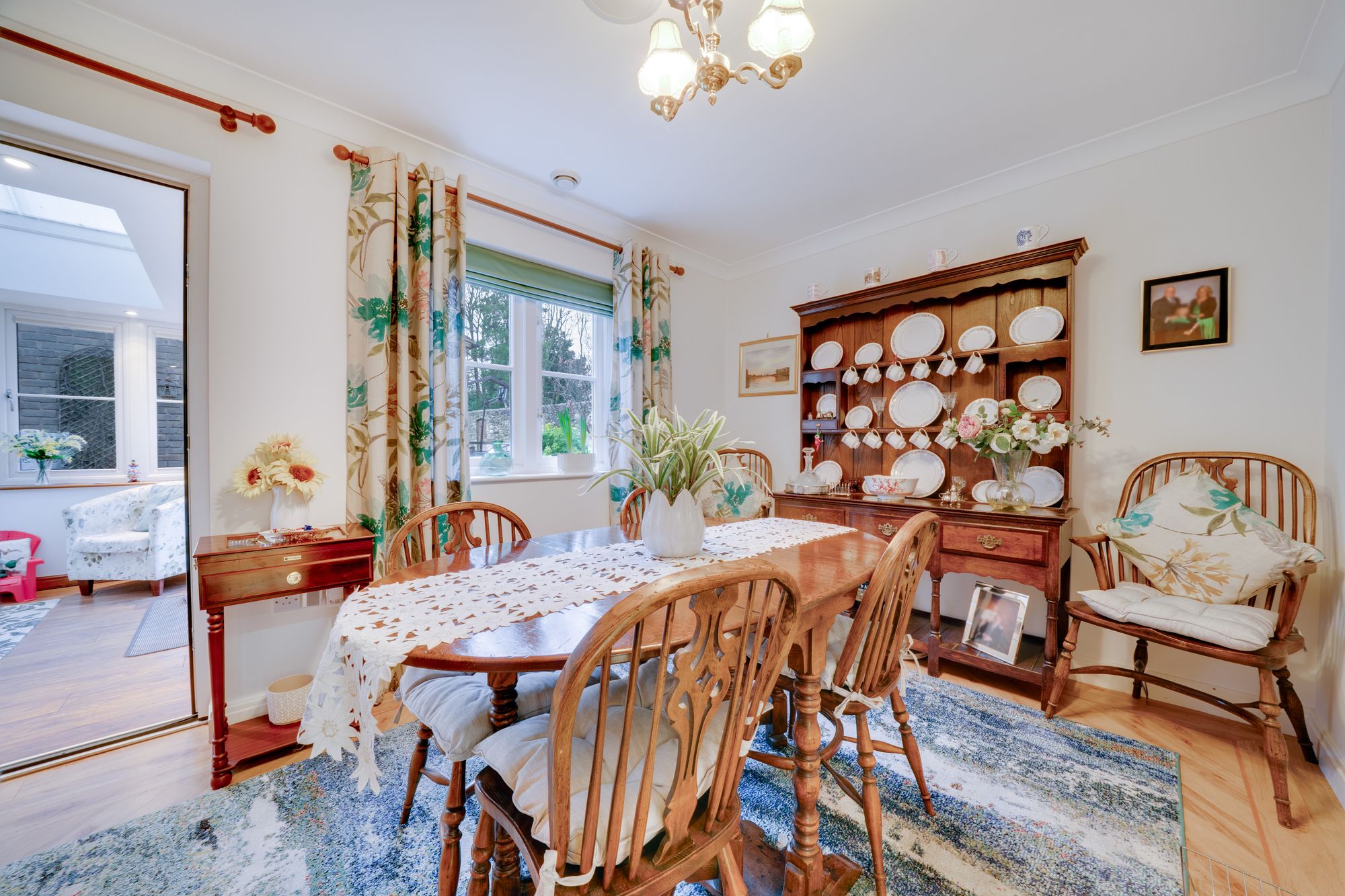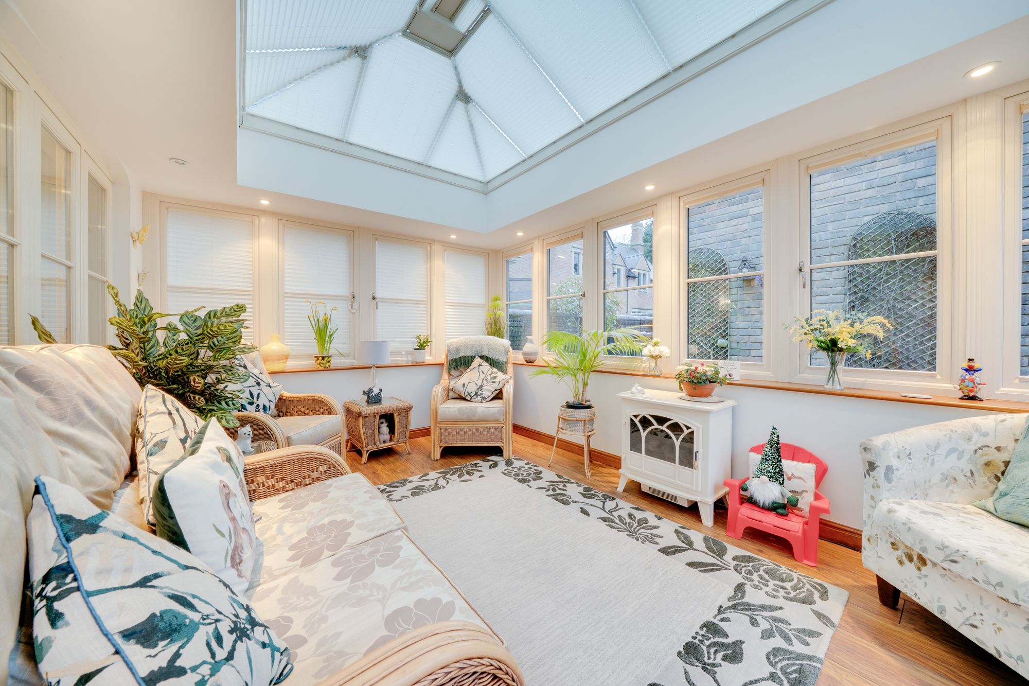 The ground floor opens into a welcoming entrance hall with a convenient cloakroom, leading through to a spacious reception room that provides a warm and inviting setting for everyday relaxation. A separate dining room creates an ideal space for entertaining and flows naturally into the stylish, modern kitchen, which is fitted with contemporary units and quality finishes, offering excellent storage and workspace for today’s lifestyle. To the rear, the impressive orangery is flooded with natural light and provides a wonderful additional living area, enjoying views over the garden and creating a seamless connection between inside and out.