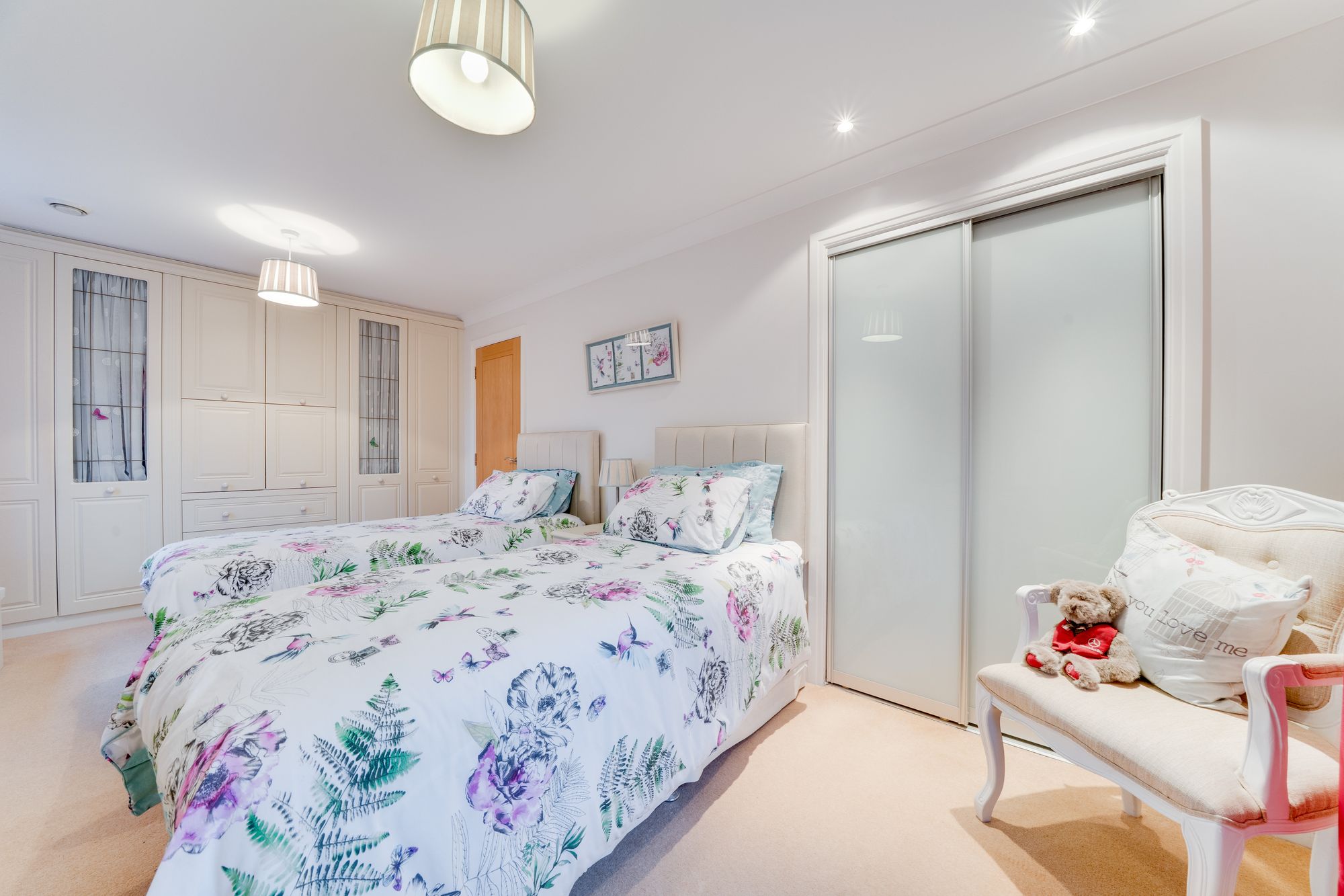 Upstairs, the property continues to impress with three well-proportioned bedrooms, all benefitting from fitted wardrobes that maximise storage while maintaining a clean and uncluttered feel. A modern shower room serves the first floor, complemented by useful storage from the landing.