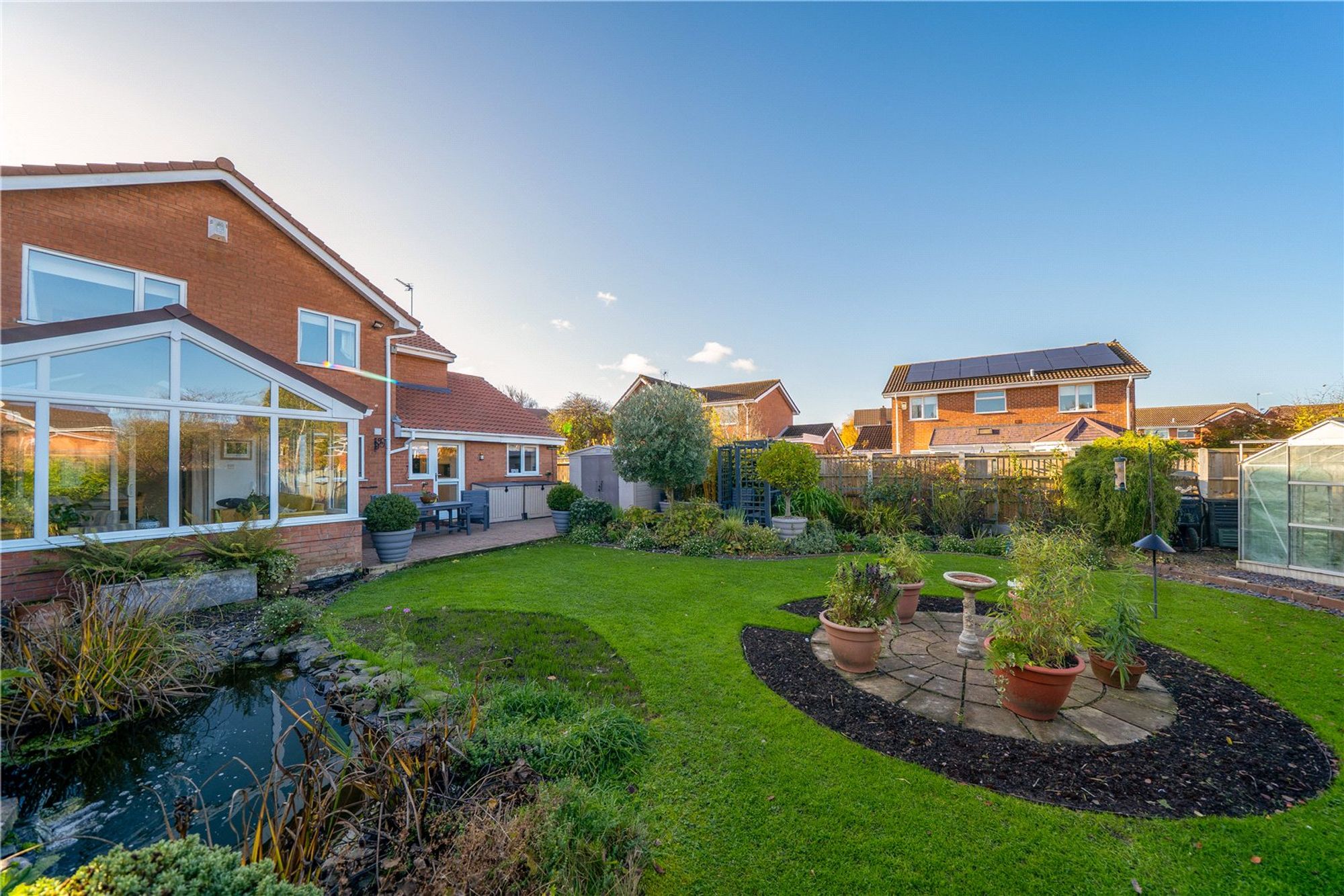 Set on a generous plot, the property enjoys a beautifully landscaped rear garden. A mix of patio, lawn, and mature borders create a private and peaceful retreat.